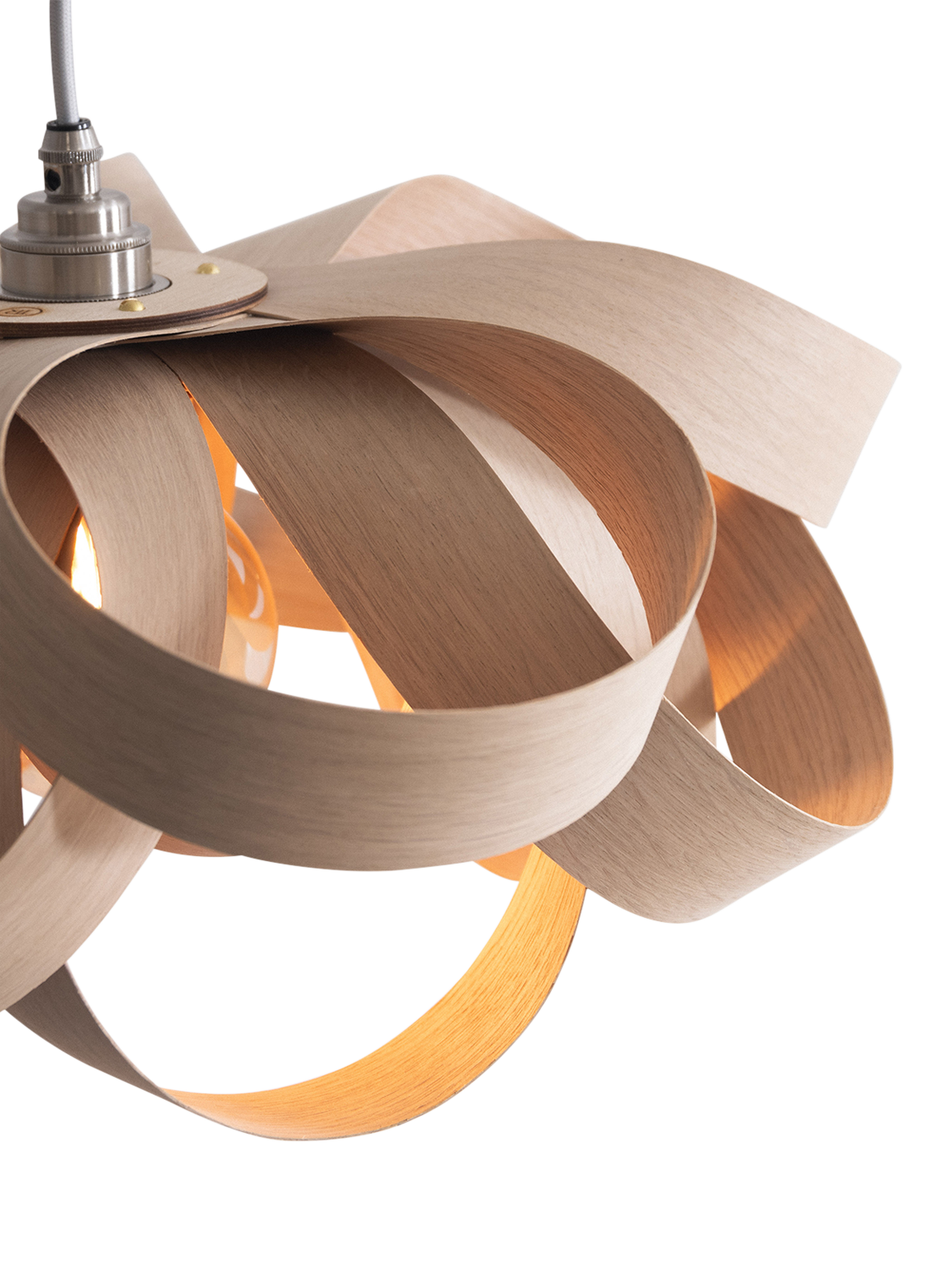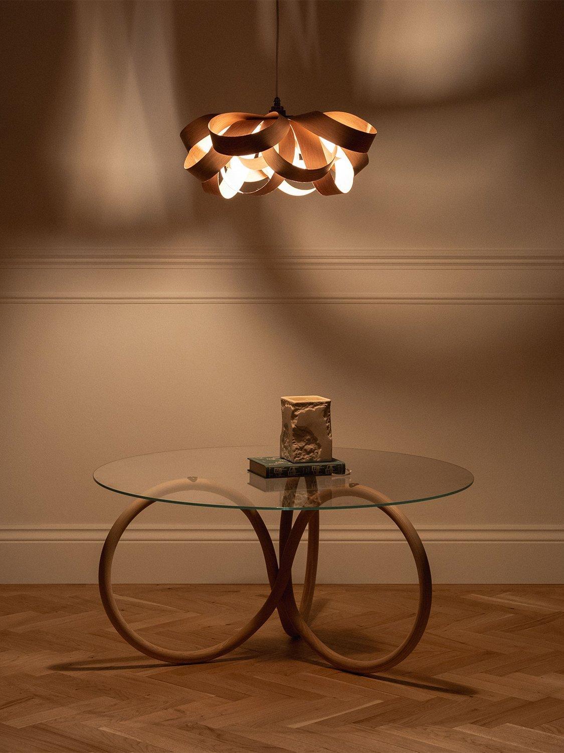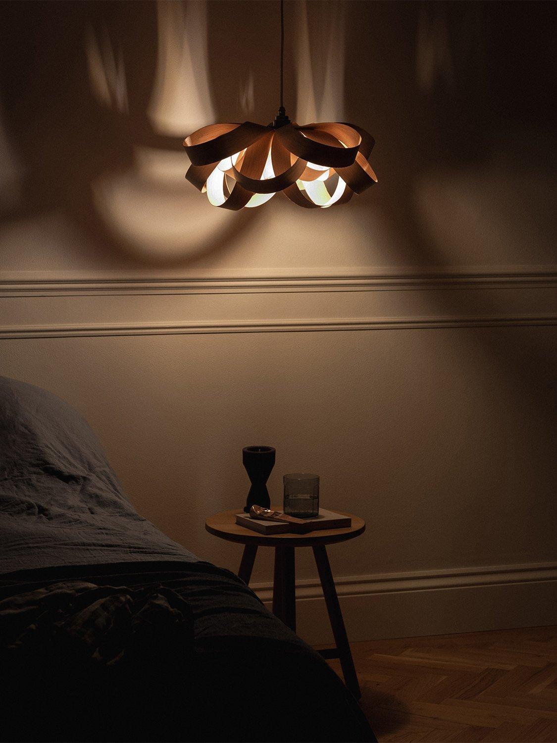 A joyful interpretation of nature's beauty, Tom Raffield's Small Bloom pendant light is made of hand-curved oak wood. The organic shape emits a wonderful array of light and shadow.