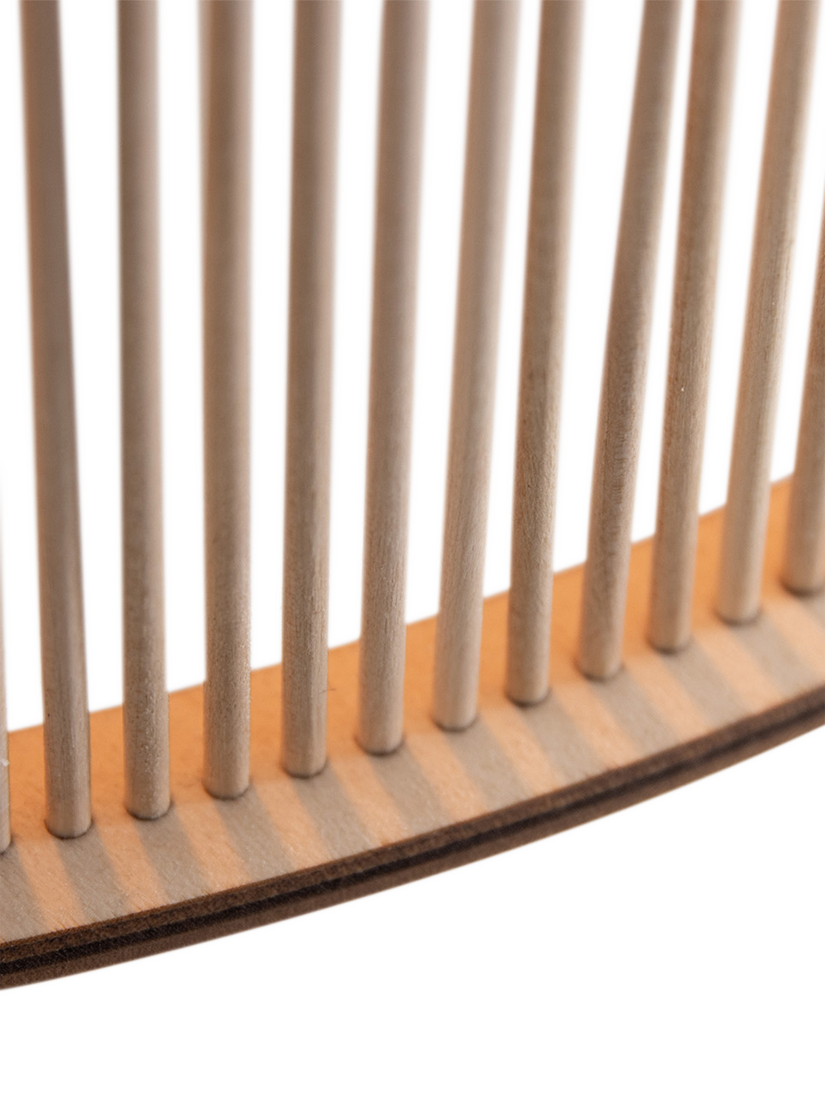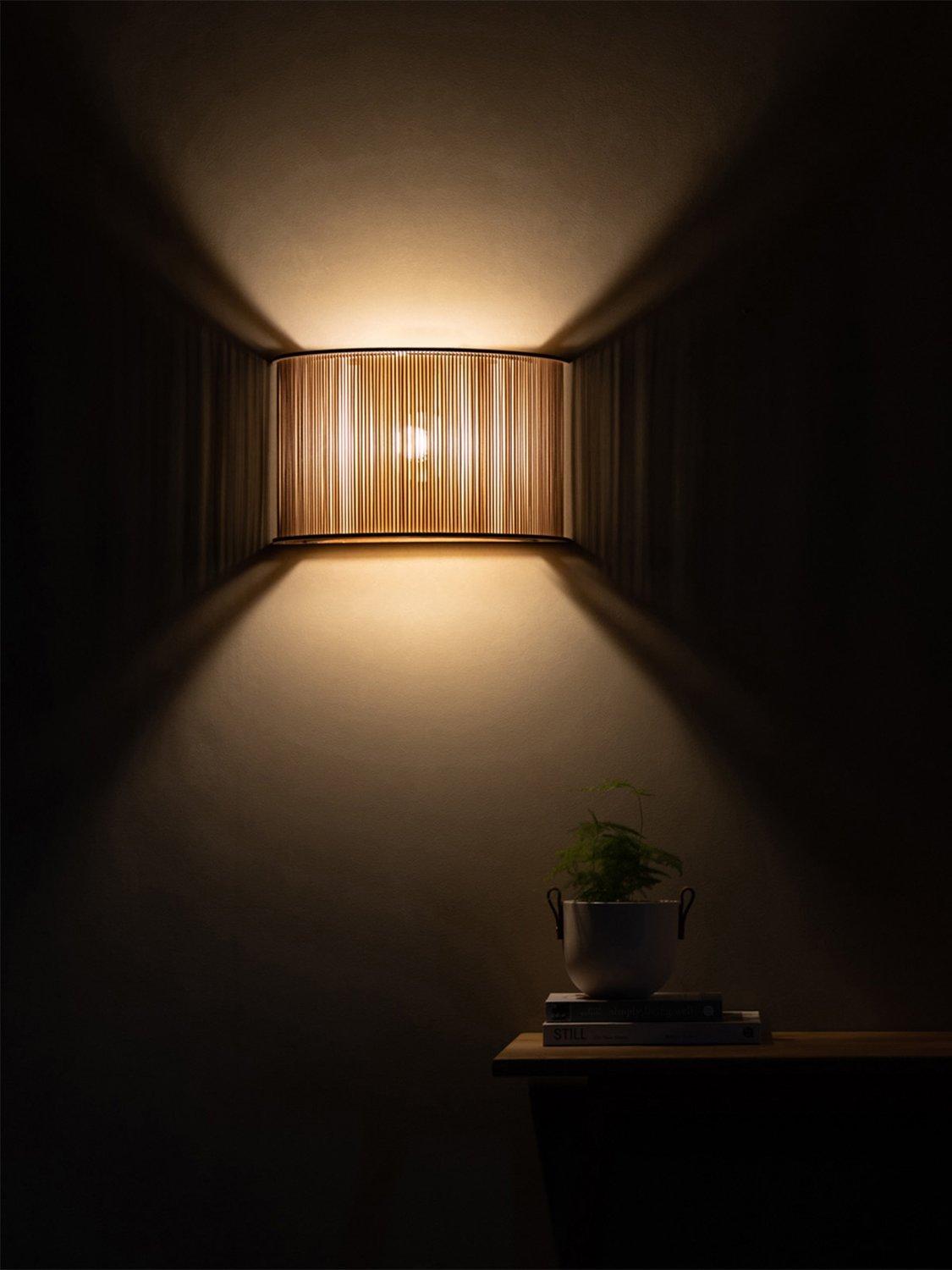 A cage of fine dowels diffracts soft, focal light to spaces high and low. Tom Raffield's Eddy Wall Light invites ambience and serenity with subtle elegance.
