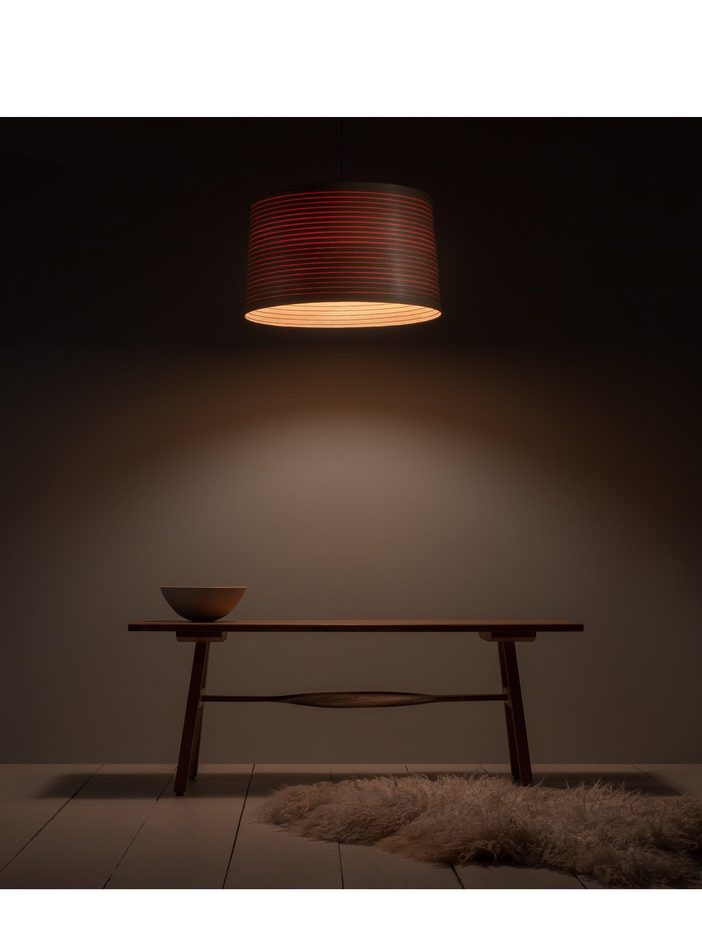 The Helix ceiling light is made from sustainably sourced bent walnut wood or oak and formed into a large, drum-shaped pendant. A home lighting solution with minimalist appeal, its Scandinavian-inspired design showcases Tom Raffield's signature curved wood design motif. Providing a focused wash of warm light, the pendant highlights the natural wood grain and is suspended from an adjustable flex so that you can install it perfectly within your space.