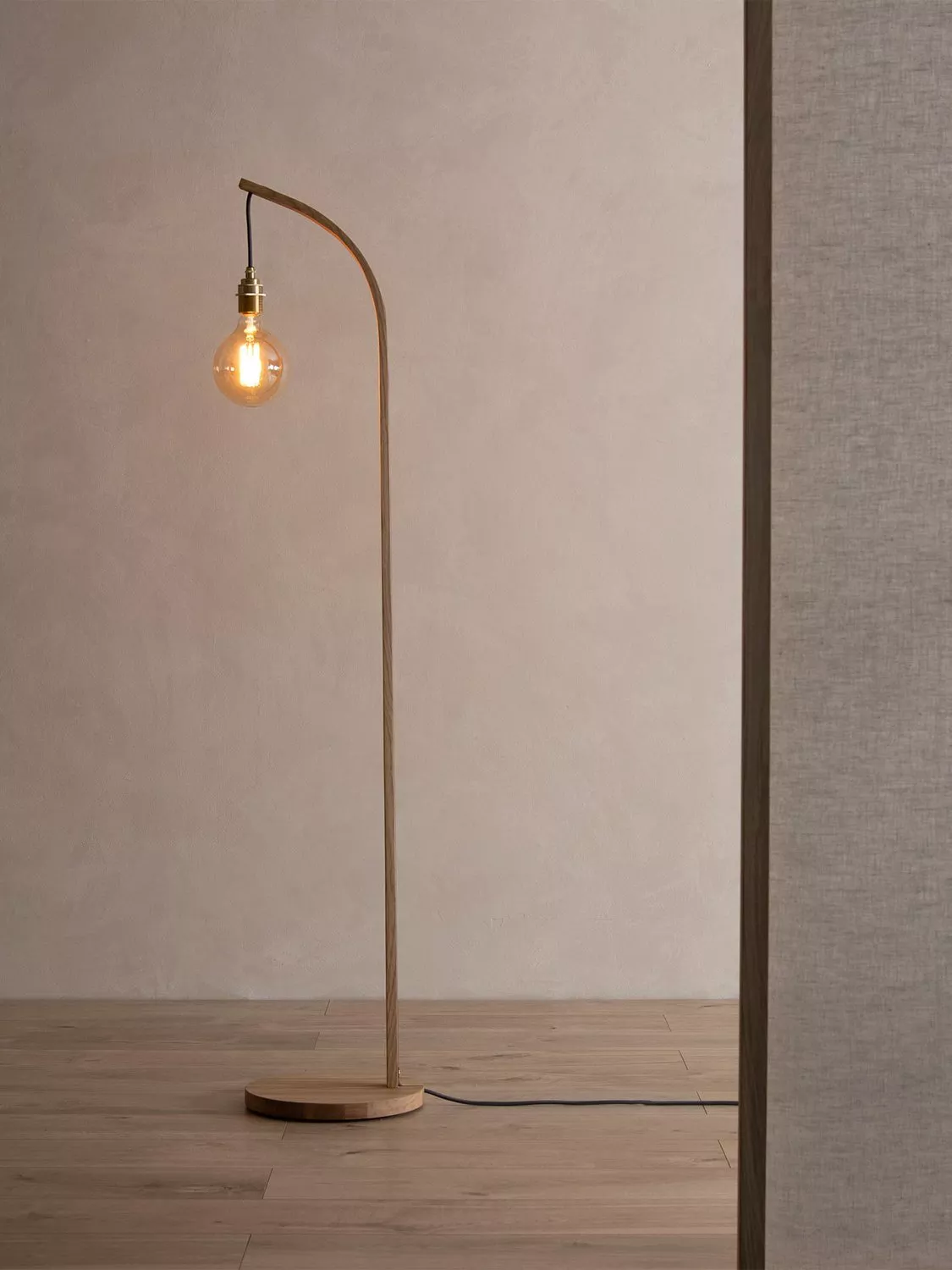 From its signature curve to its filament bulb, the Mooring lighting range is refreshing in its simplicity, and surprising in its design. Handcrafted in solid oak, the Mooring Floor Light is perfectly positioned for illuminating a side table or desk.
