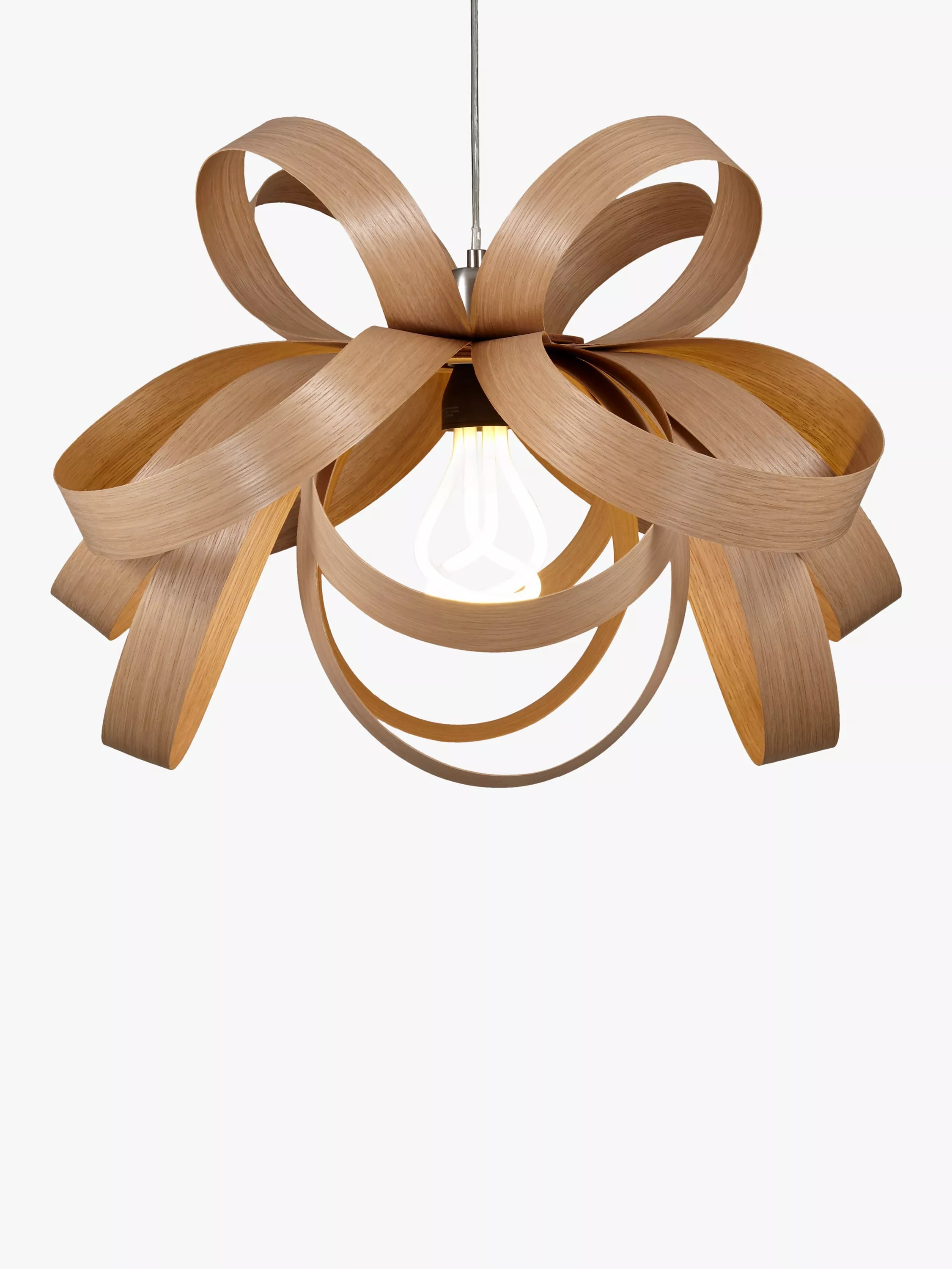 A smaller version of Tom Raffield's striking Butterfly pendant, The Skipper features a minimalist design, appealing to those who are looking for an understated look. The shade incorporates the brand's signature steam bent design in stunning oak; ash; or walnut and is finished with a non-toxic varnish. Its petal-like shapes take form to allow light to intercept and cast shadows across your room. The quality and aesthetic of the wood remains at the helm in accordance with Scandinvian design principles. Fittings are included and feature an adjustable pendant cord.