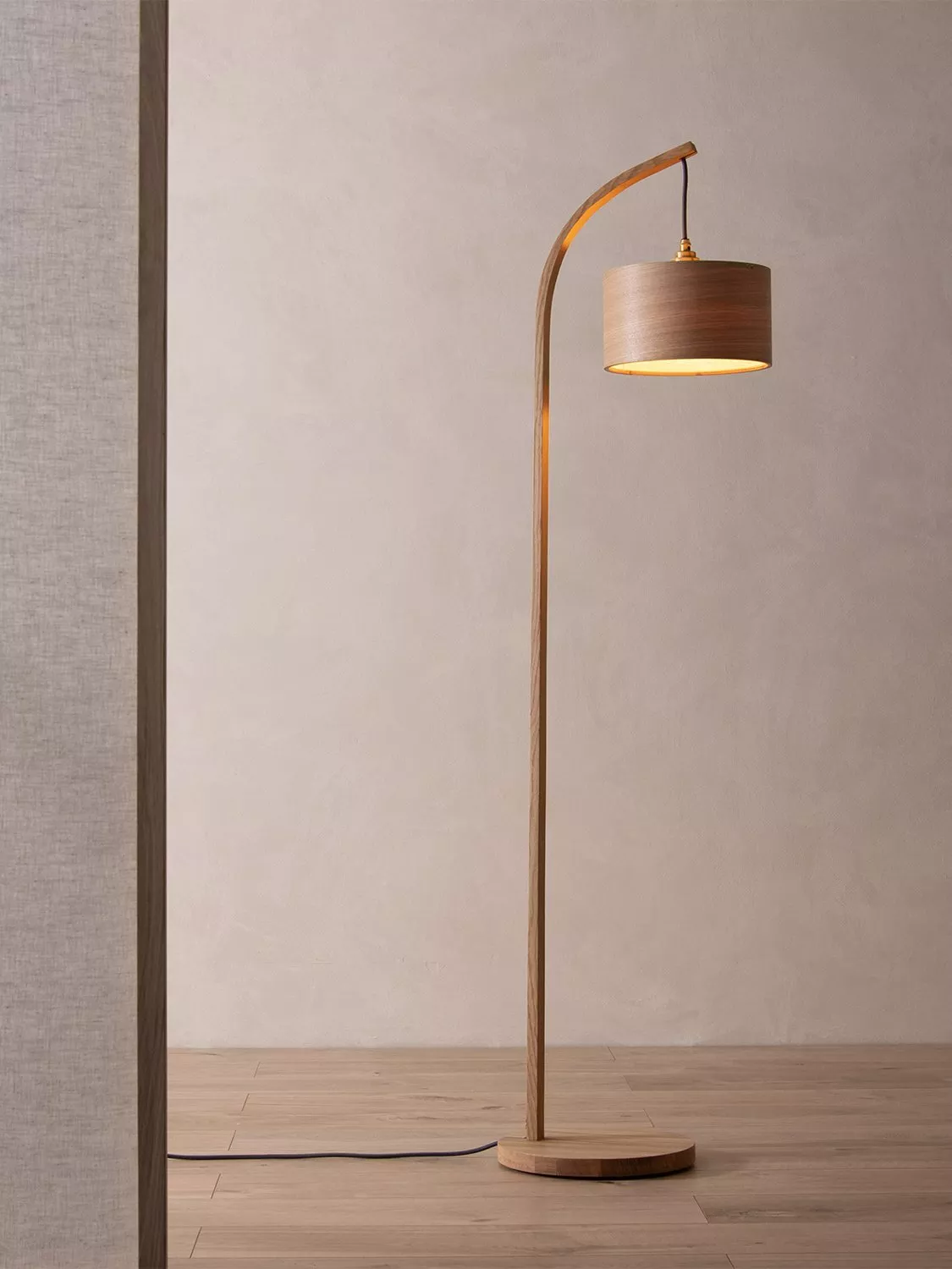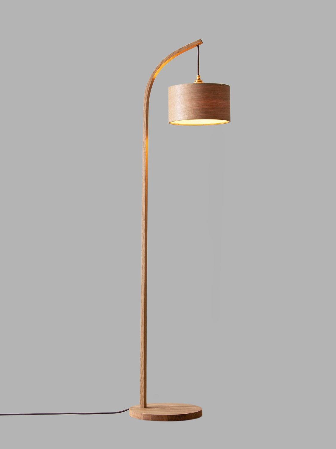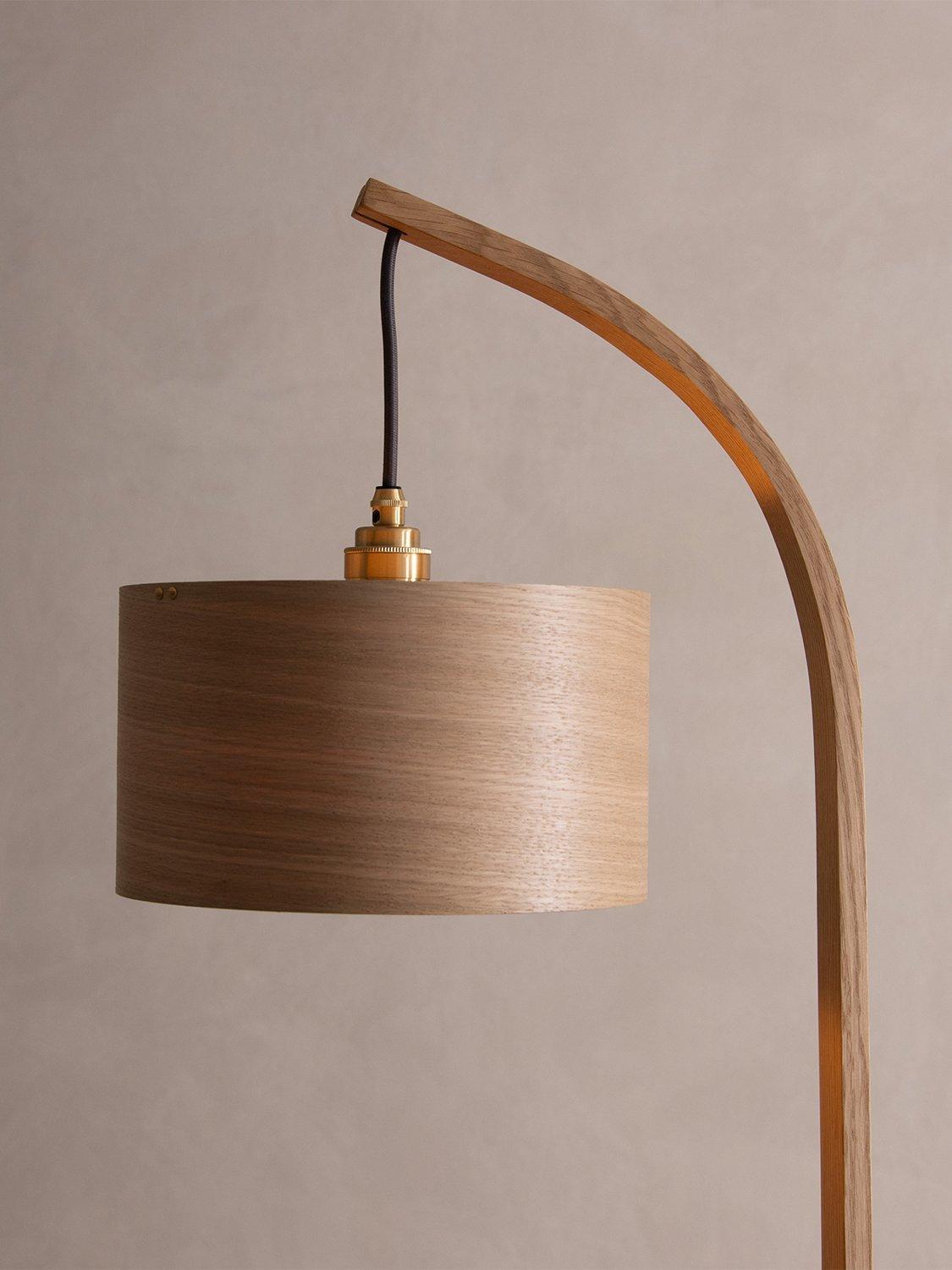 From base to tip, Tom Raffield's Stem Floor Lamp blends nature with elegance. Handcrafted from oak wood and finished with a drum shade, this lamp's sophisticated design creates a soft downlight in a living space or reading nook.