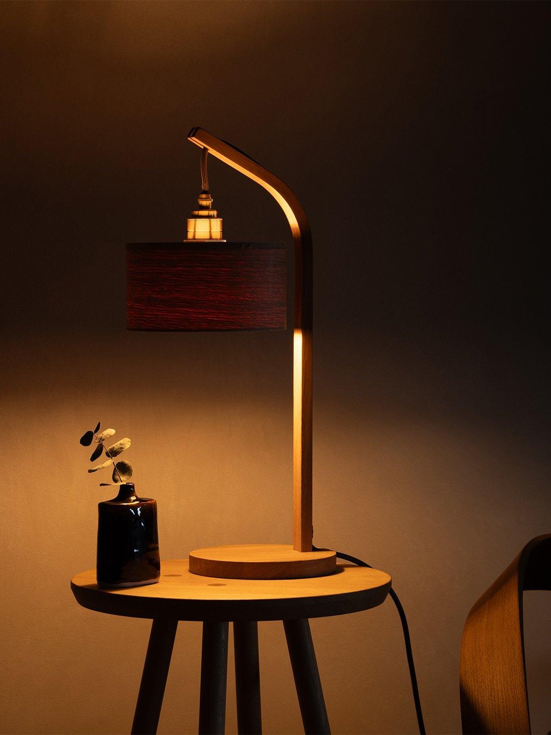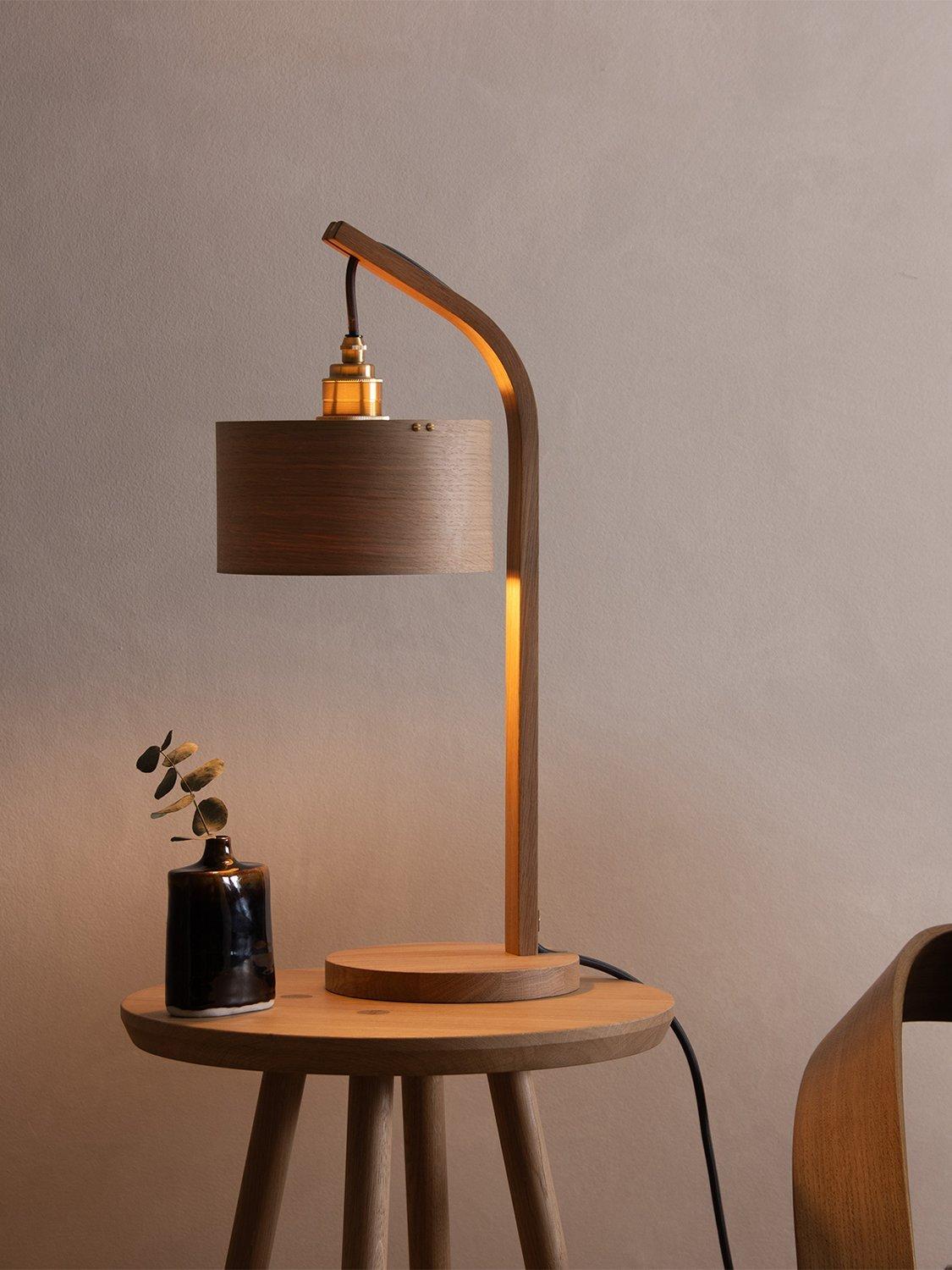 From base to tip, Tom Raffield's Stem Table Light blends nature with elegance. Handcrafted in solid oak, the Stem's steam bent curve arches from its roots to showcase the sleek lampshade which casts a glowing downlight.