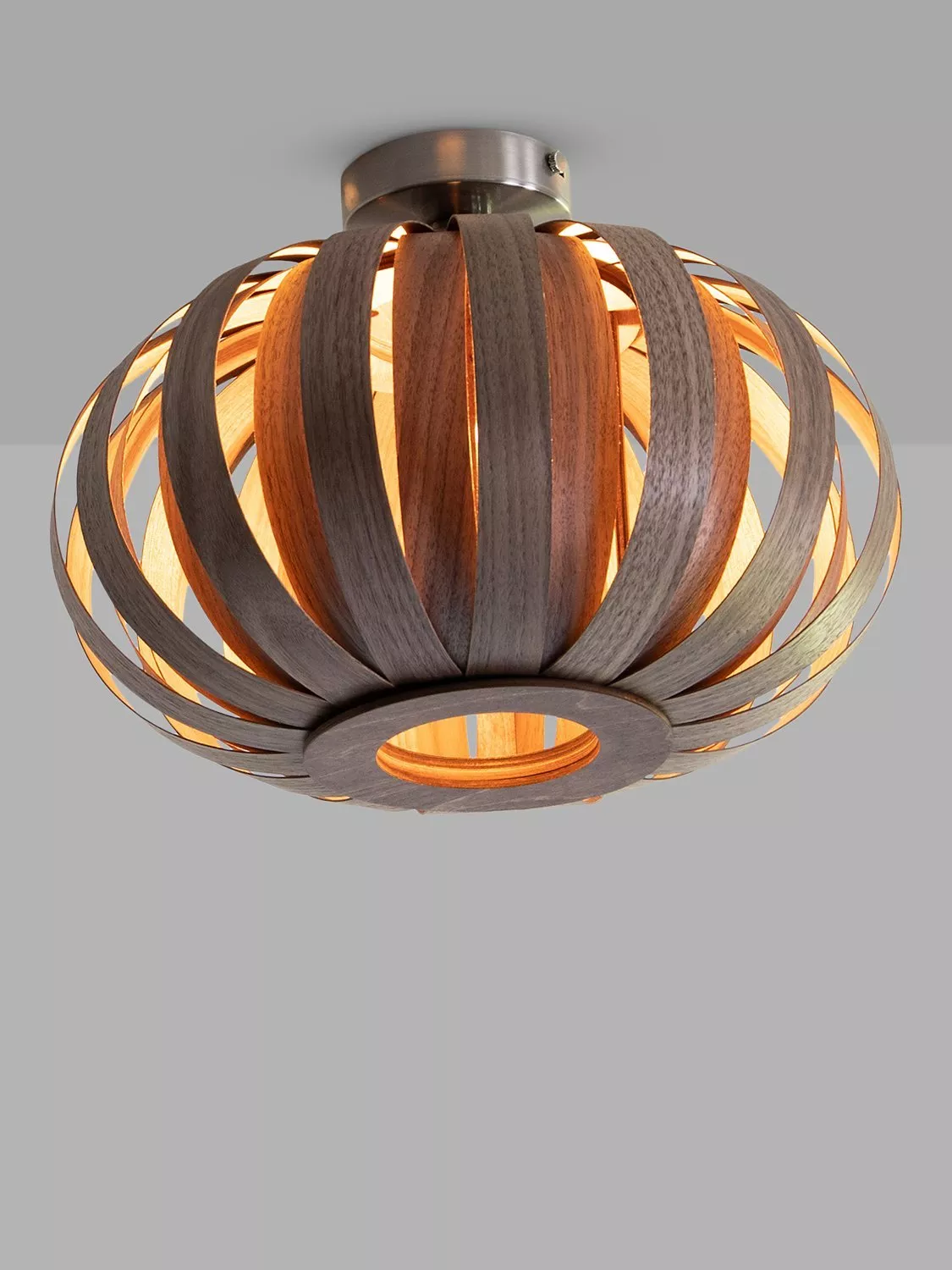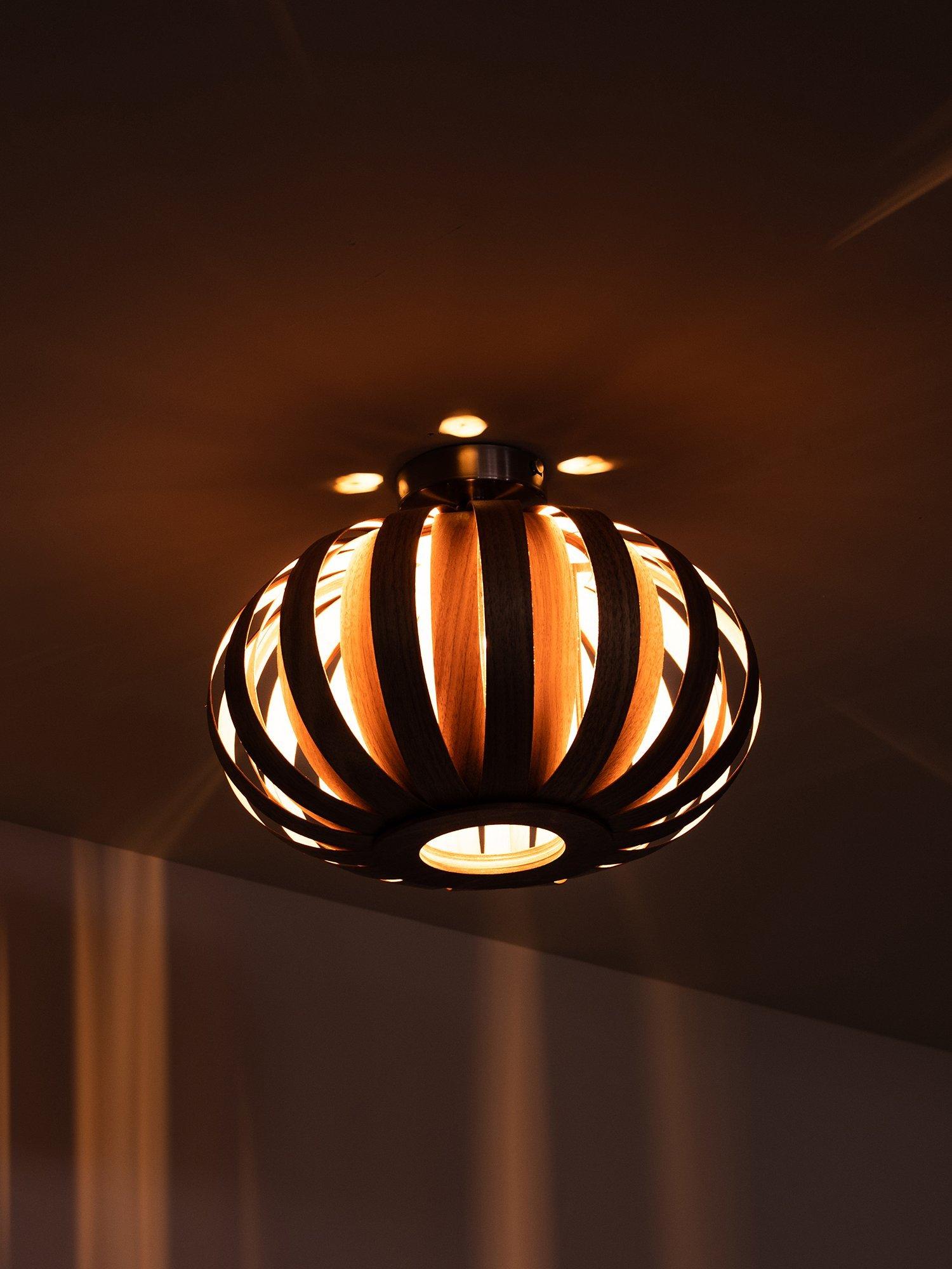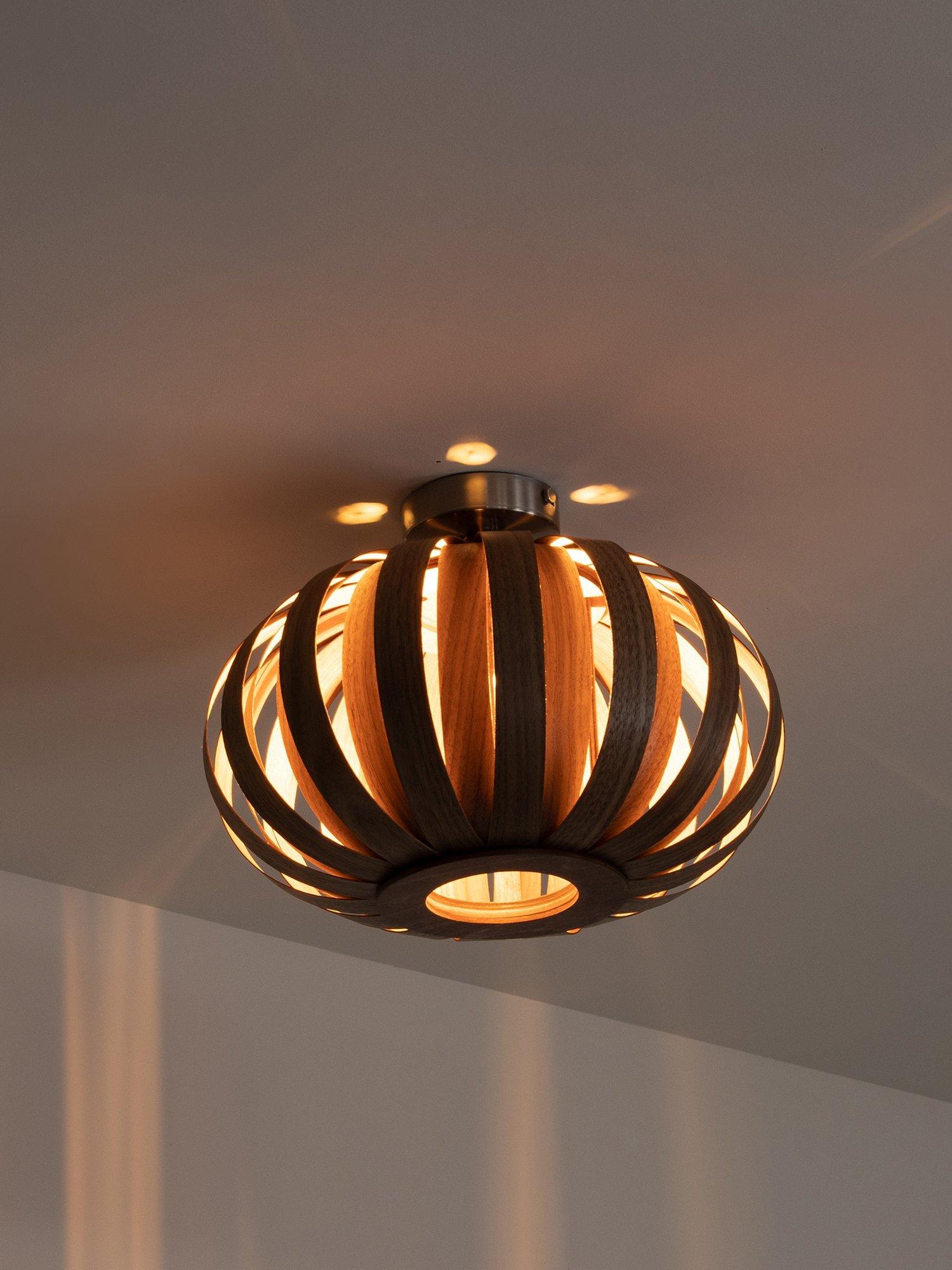 Taking inspiration from the shells found scattering the shorelines of the Cornish beaches that surround Tom Raffield's studio, this ceiling light will softly illuminate your space with pools of brightness. It's made from responsibly sourced oak or walnut and formed from 32 curved plates to create its distinctive arched shade. Each plate of timber is laser-cut and conceals the bulb that's set within, allowing light to spill through. As a small flush fitting, it's well-suited in rooms which have a low ceiling. It's also perfect for giving your space a warm and natural feel.