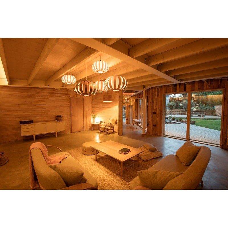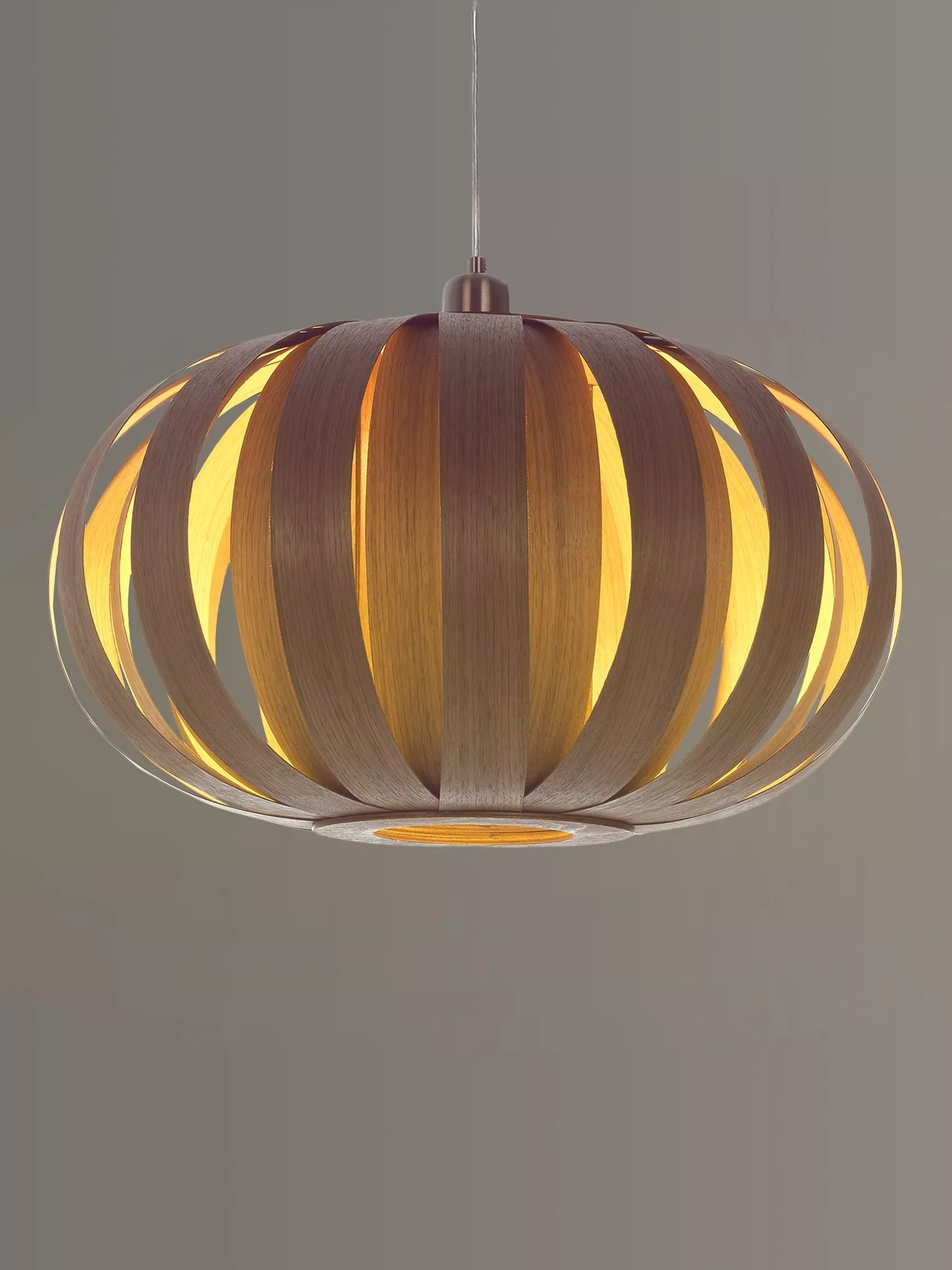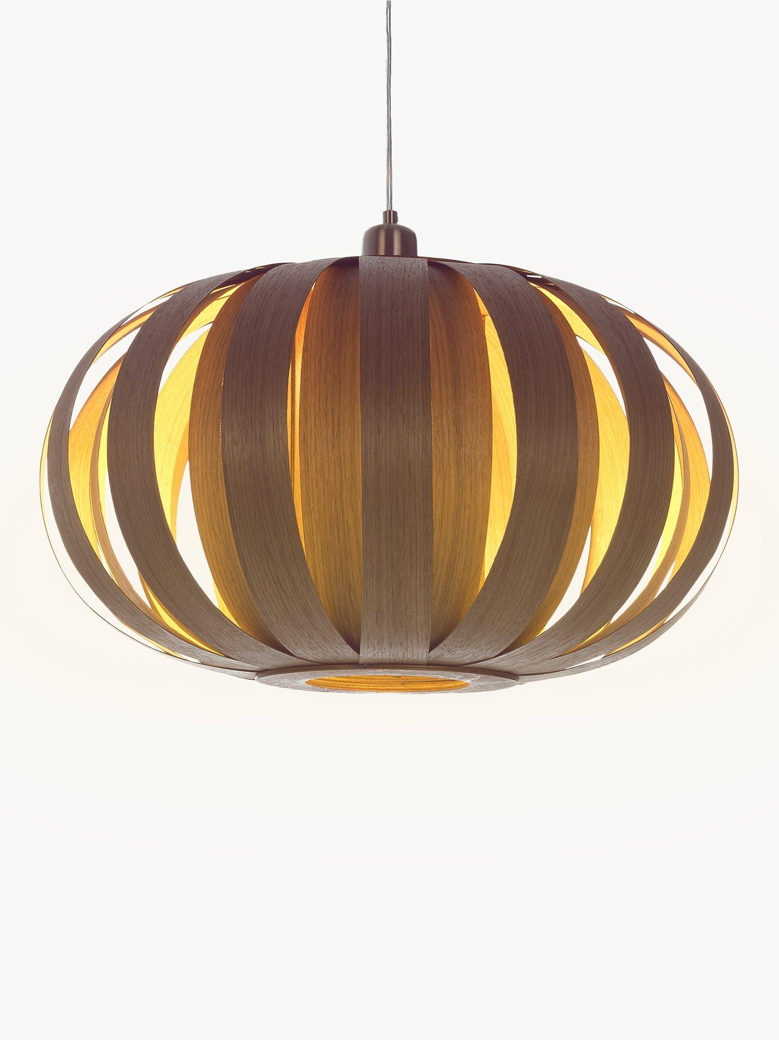 The Urchin Pendant Light is inspired by the empty shells of the Sea Urchin 'Echinus esculentus', a creature who inhabits the Cornish coast line. Designed to completely conceal the bulb, the spherical form of this wooden pendant light is made up from steam-bent strips of wood and held by laser cut birch plates. The formation of the strips carefully conceals the light bulb whilst creating a beautiful lighting effect.