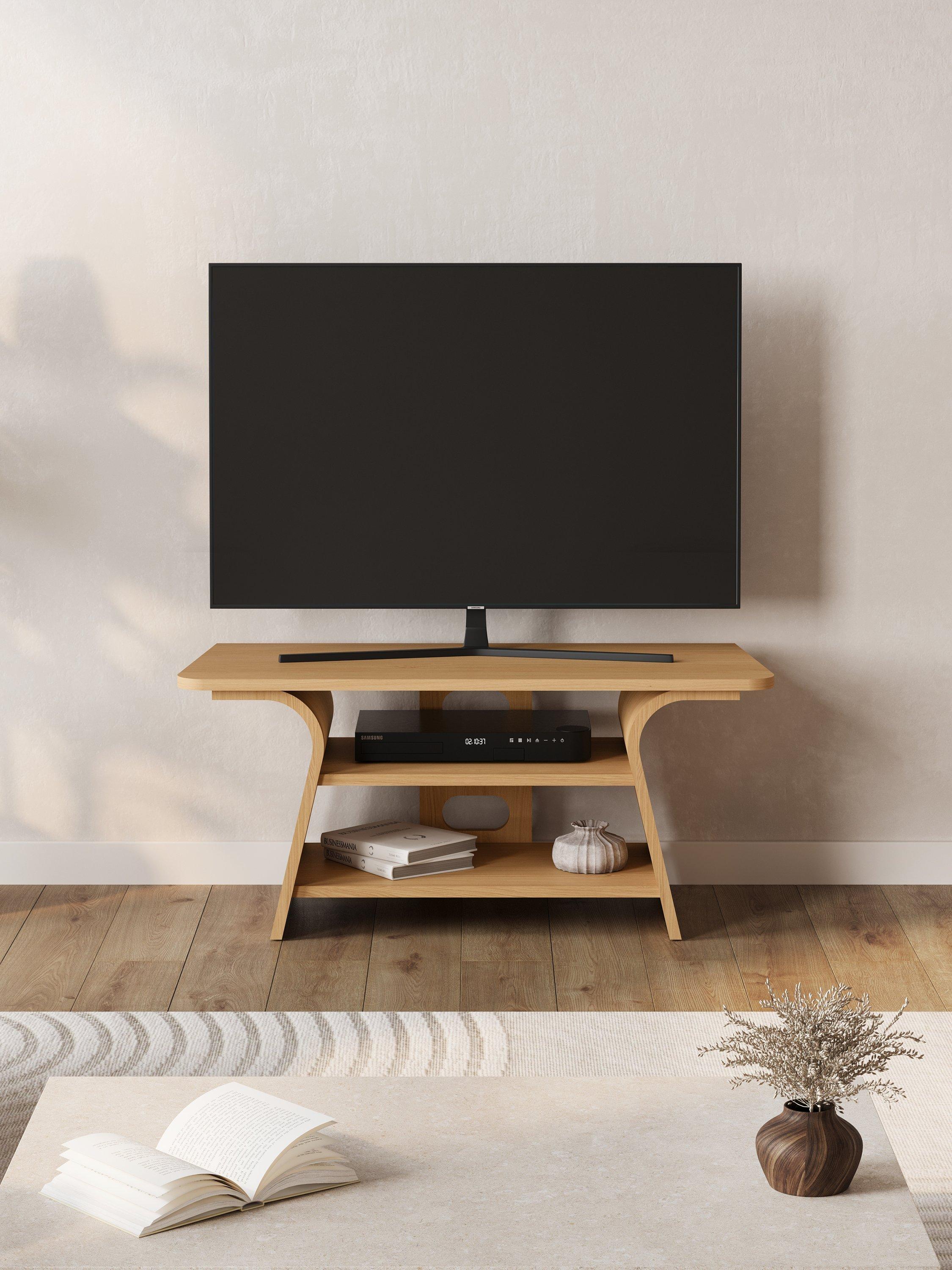 The Chloe media unit presents a curvaceous reinterpretation of traditional TV units. Its softly curving legs provide a striking contrast to the clean, linear lines, creating a design rich in personality. This media unit has integrated cable management to maintain a minimalist, clutter-free look.