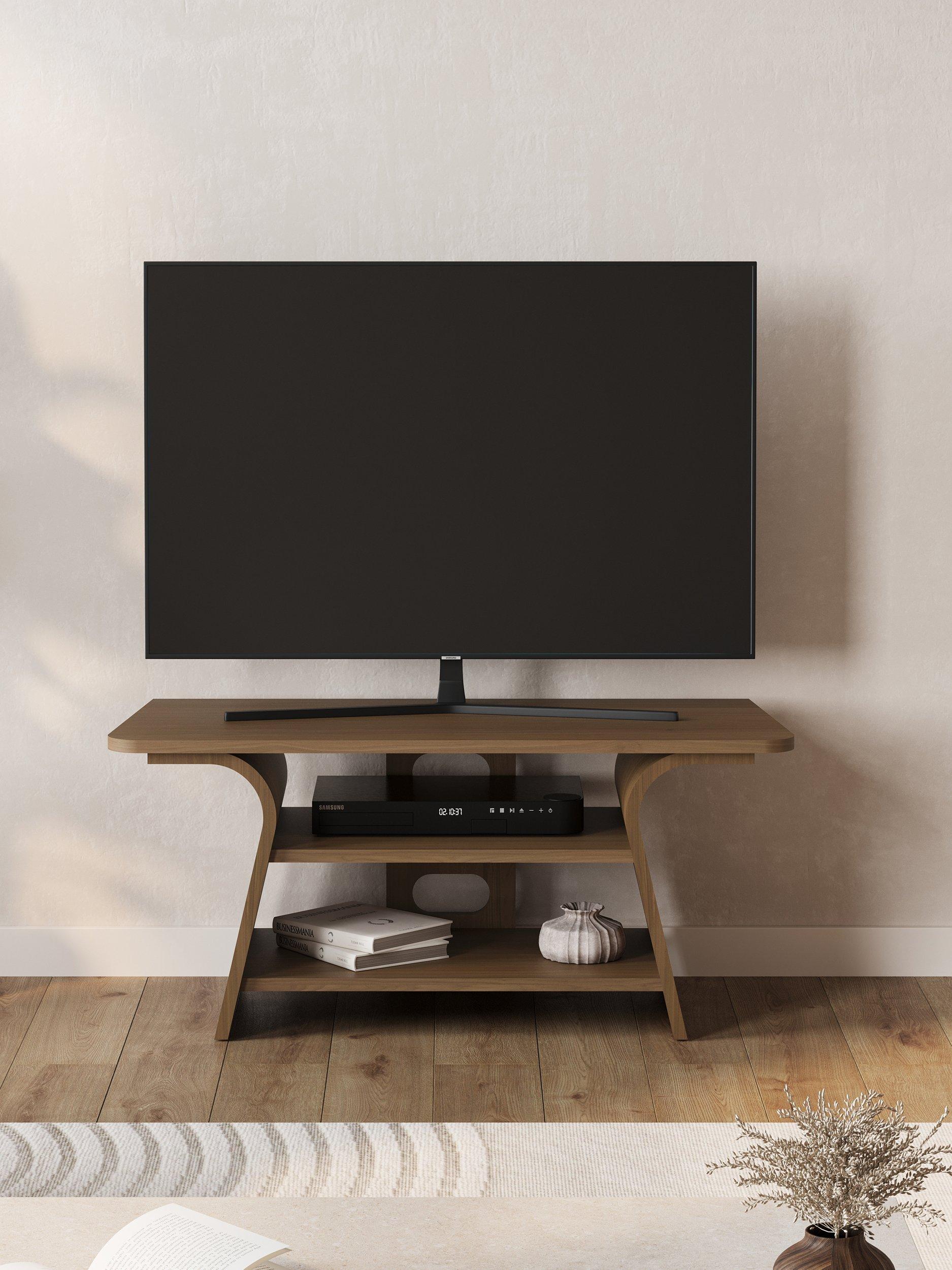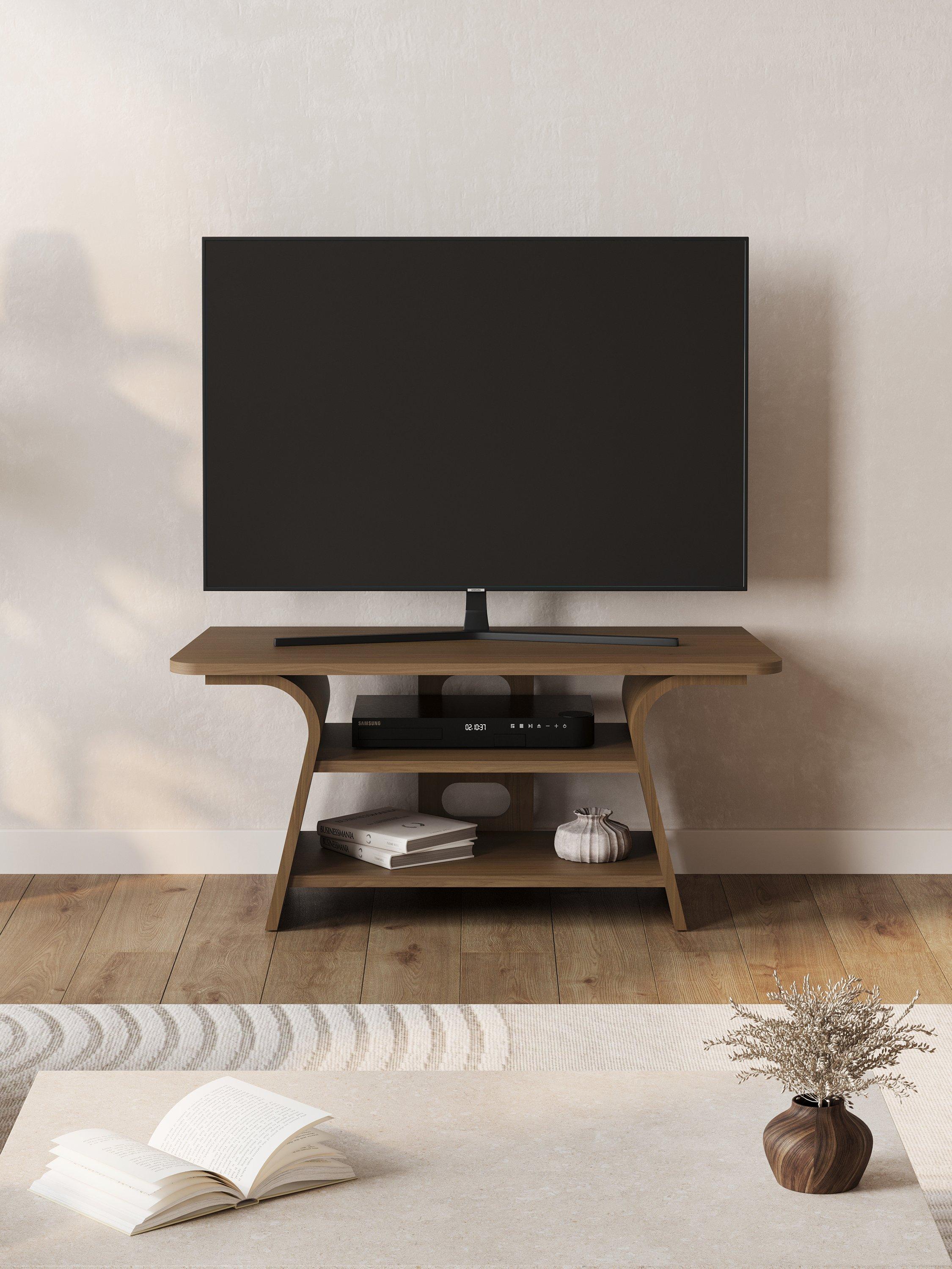 The Chloe media unit presents a curvaceous reinterpretation of traditional TV units. Its softly curving legs provide a striking contrast to the clean, linear lines, creating a design rich in personality. This media unit has integrated cable management to maintain a minimalist, clutter-free look.