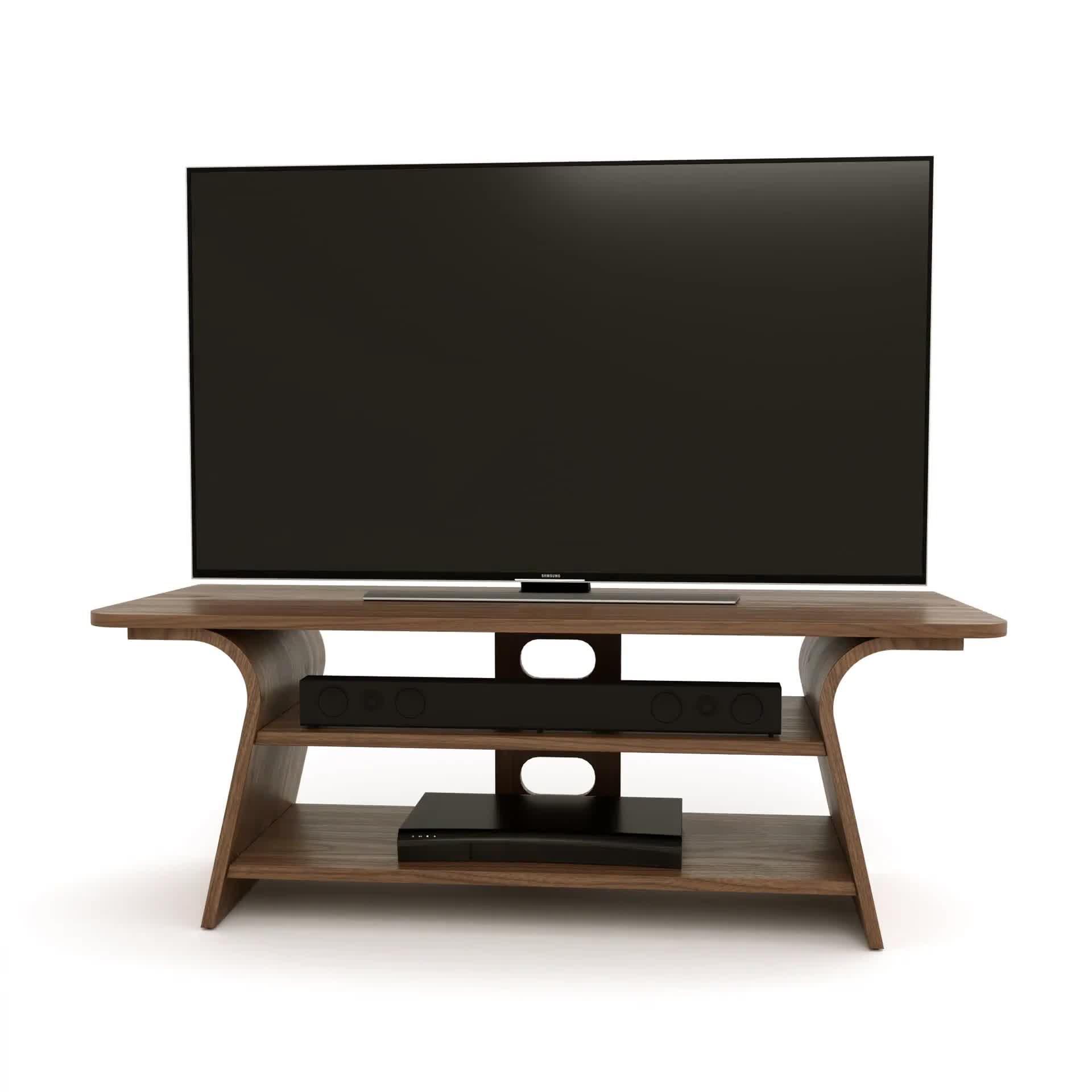 The Chloe media unit presents a curvaceous reinterpretation of traditional TV units. Its softly curving legs provide a striking contrast to the clean, linear lines, creating a design rich in personality. This media unit has integrated cable management to maintain a minimalist, clutter-free look.