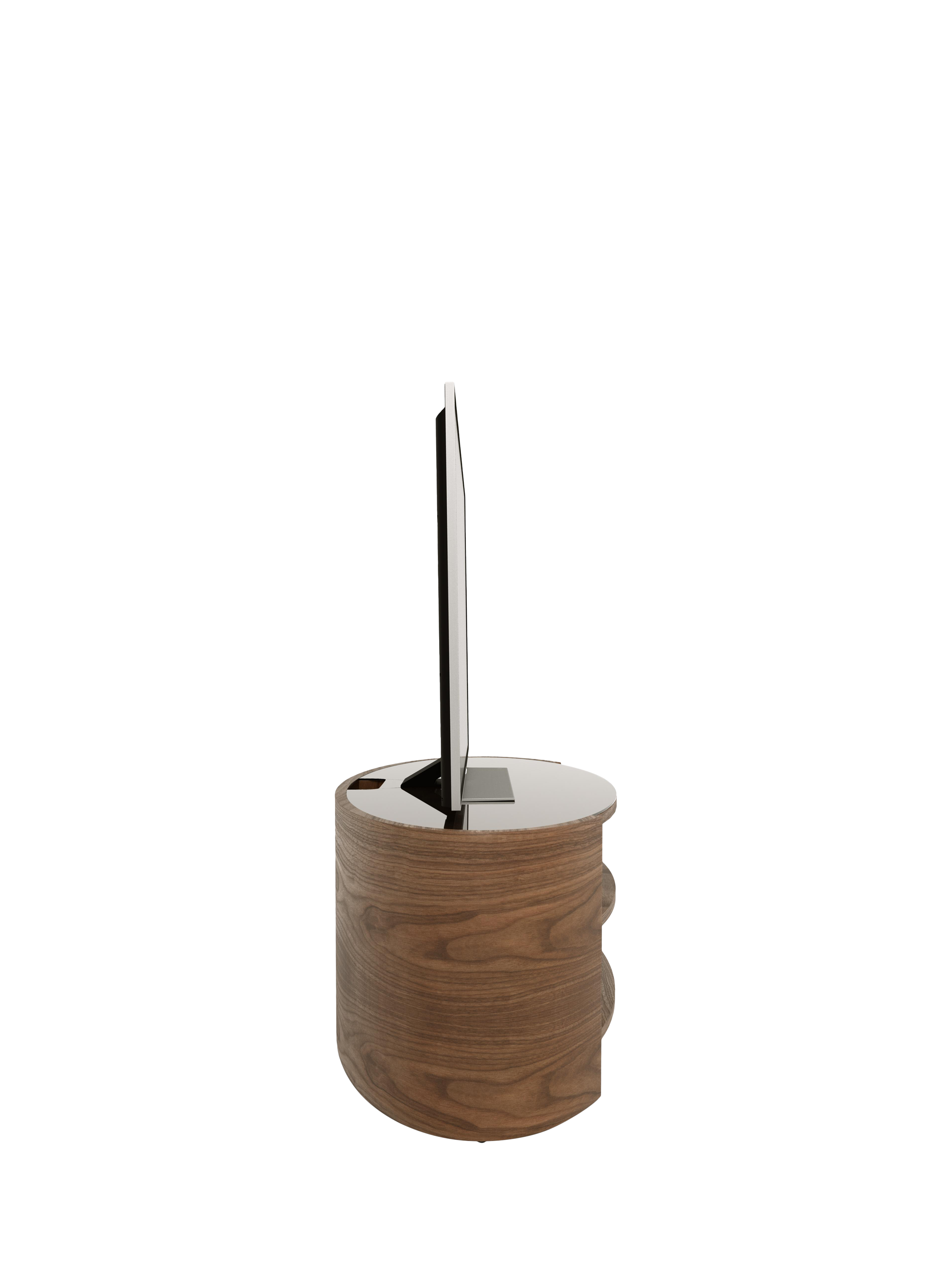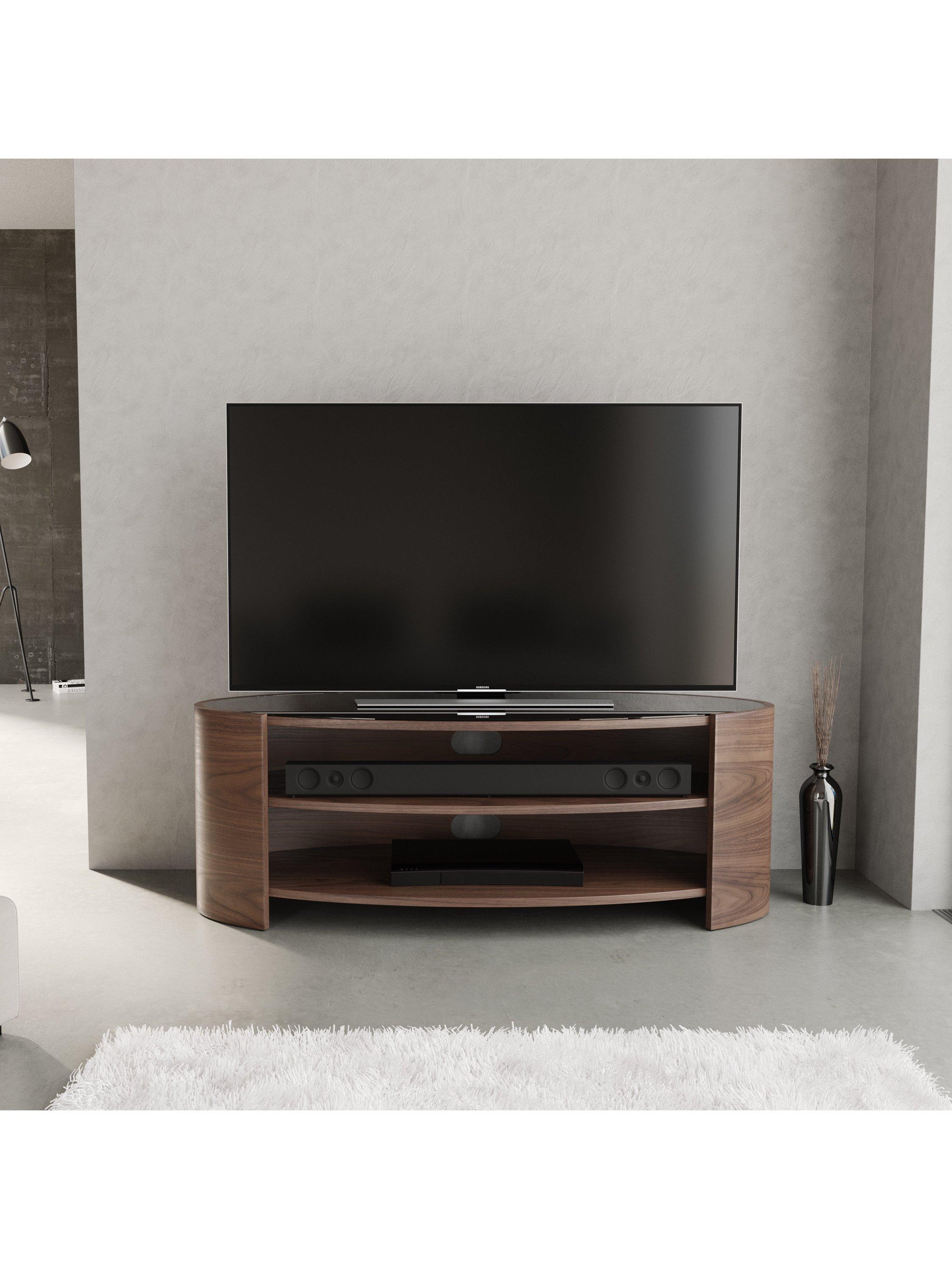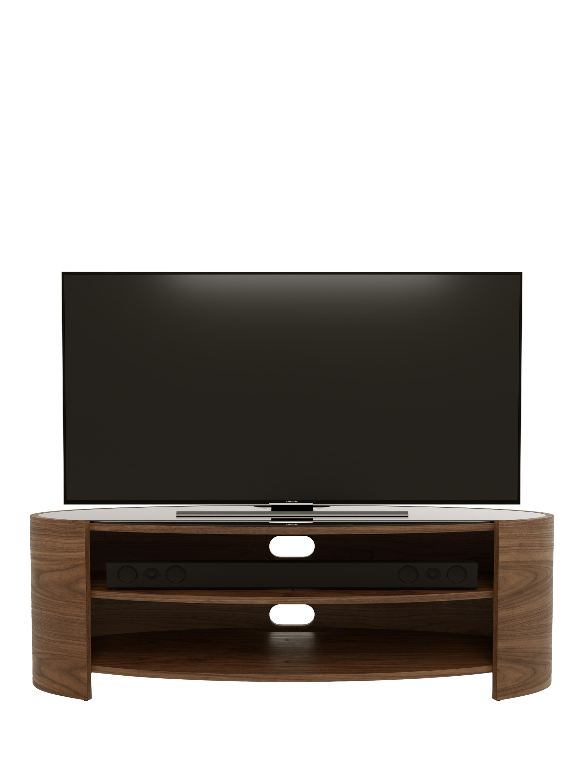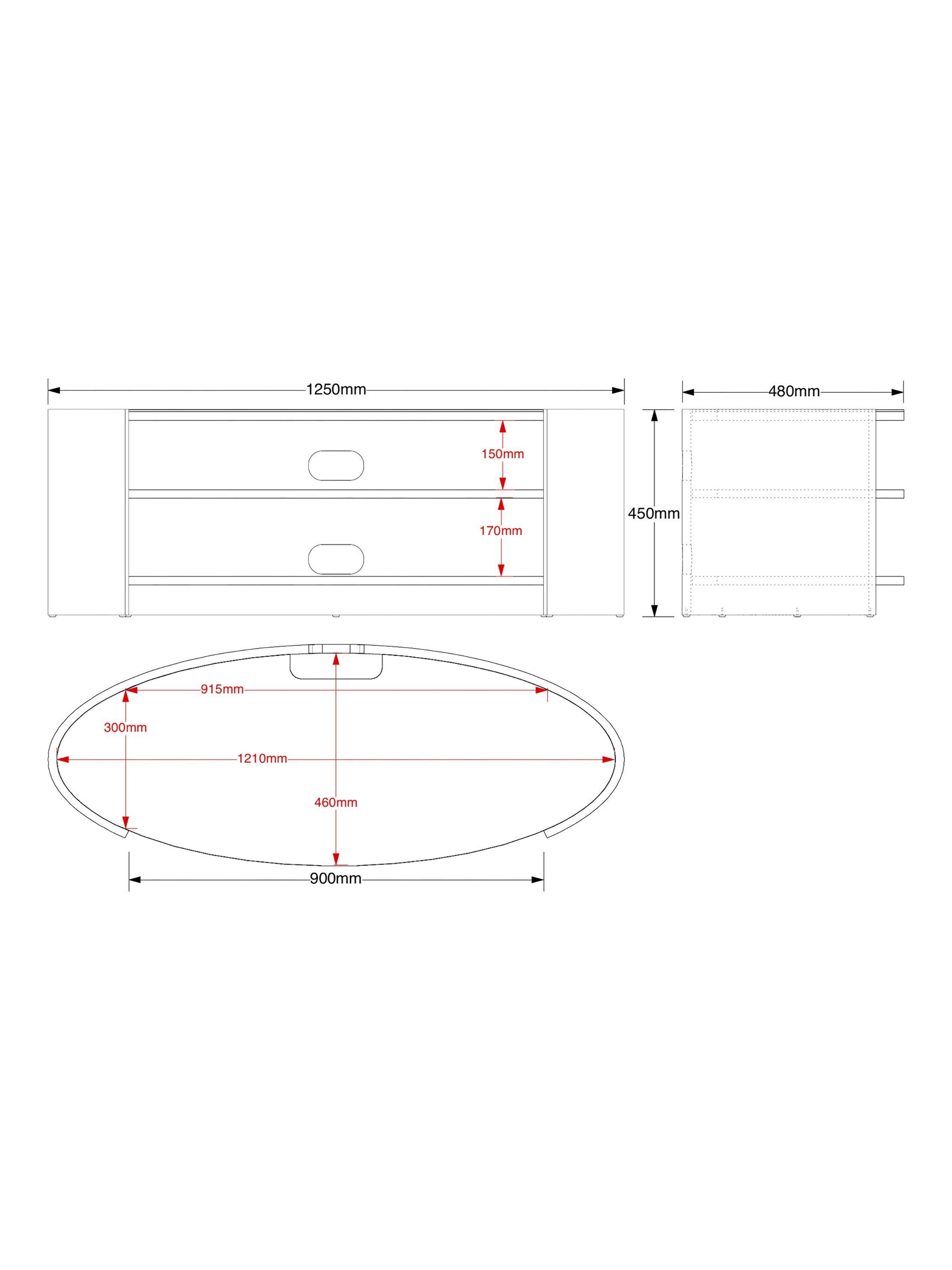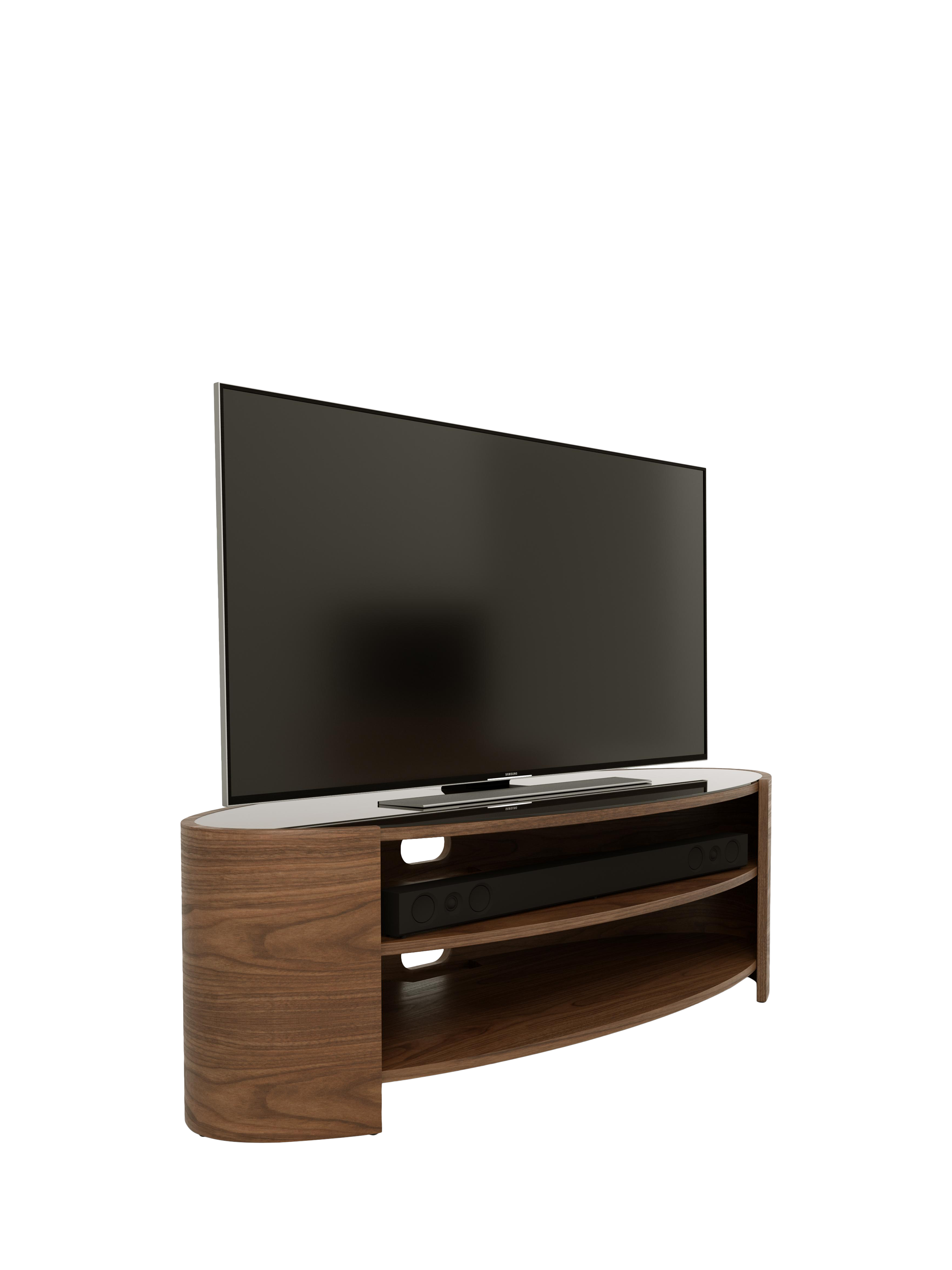 The Elliptic Deluxe media unit, with its elegantly curvaceous, open elliptical form, offers a striking organic contrast to the linear design of modern televisions. This media unit's toughened glass top complements the sophisticated silhouette, while integrated cable management, built-in ventilation, and sound bar space ensure seamless functionality.