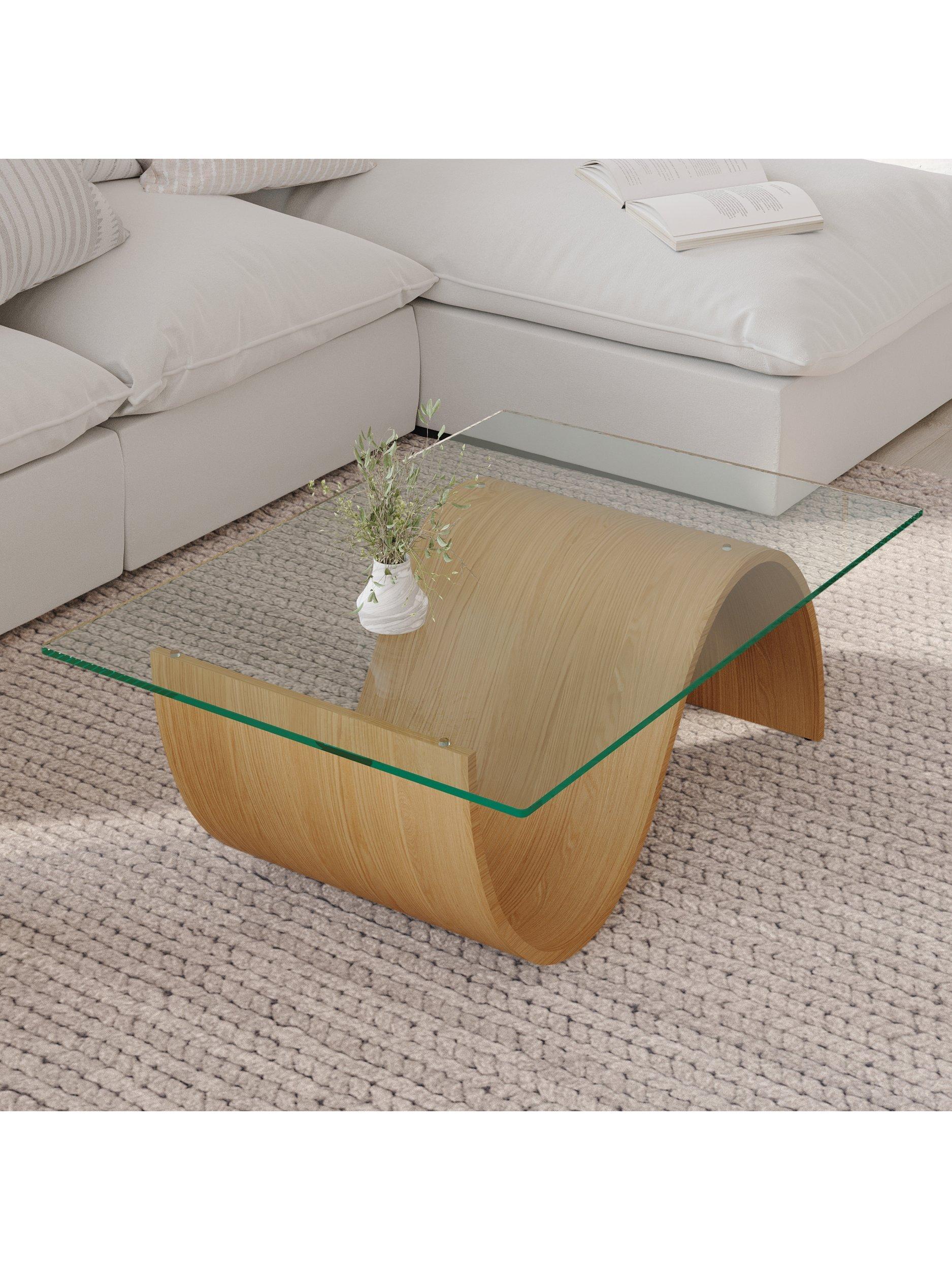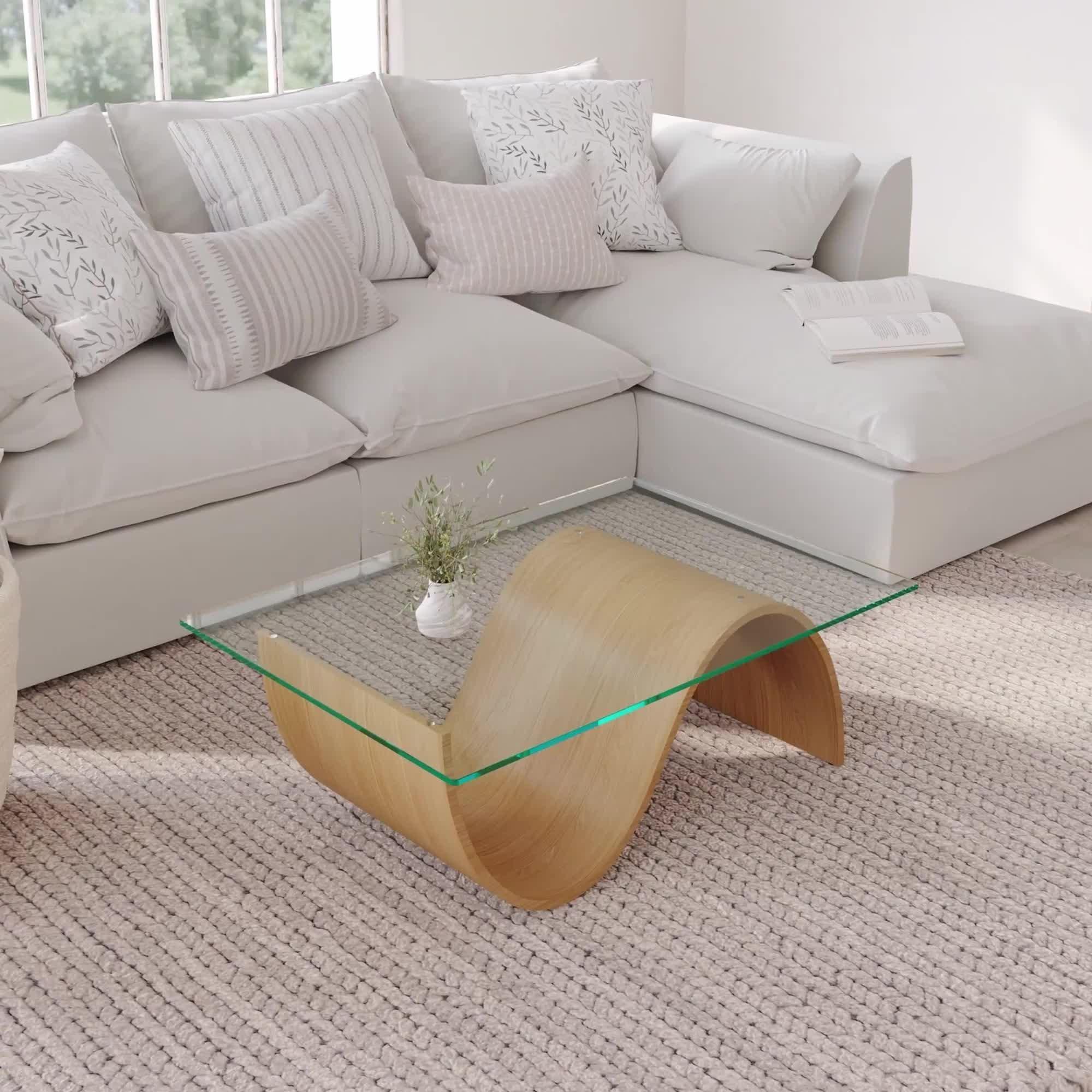 This curvaceous glass top coffee table design will make a lively addition to your living space.