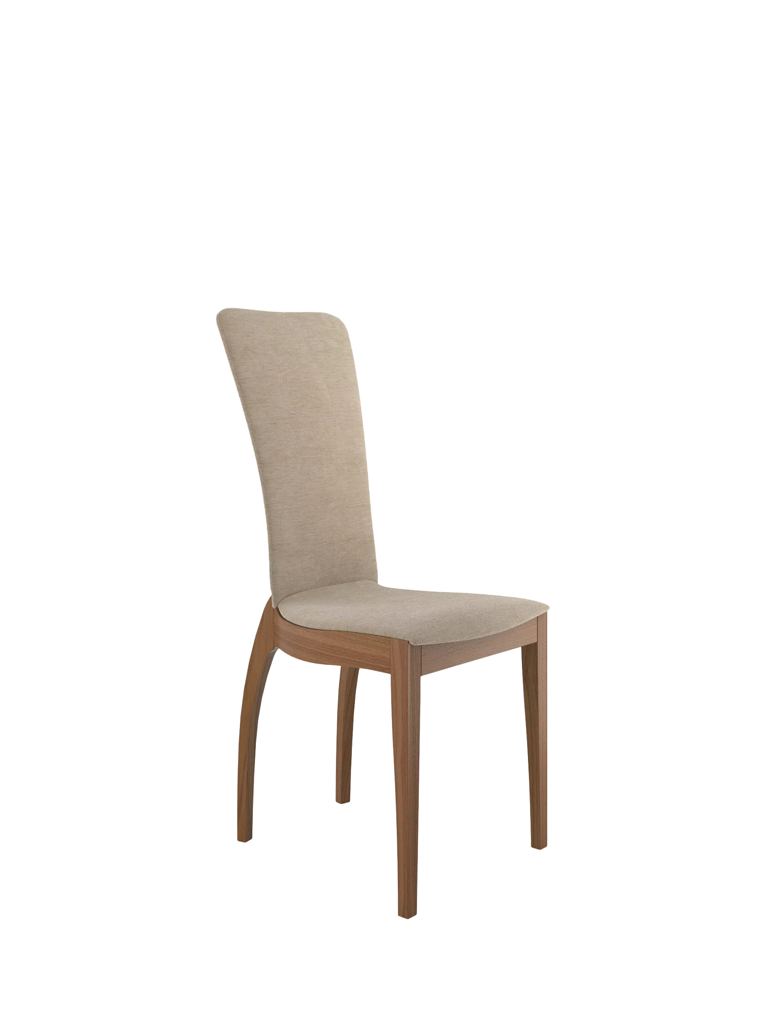 This is a wonderfully elegant chair design with a slender back that gently curves outwards providing comfort as well as style. Formed from solid oak with a walnut finish, it features a fully upholstered back and seat with curved legs for a truly inspired design.