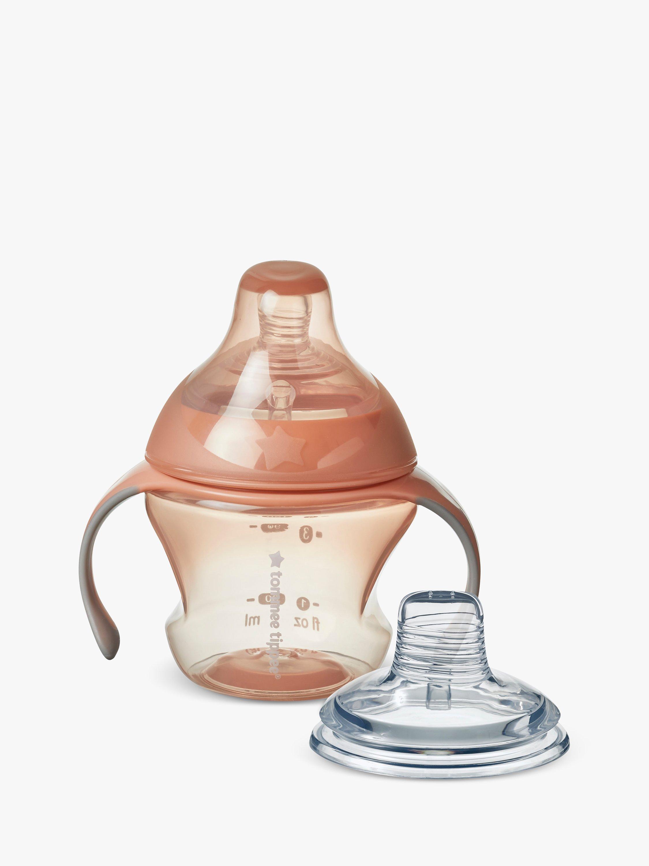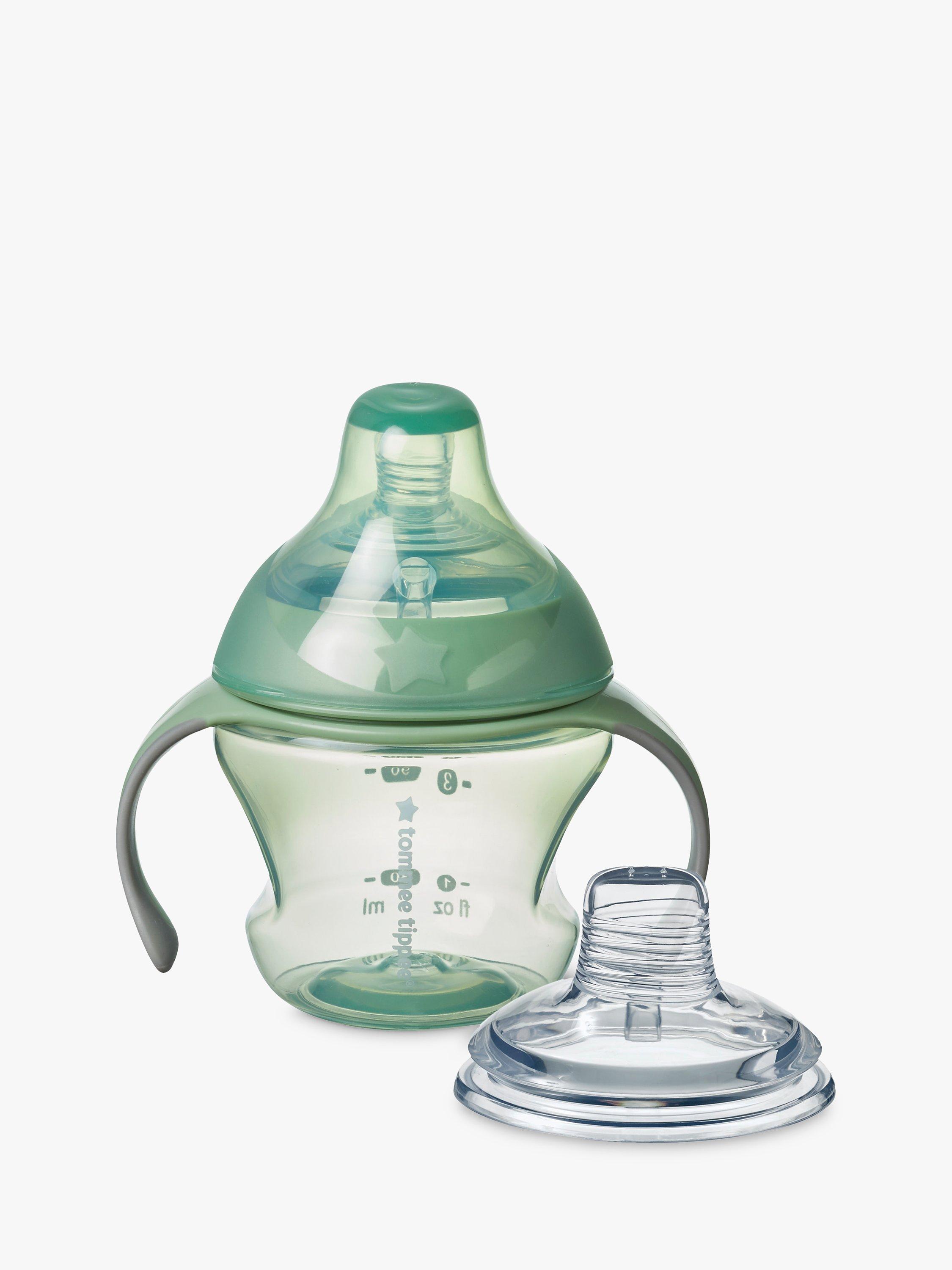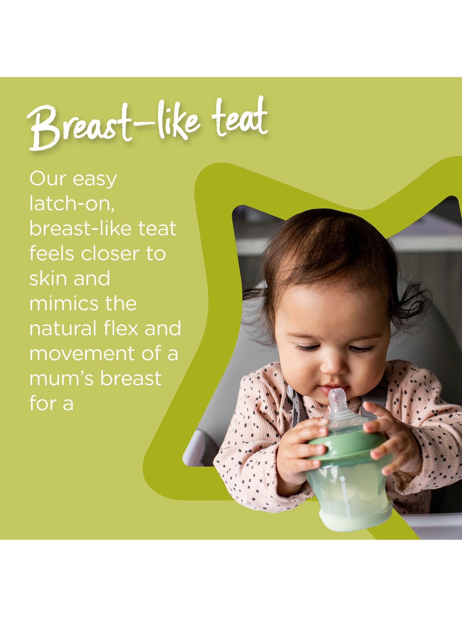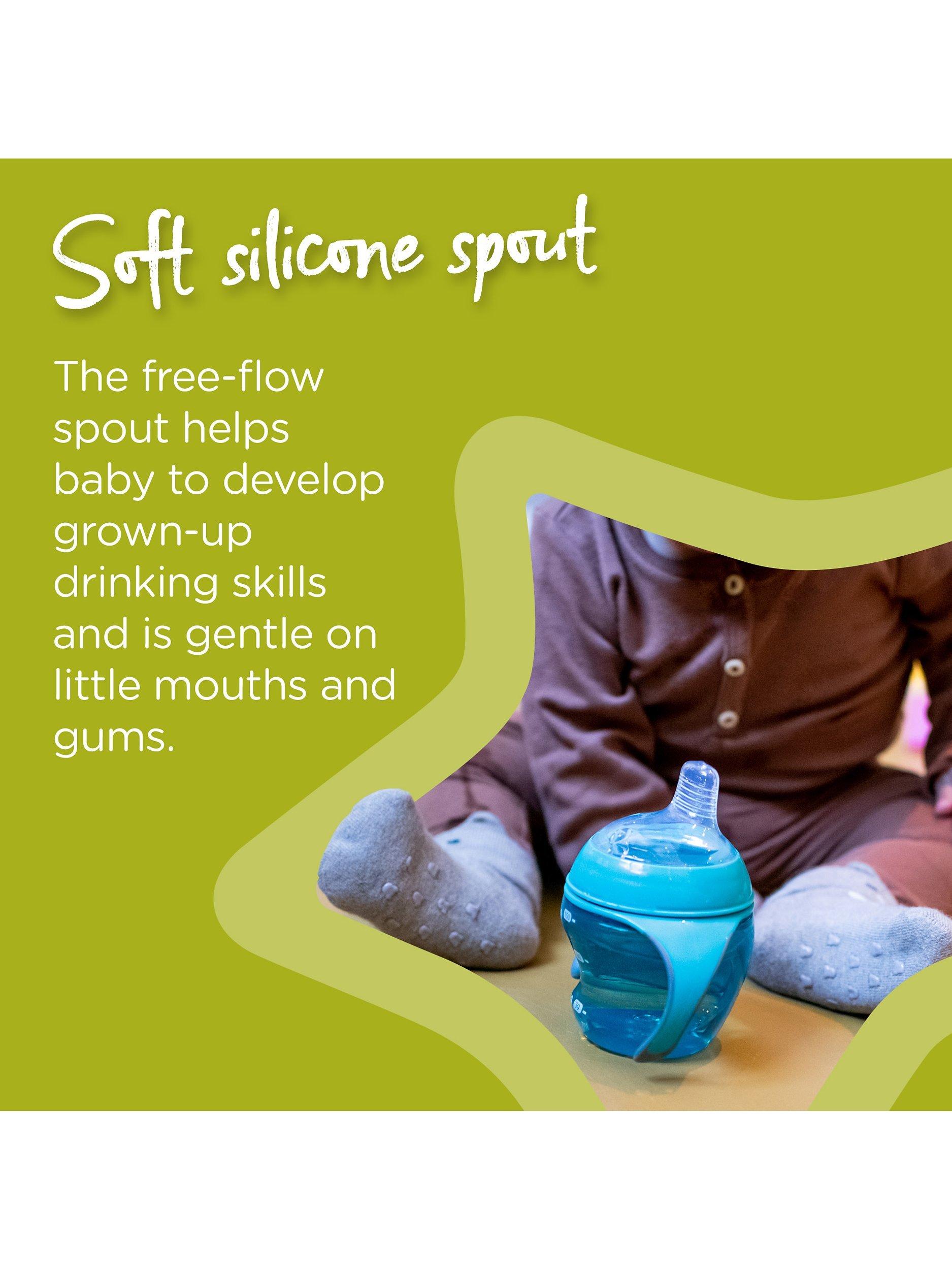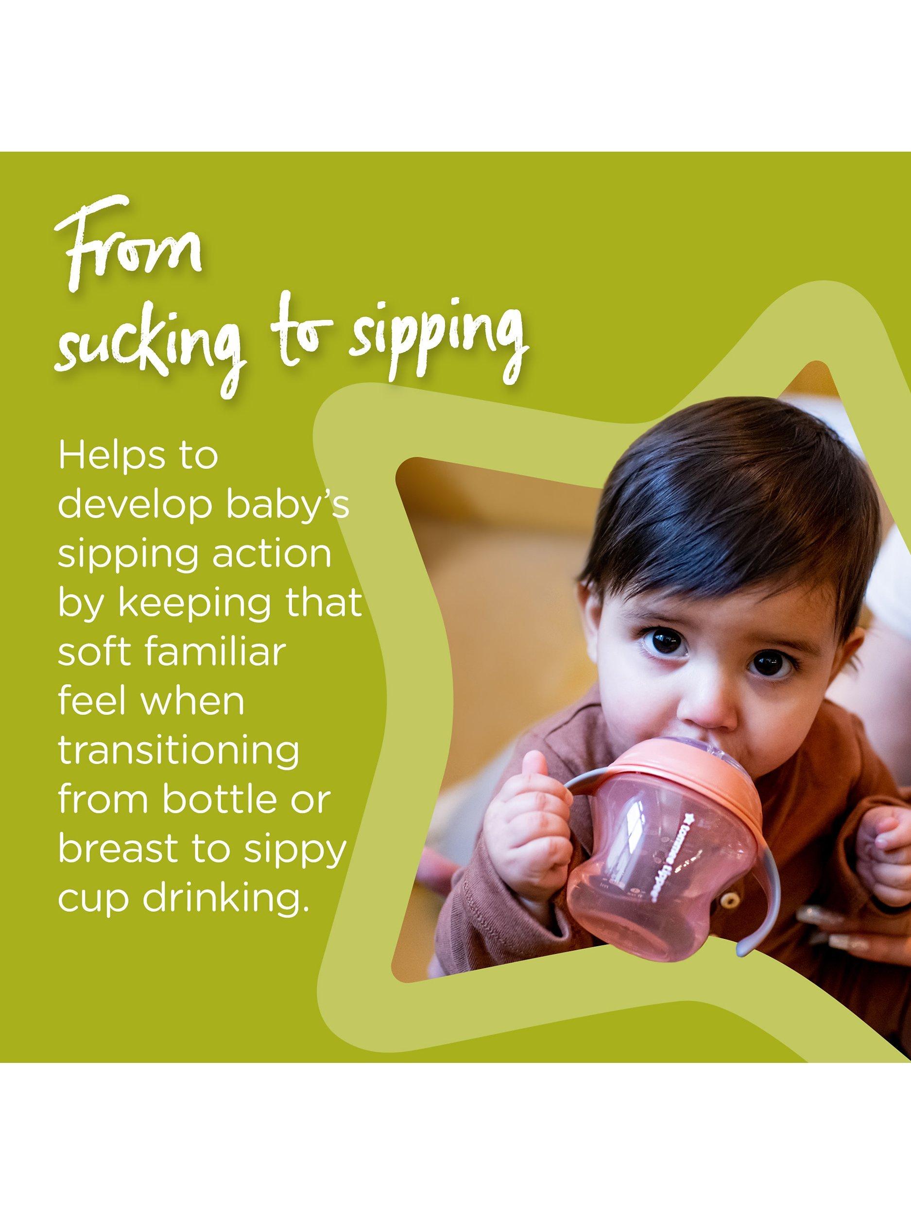 This Tommee Tippee bottle with baby's 1st soft silicone spout helps the transition from breast or bottle to baby's 1st cup drinking.