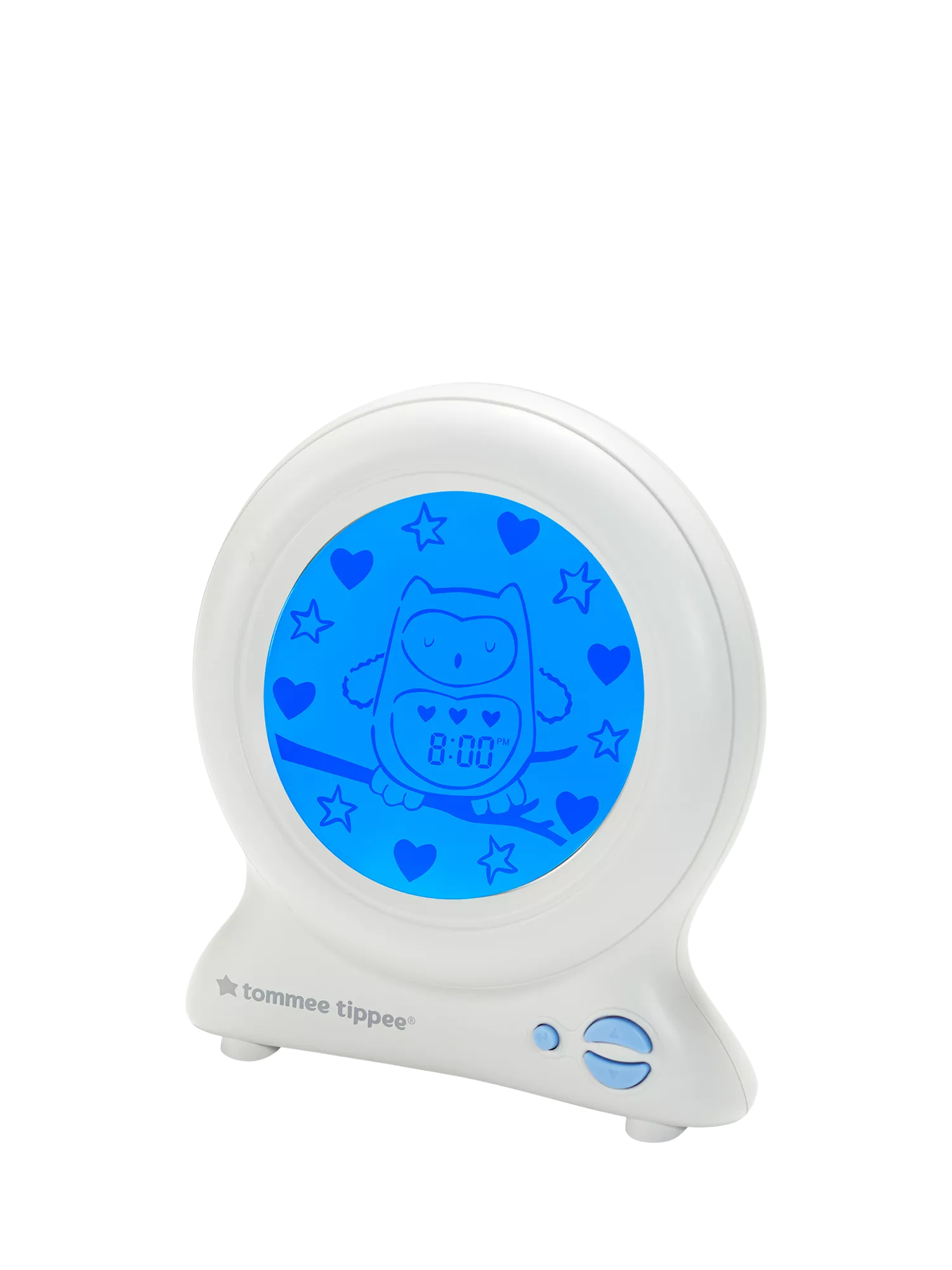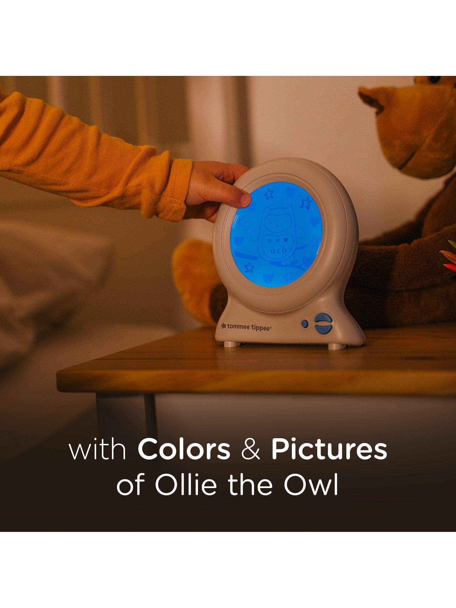 Simply set the time you would like your child to wake up in the morning and this sleep trainer clock will show the passing of time using colours and symbols. When it’s time to sleep, the blue clock face features a sleepy Ollie the Owl surrounded by hearts and stars. As the time passes and reaches your pre-set wake-up time, the stars start to gradually disappear until there are only hearts left and our lovable Ollie the Owl appears awake on a yellow background.