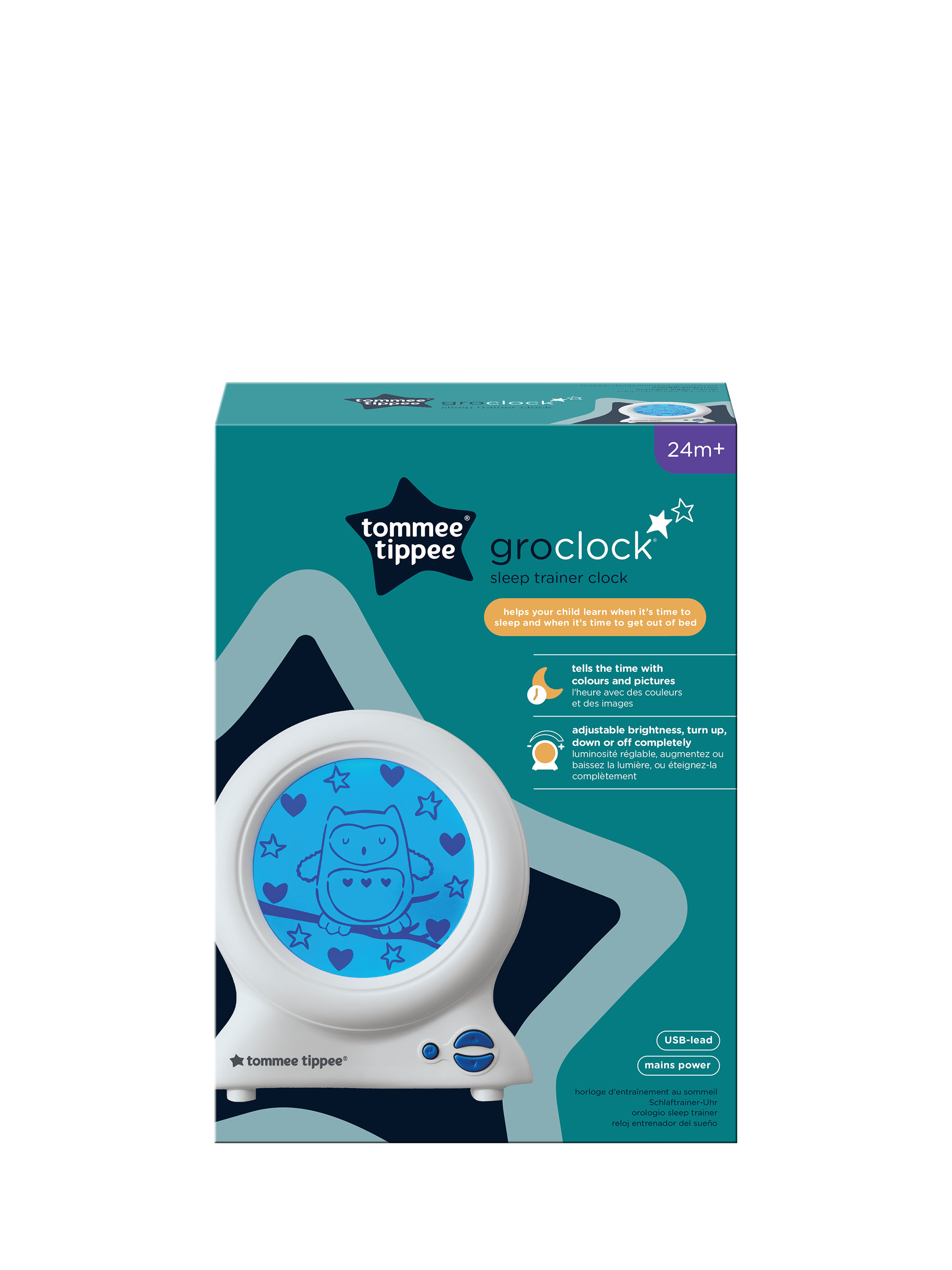 The Tommee Tippee Groclock sleep trainer uses colours and pictures to help children who are too young to read an ordinary clock, to understand when it’s time to sleep and when it’s time to spring out of bed and play!