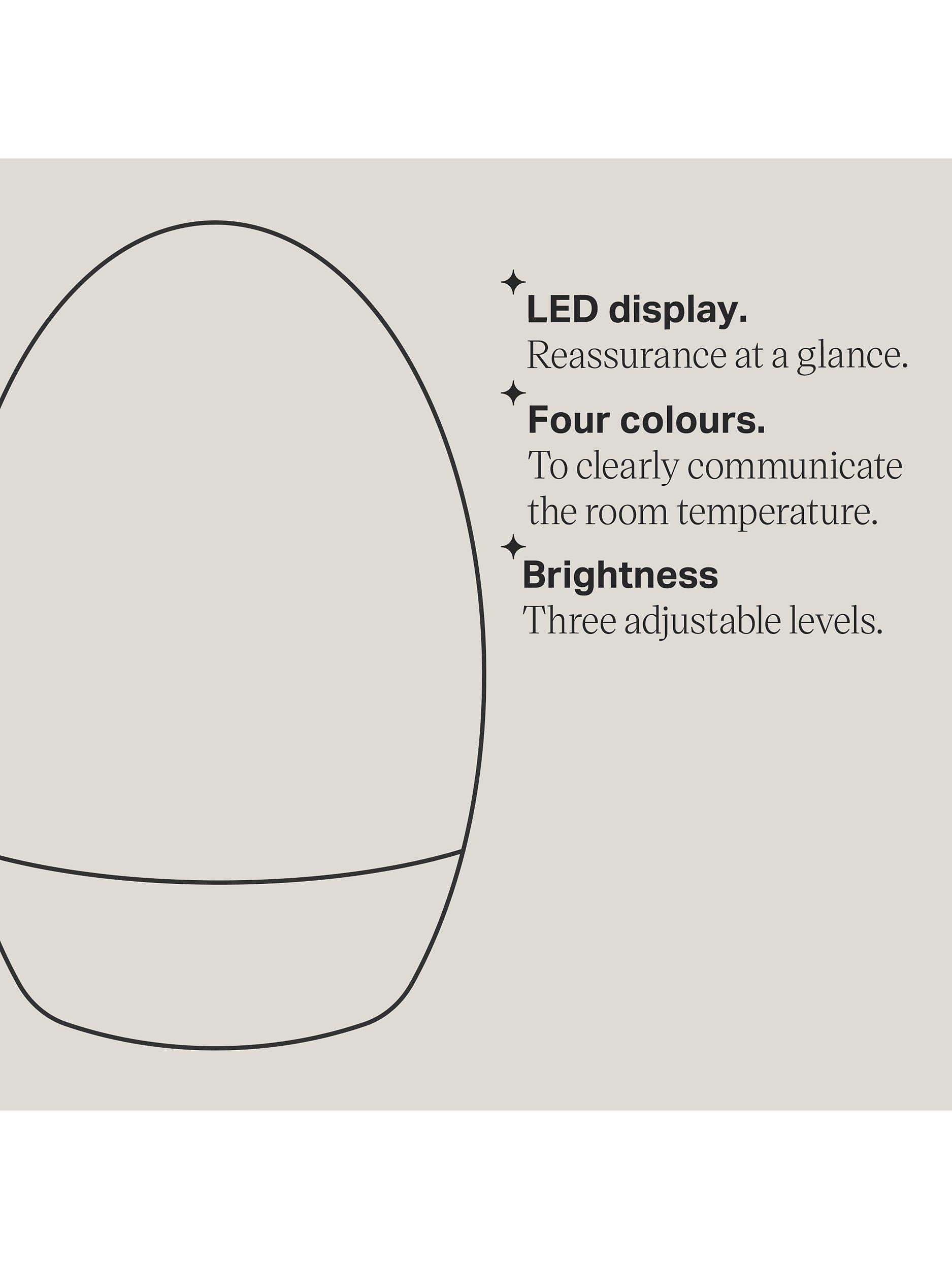 - Groegg2 digital room thermometer changes colour to indicate the temperature of the room so you can adapt your child's clothing or room environment accordingly