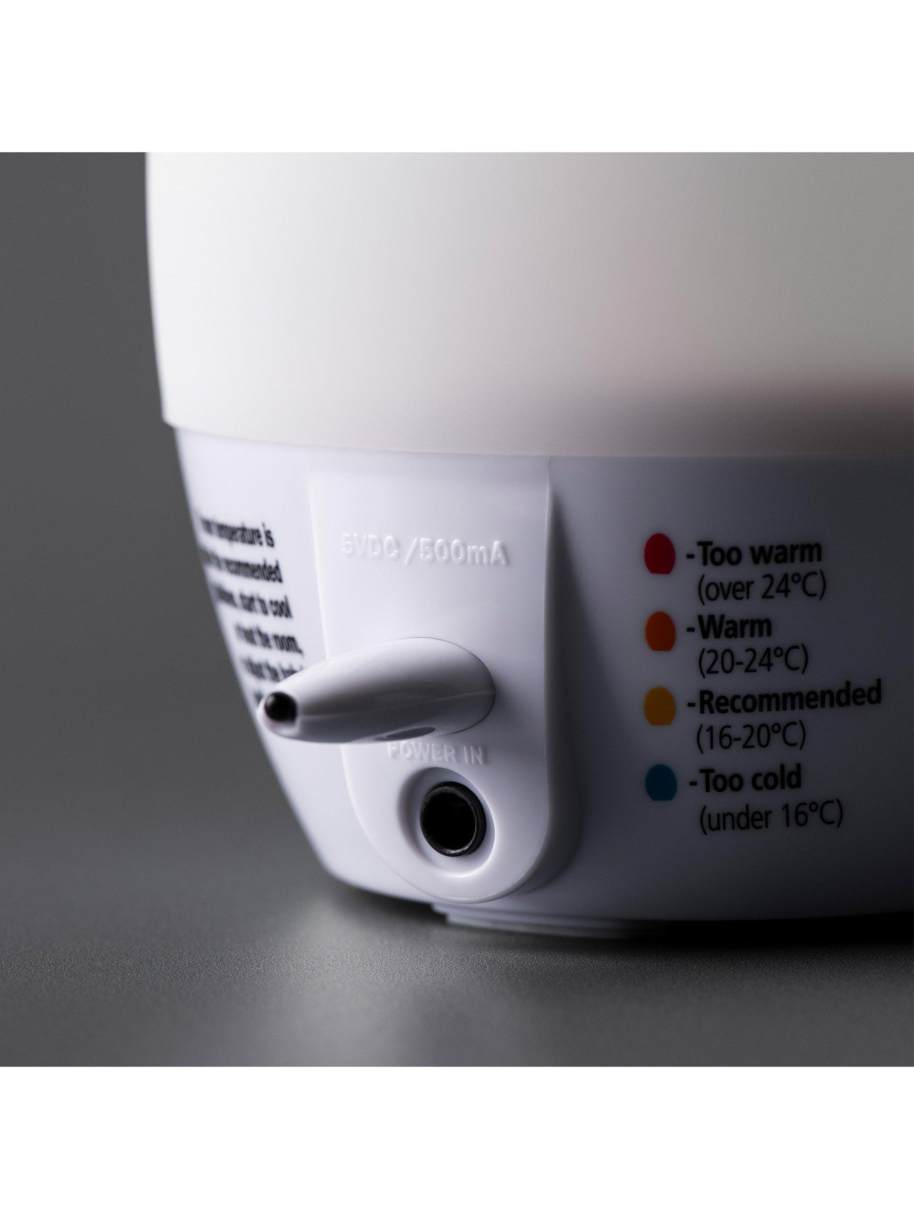 The larger shape and brighter design of this Groegg2 digital room thermometer from Tommee Tippee make it even easier than before to check your little one is resting at the correct temperature. In addition to the brand's innovative colour changing system and handy temperature display, the Groegg2 has three adjustable brightness levels meaning you can use it as a nightlight and adjust the light to find a brightness level that suits you and your baby.