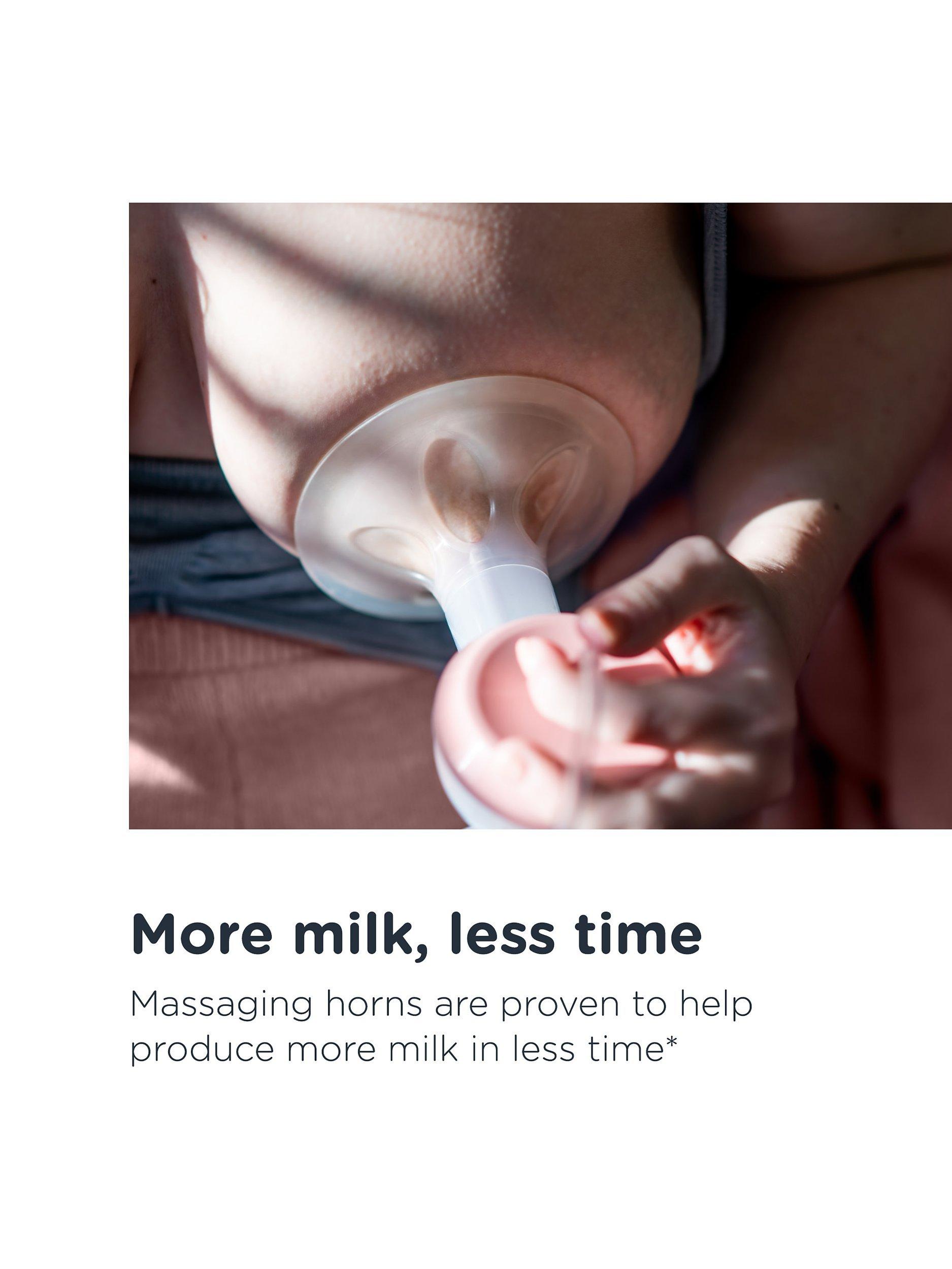 - More milk in less time: The soft, silicone cups feature massaging petals that work to stimulate your breasts so you can express more milk in less time*