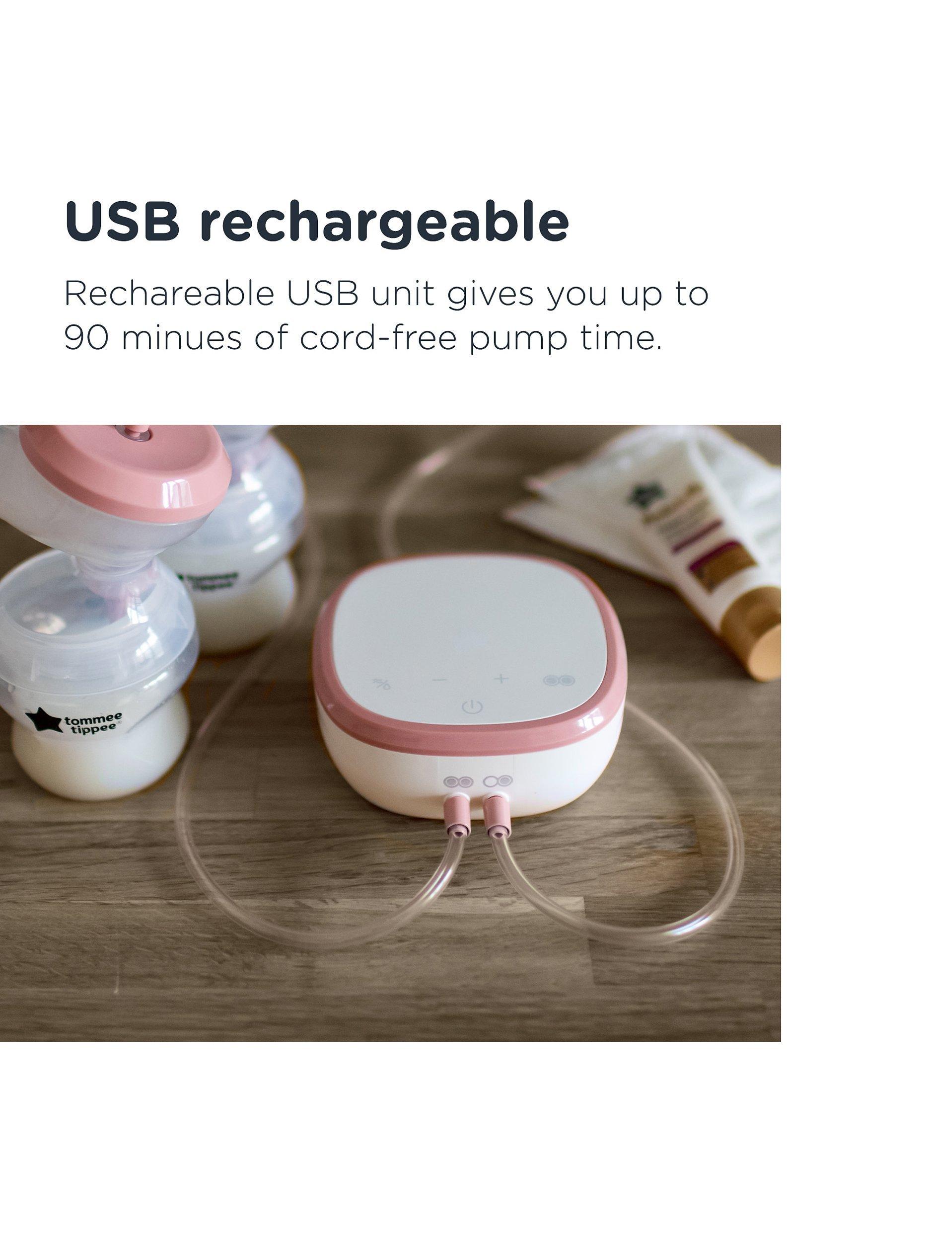 - USB Rechargeable: Powered by a USB rechargeable power unit so you can use this breast pump anywhere. Full charge gives you over 90 minutes of cord-free pump time