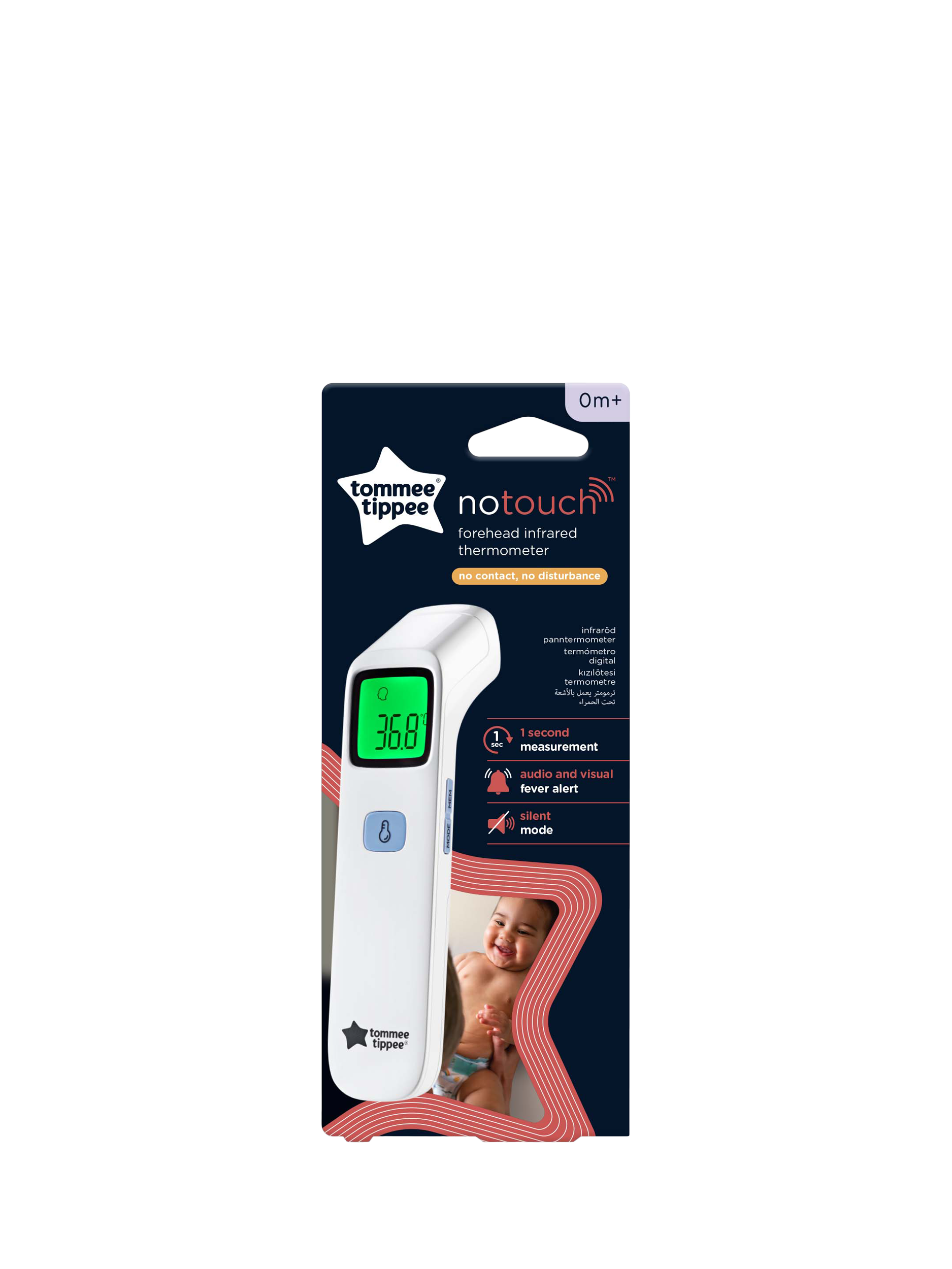 For instant and easy temperature readings that can be taken from birth and without even touching your baby, reach for the Tommee Tippee No Touch Digital Thermometer.