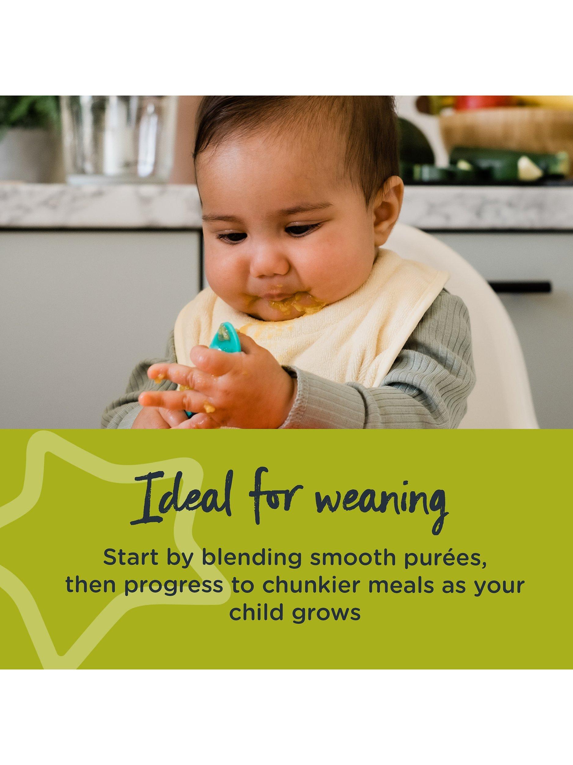 Featuring a 200W motor, three strong stainless steel blades and a 500ml capacity bowl, you can quickly and easily chop, blend, purée, mix and mince ingredients such as fish, meat, fruit and vegetables*. Perfect for all stages of weaning, the simple one-touch button positioned on the top of the unit allows you to adjust the texture of the food according to baby's stage of weaning.