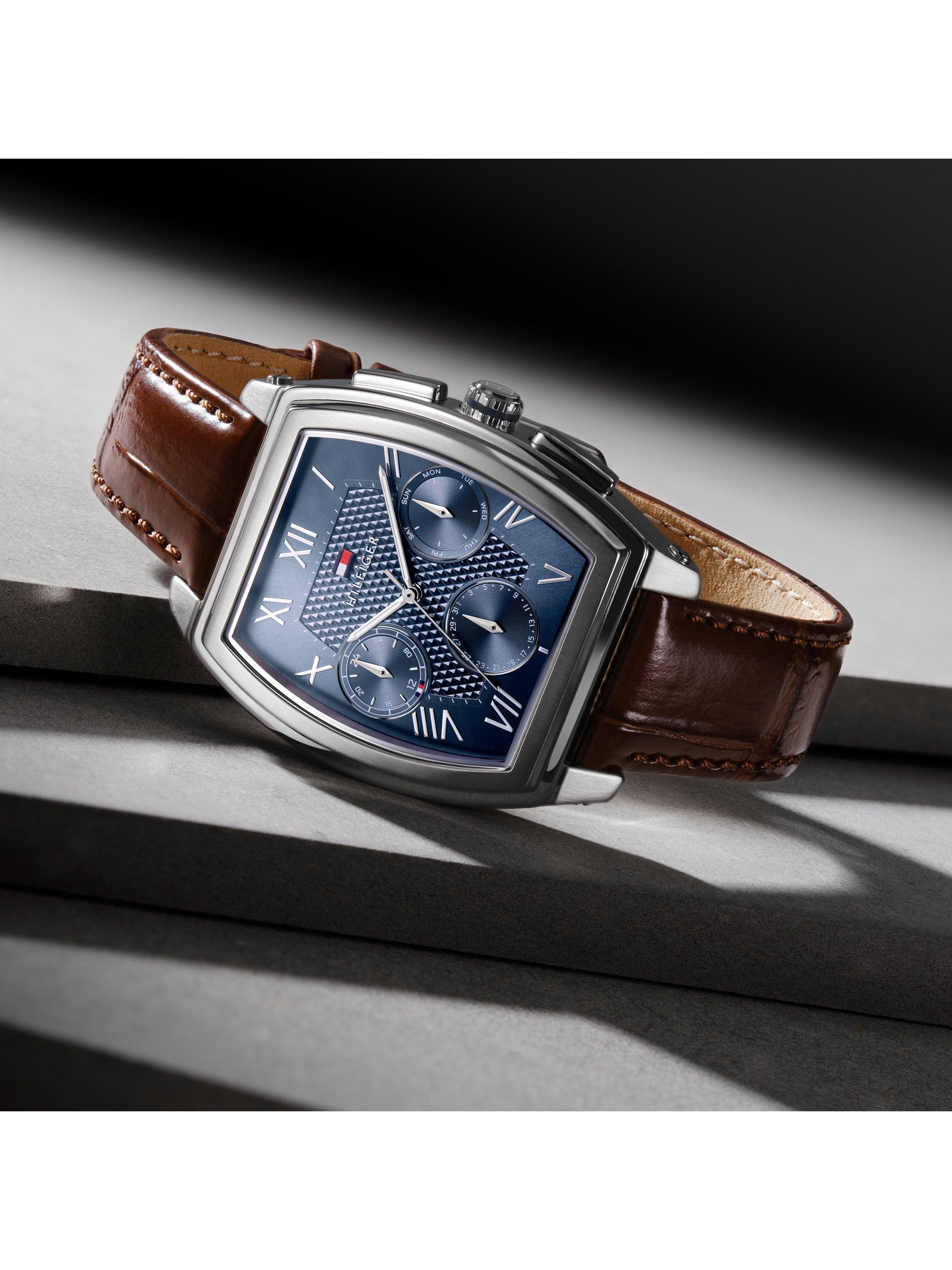 Tommy Hilfiger1710760 Men's Rectangular Leather Strap Watch, Brown
