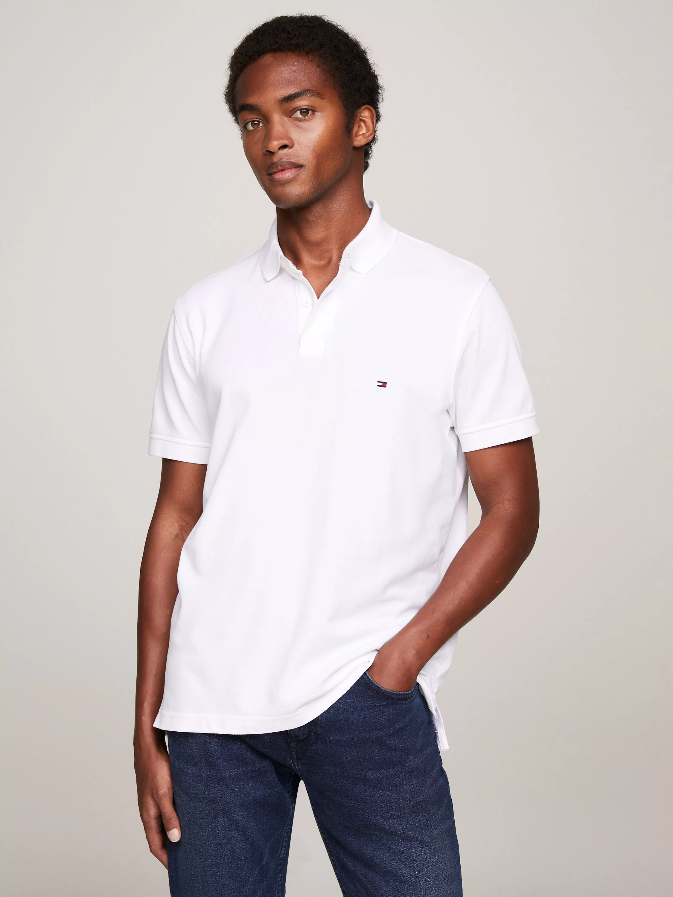 A bonafide wardrobe essential, keep stylish with this cotton blend polo shirt by Tommy Hilfiger.