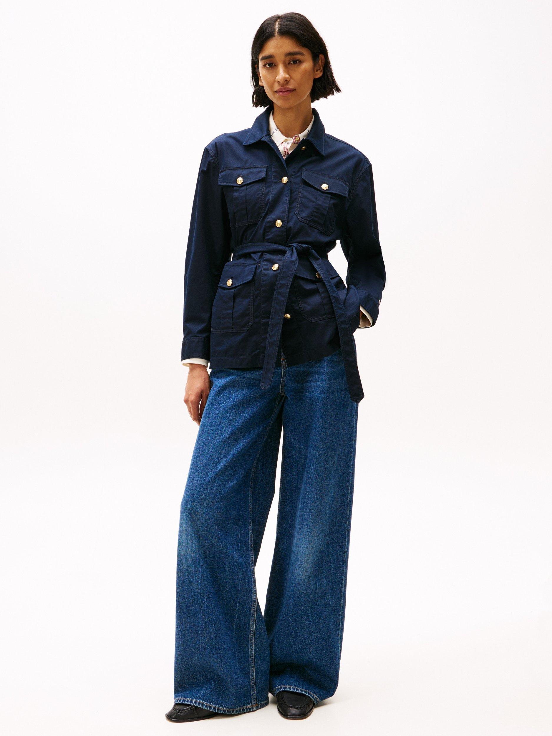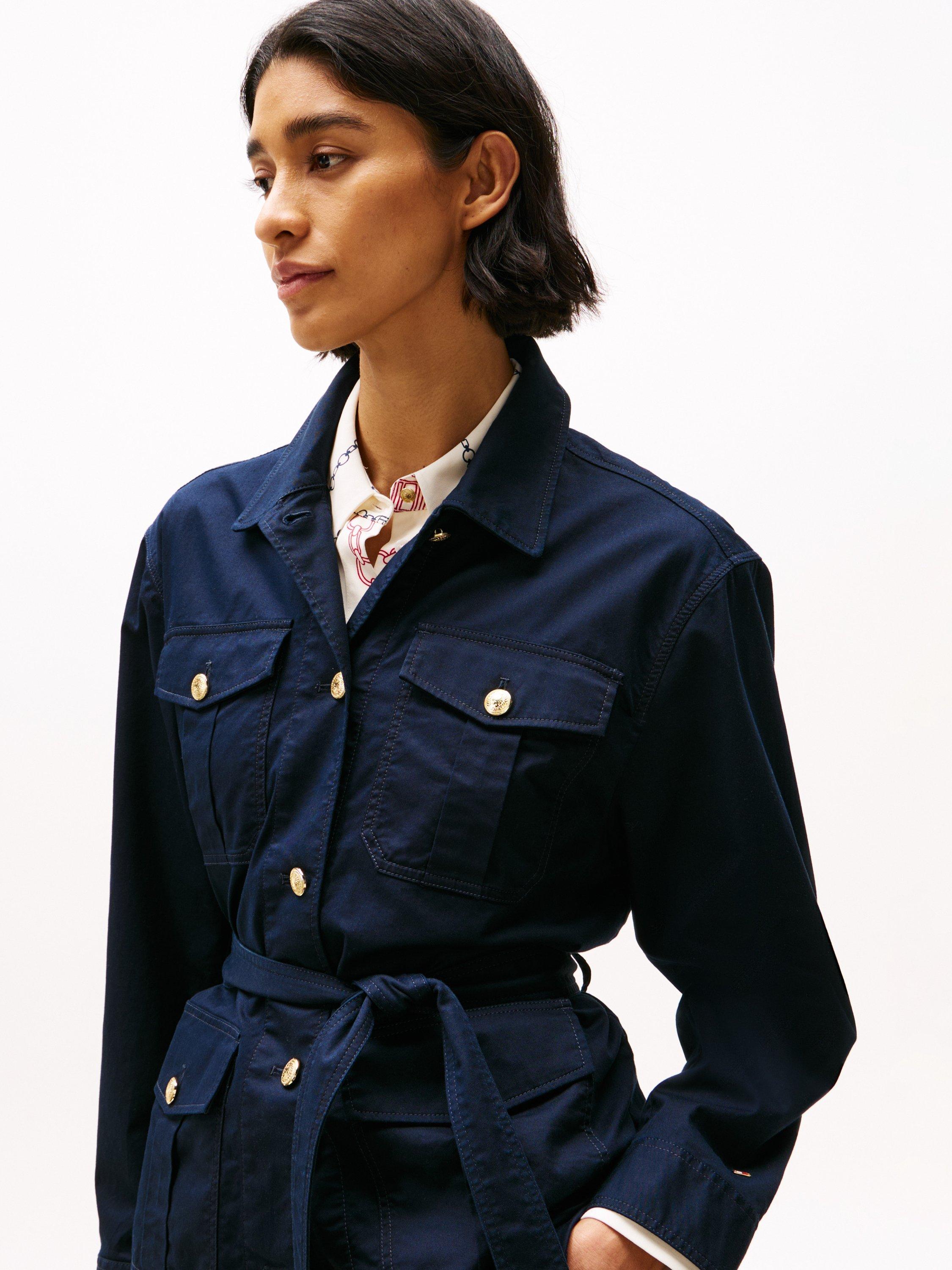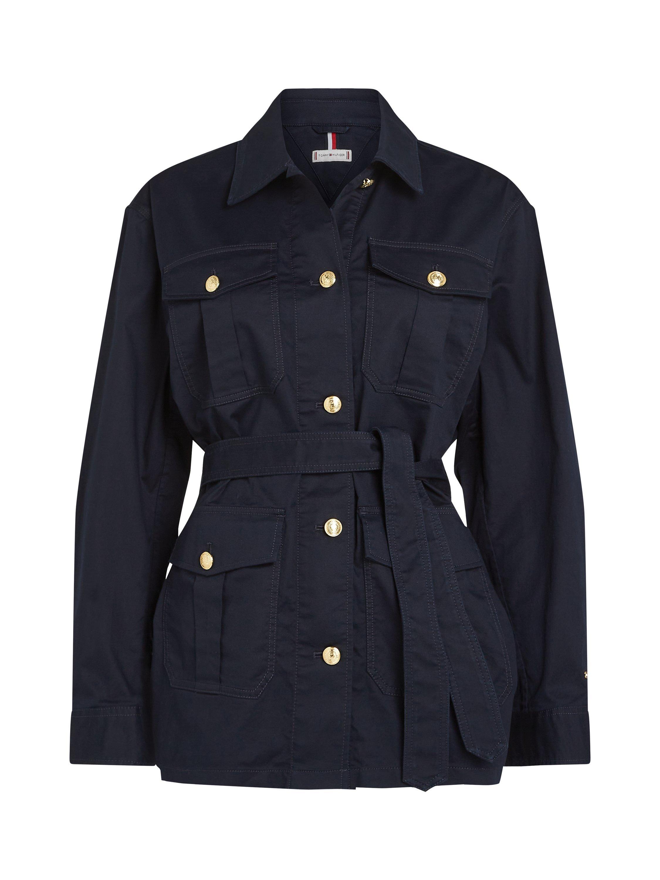 Designed with plenty of functional accents, this belted utility jacket by Tommy Hilfiger is crafted from a cotton blend for breathable wear.