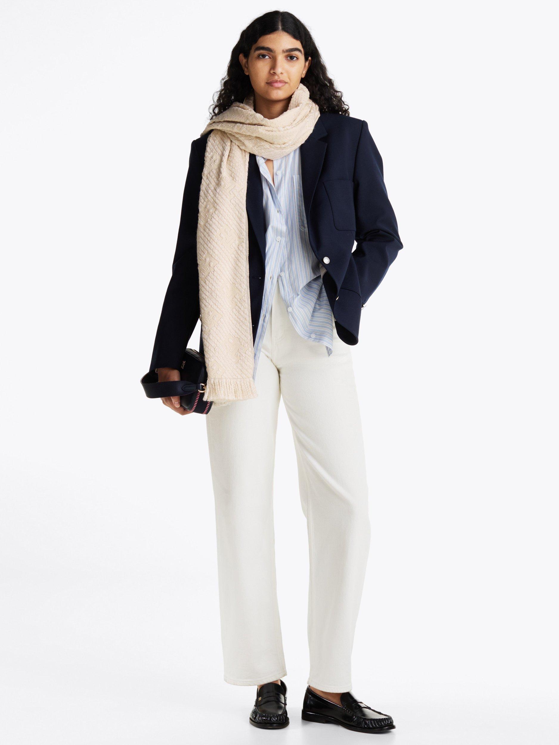 Keeping out the chill so you can get out and about in style, this wool blend scarf by Tommy Hilfiger offers easy staple style solutions with its versatile design.