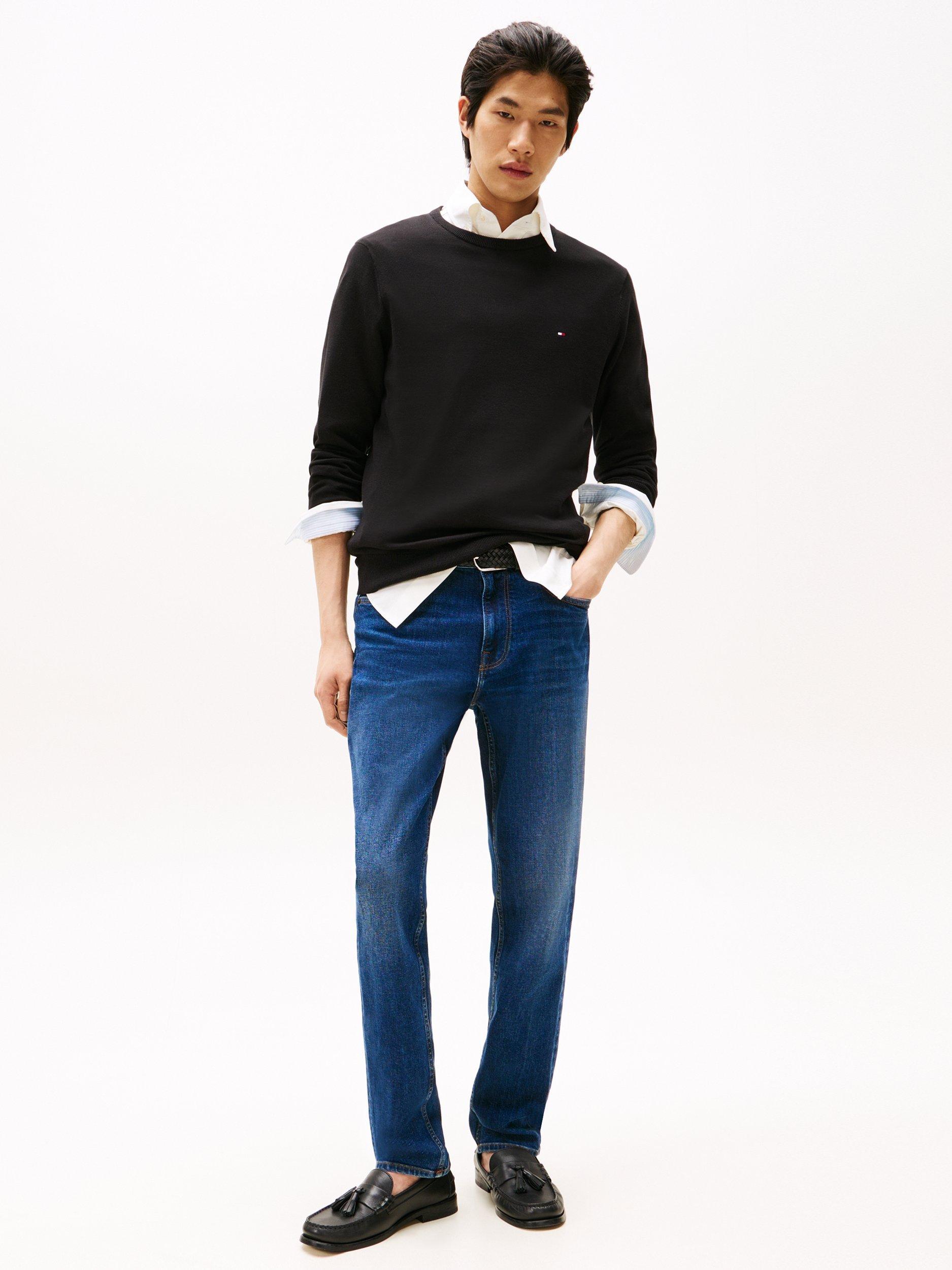 Keep things sleek on chilly days with this crew-neck jumper, crafted from pure cotton for optimal softness and comfort.