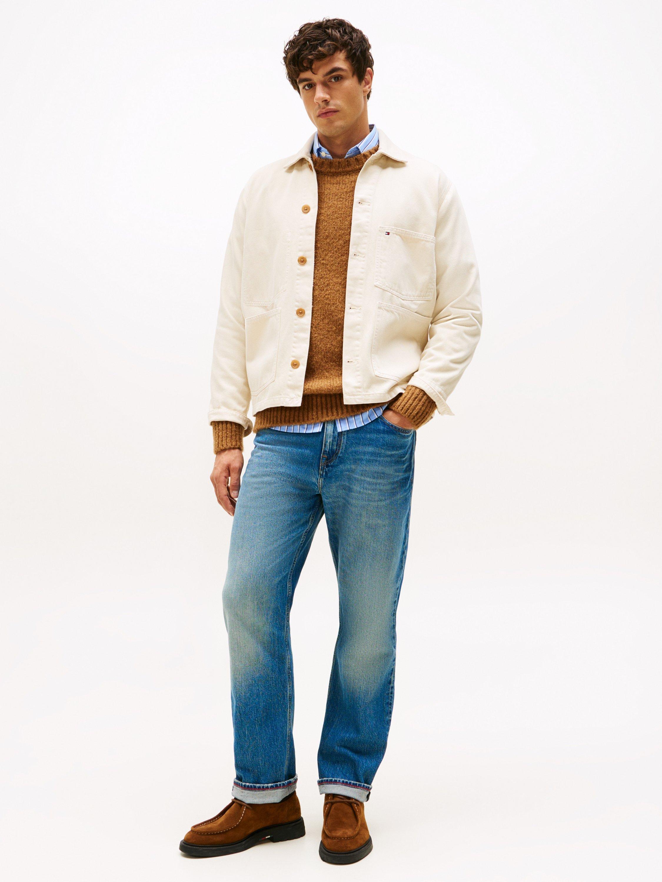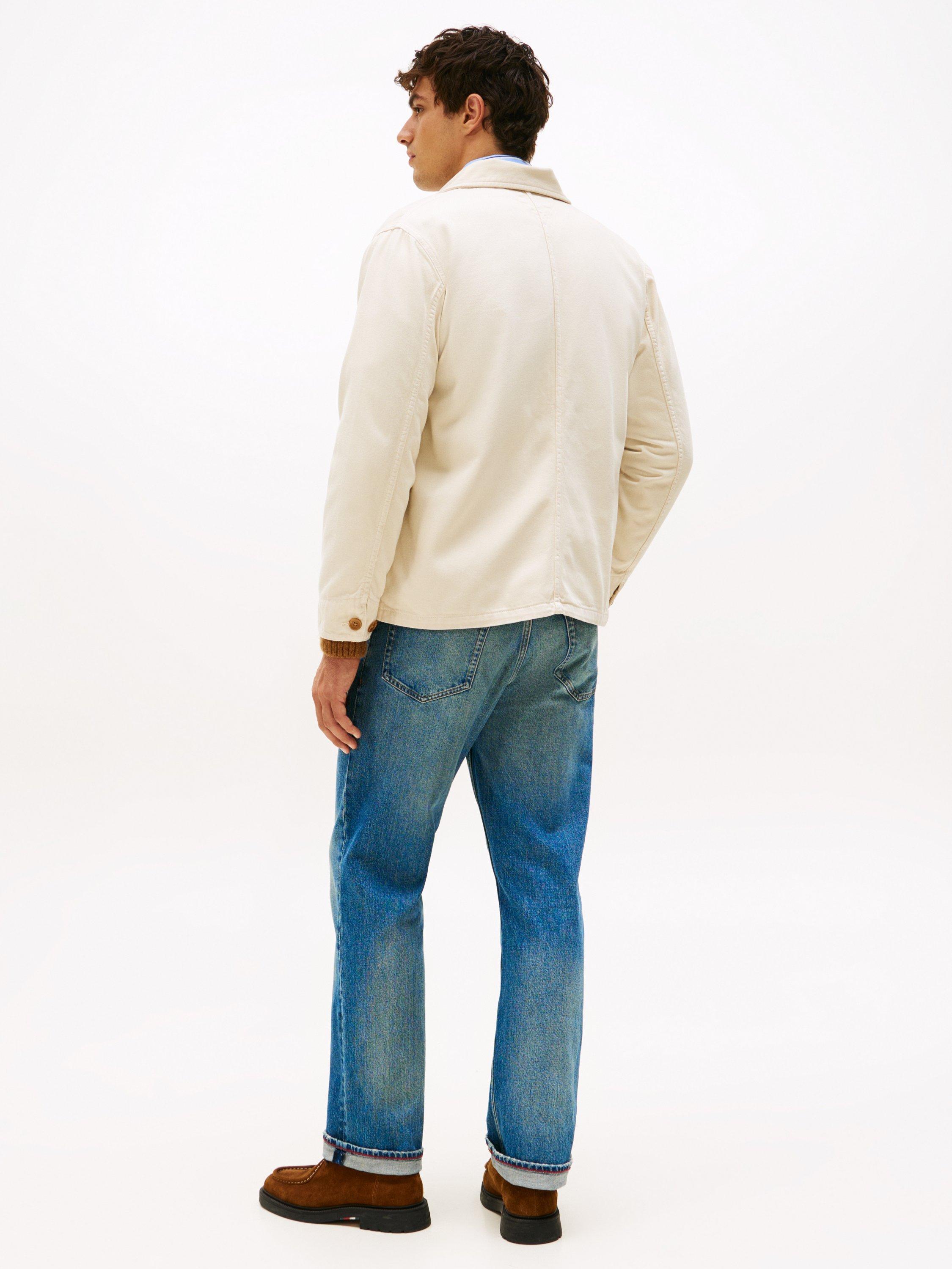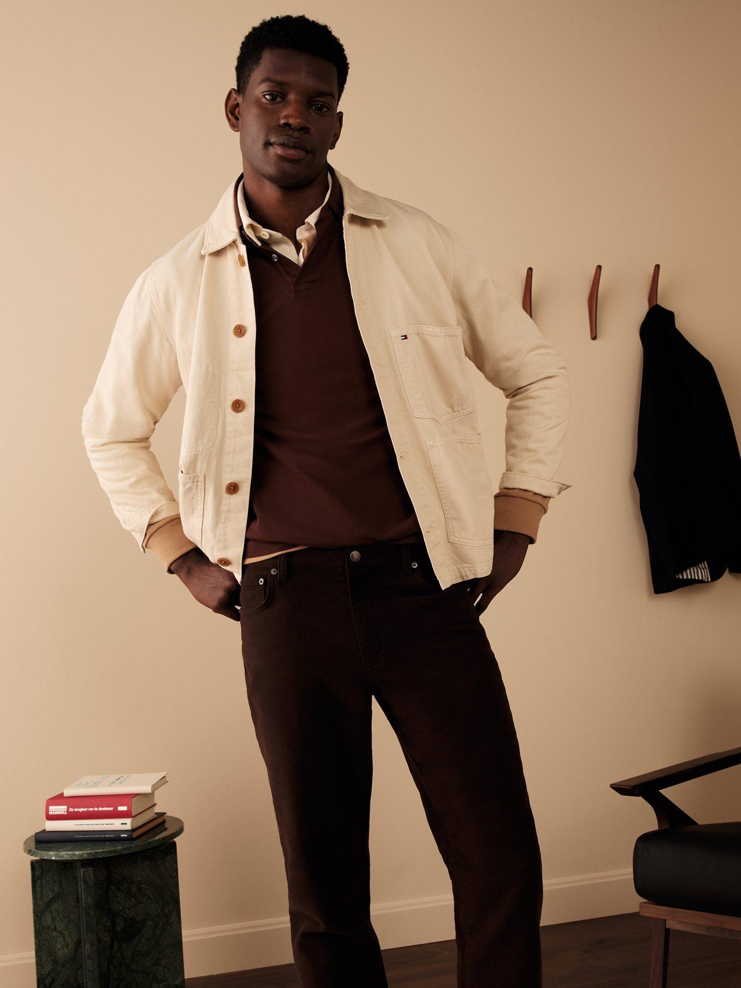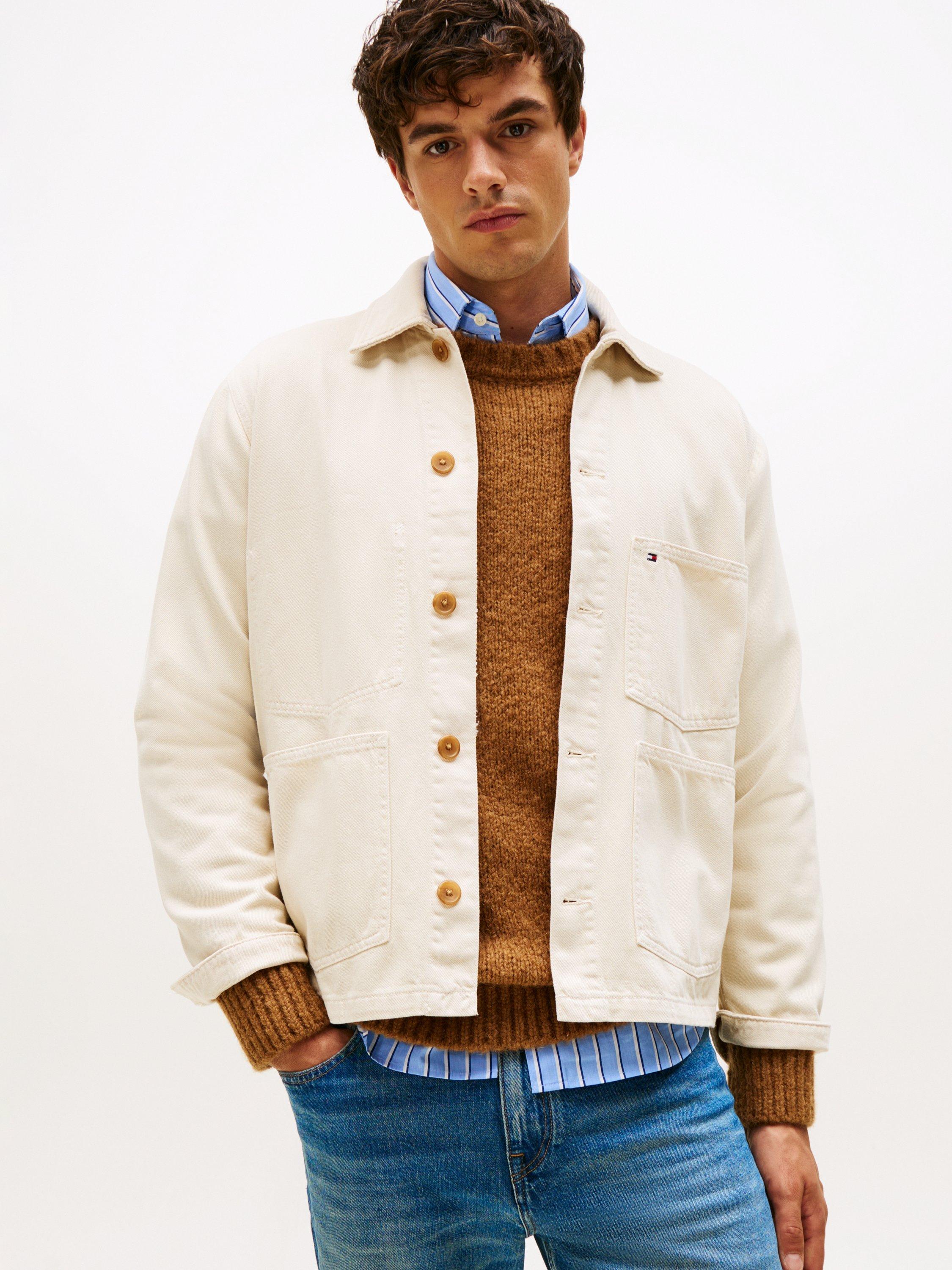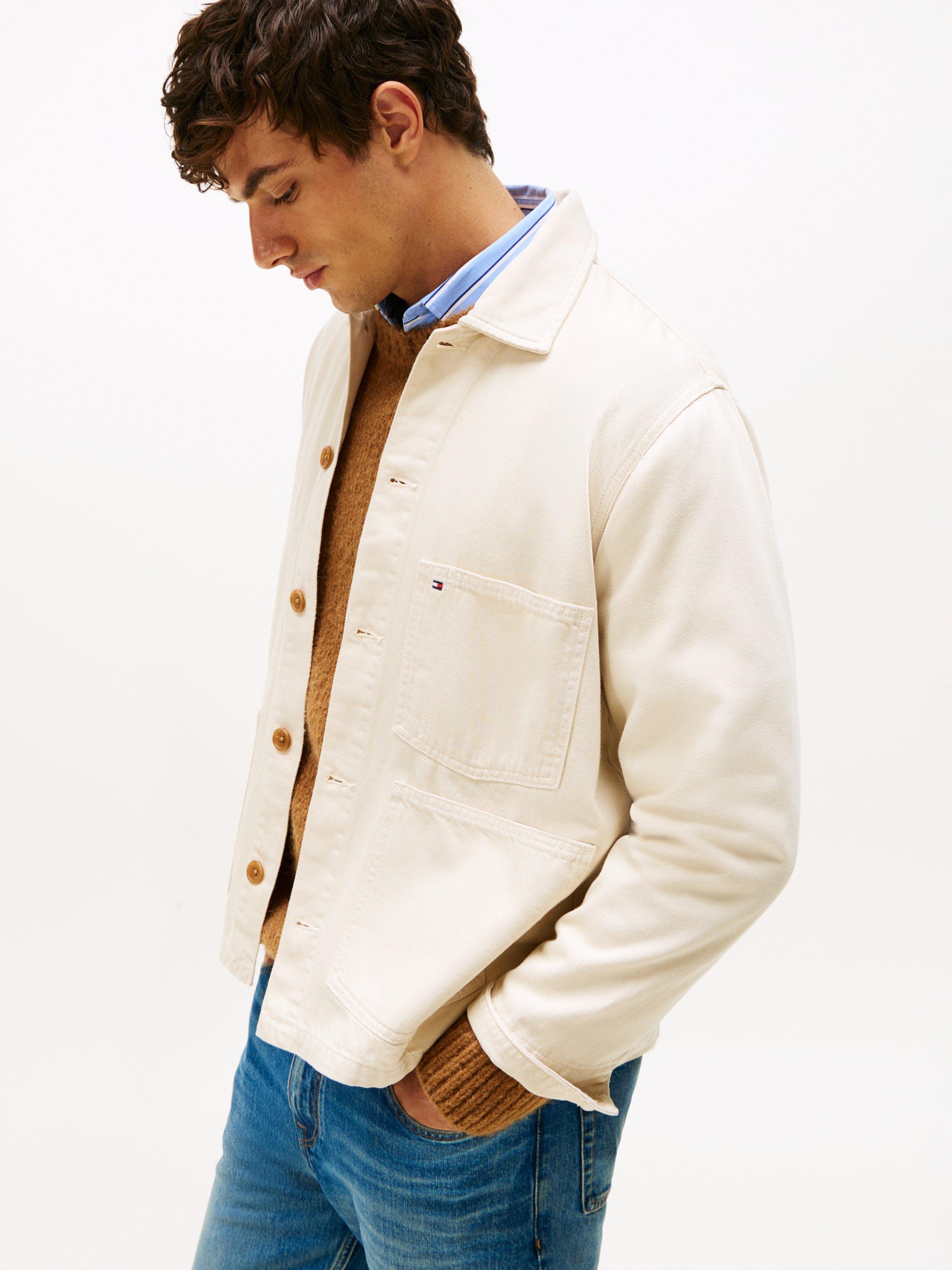 For that lived-in look, turn to our garment-dyed range. The colour is applied after the clothes have been constructed for a vintage appearance. This chore jacket is crafted from rigid cotton denim and is garment dyed for a lived-in look, making it a stylish layer.