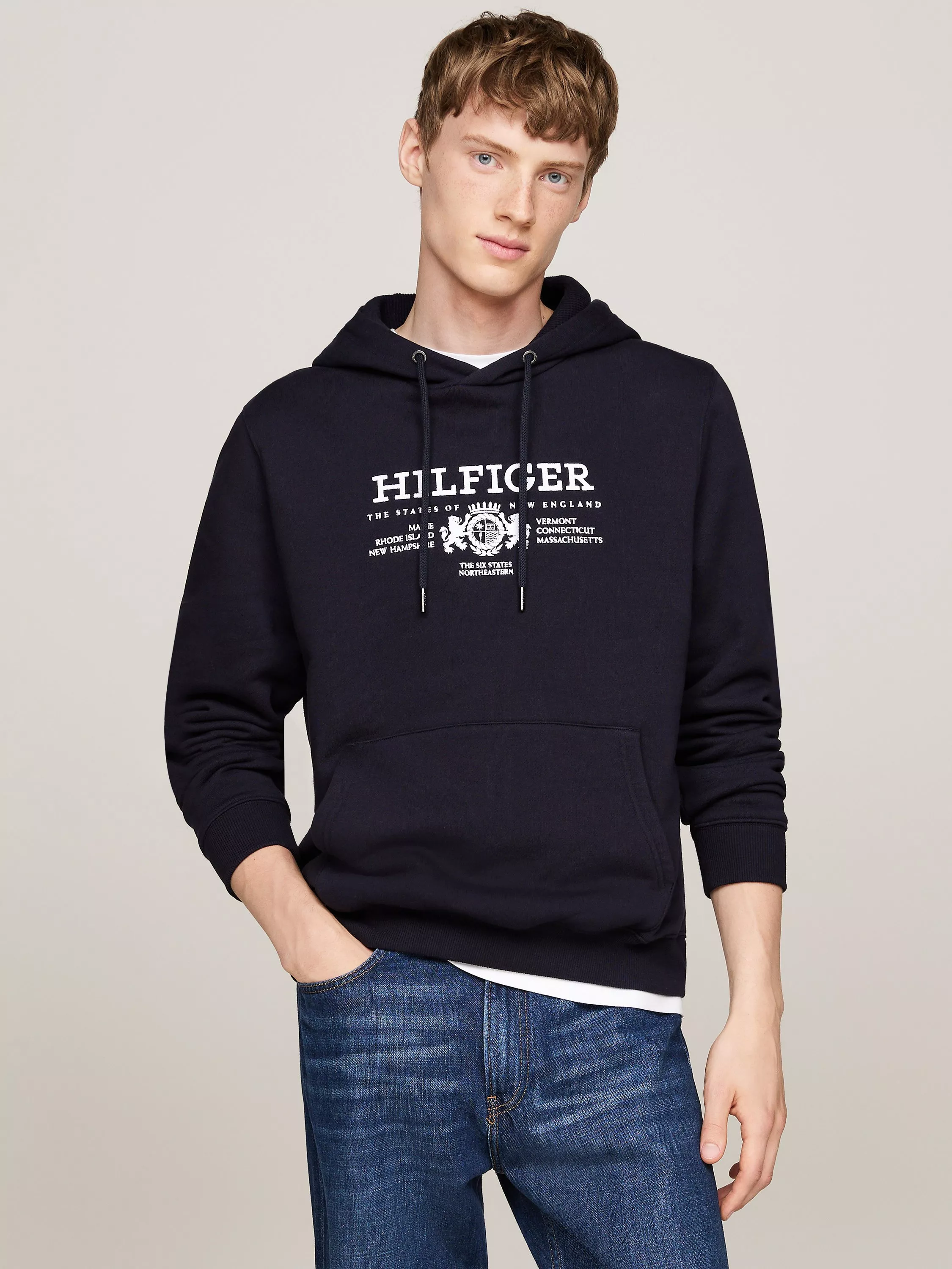 Embrace a streetwear-inspired aesthetic with this soft cotton hoodie from Tommy Hilfiger which complements a relaxed silhouette with casual fit.