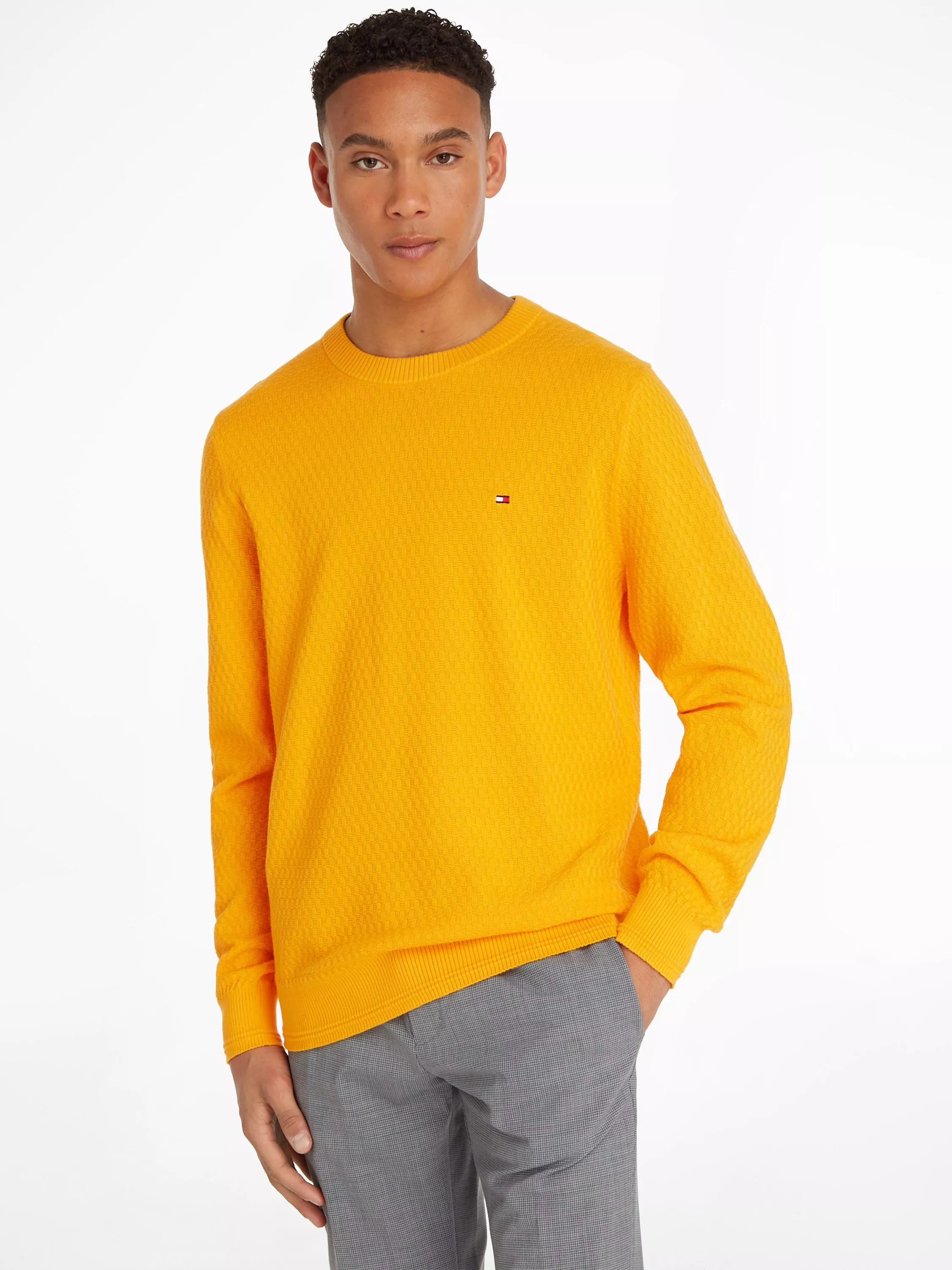 This cotton crewneck jumper features a unique structured knit pattern to elevate any outfit. In a range of seasonal colours, with a crew neckline and ribbed cuffs and hem. Finished with signature Tommy flag embroidered on the chest and inside neckline for a subtle branded touch.