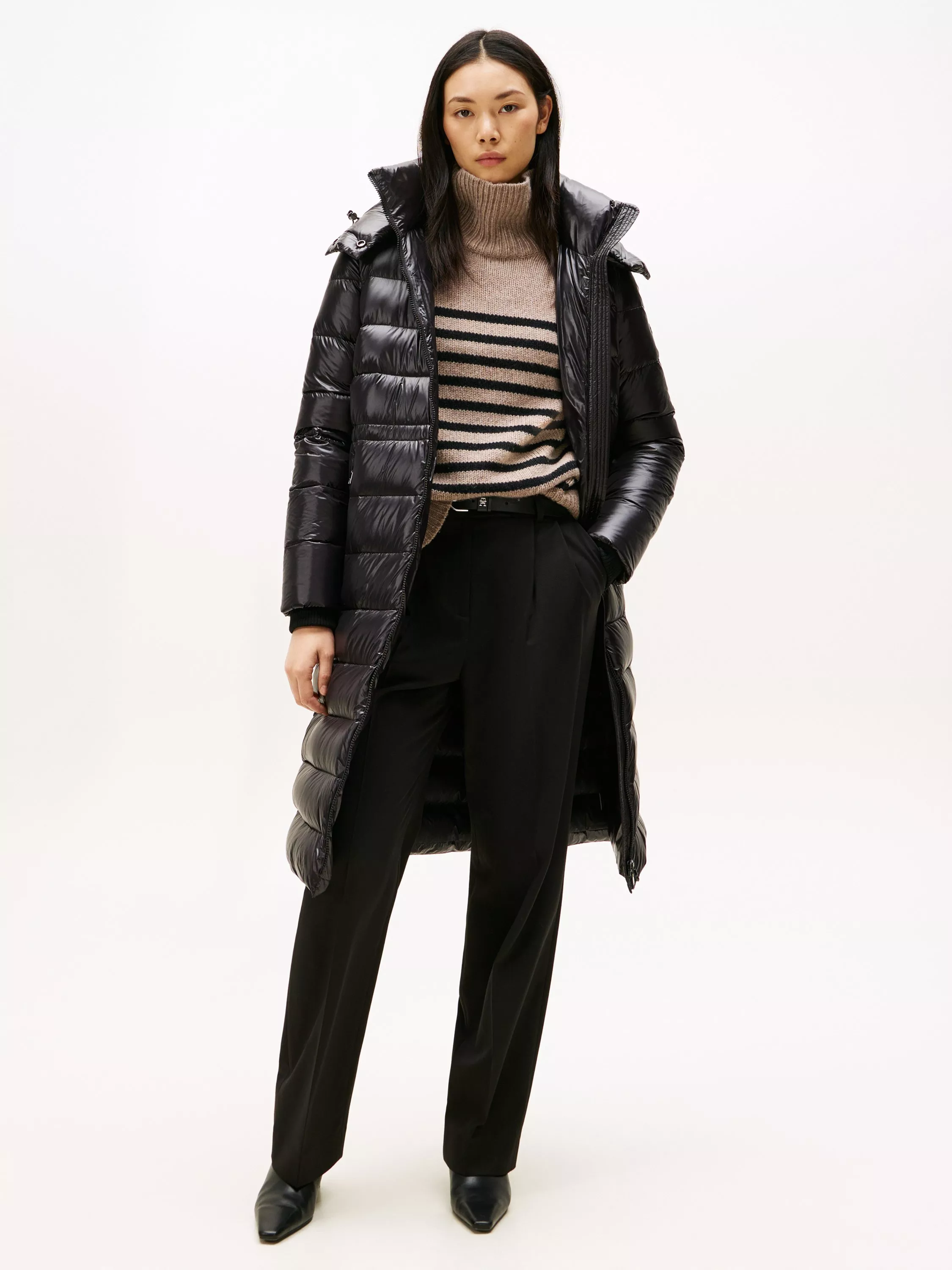 Take a maximalist approach to cold-weather looks in this luxurious down-filled coat, featuring a long silhouette and a shiny, water-repellent finish.