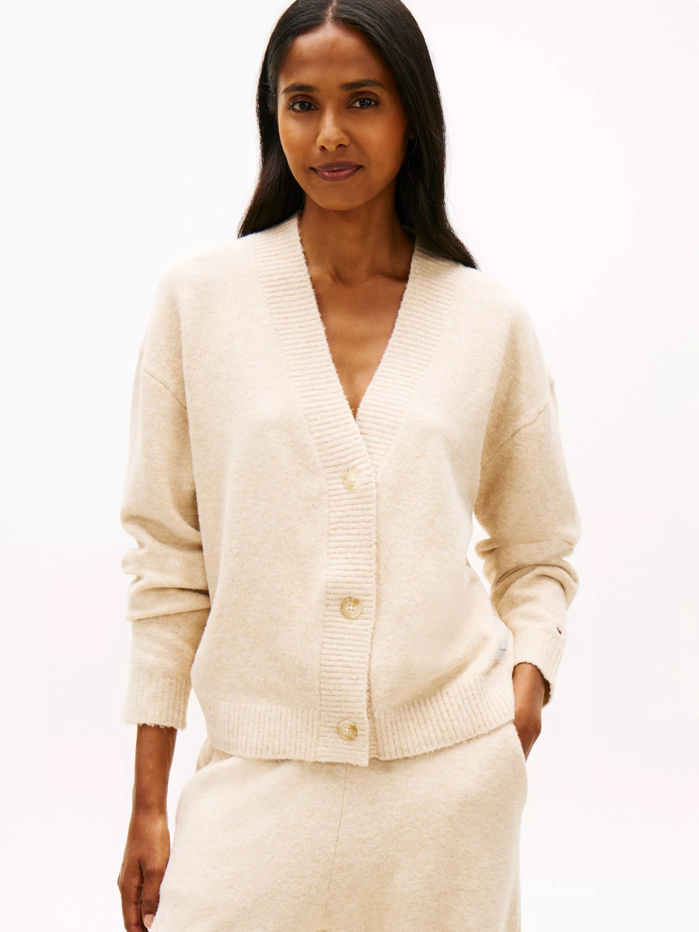 A cosy knit cardigan, with a touch of wool in the fibre mix for its warmth.