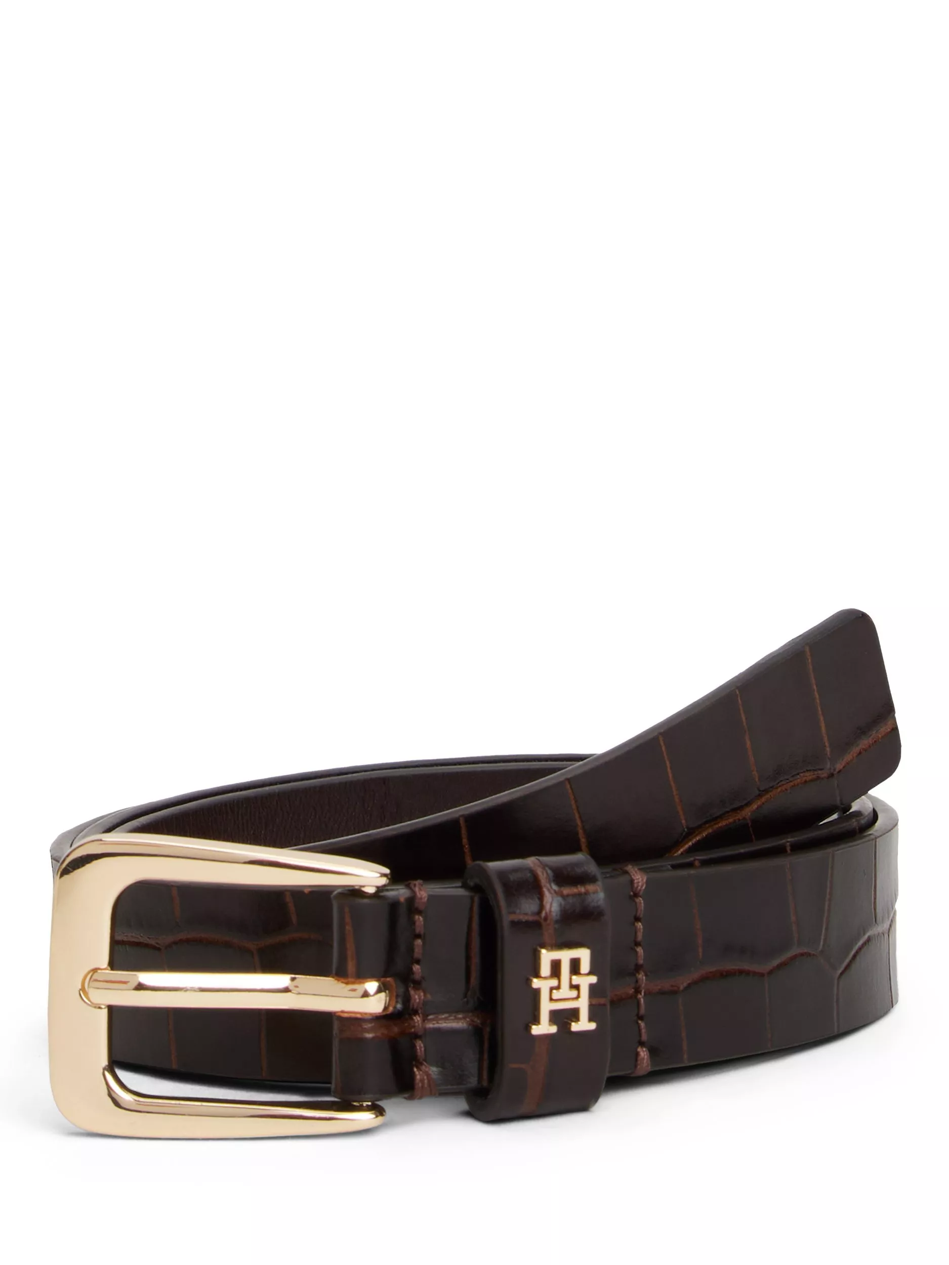 A croco-print brings a luxurious feel to this leather belt, complete with a polished metal buckle and a TH monogram plaque.