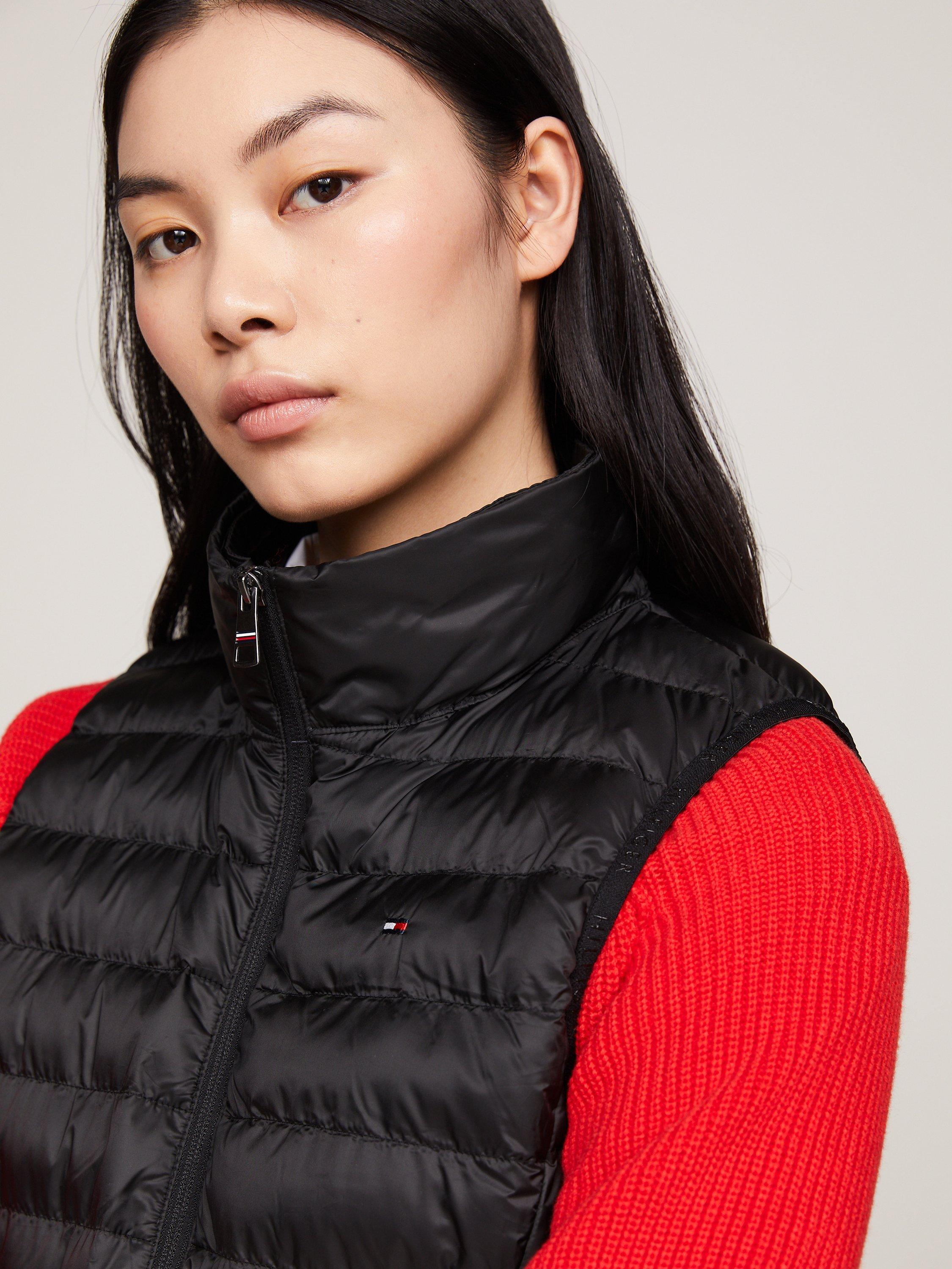 Beat the chills while looking on-trend in this layering-friendly quilted vest topped with a signature-trimmed hood and insulating zipped neck. Down-filled for supreme warmth, it's designed with all-over quilted stitching, a zipped neck and two waist angled pockets for stashing cold hands into. Plus, we can't forget the signature Tommy Hilfiger branding to the chest.