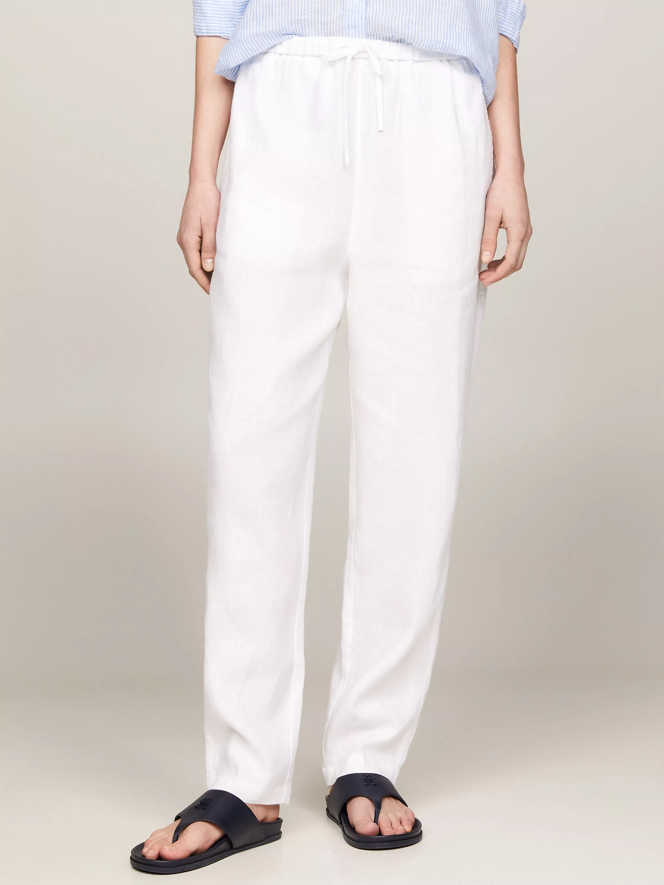 Soft and lightweight in a blended linen fabric, they couple up beautifully with printed tops thanks to their plain design.