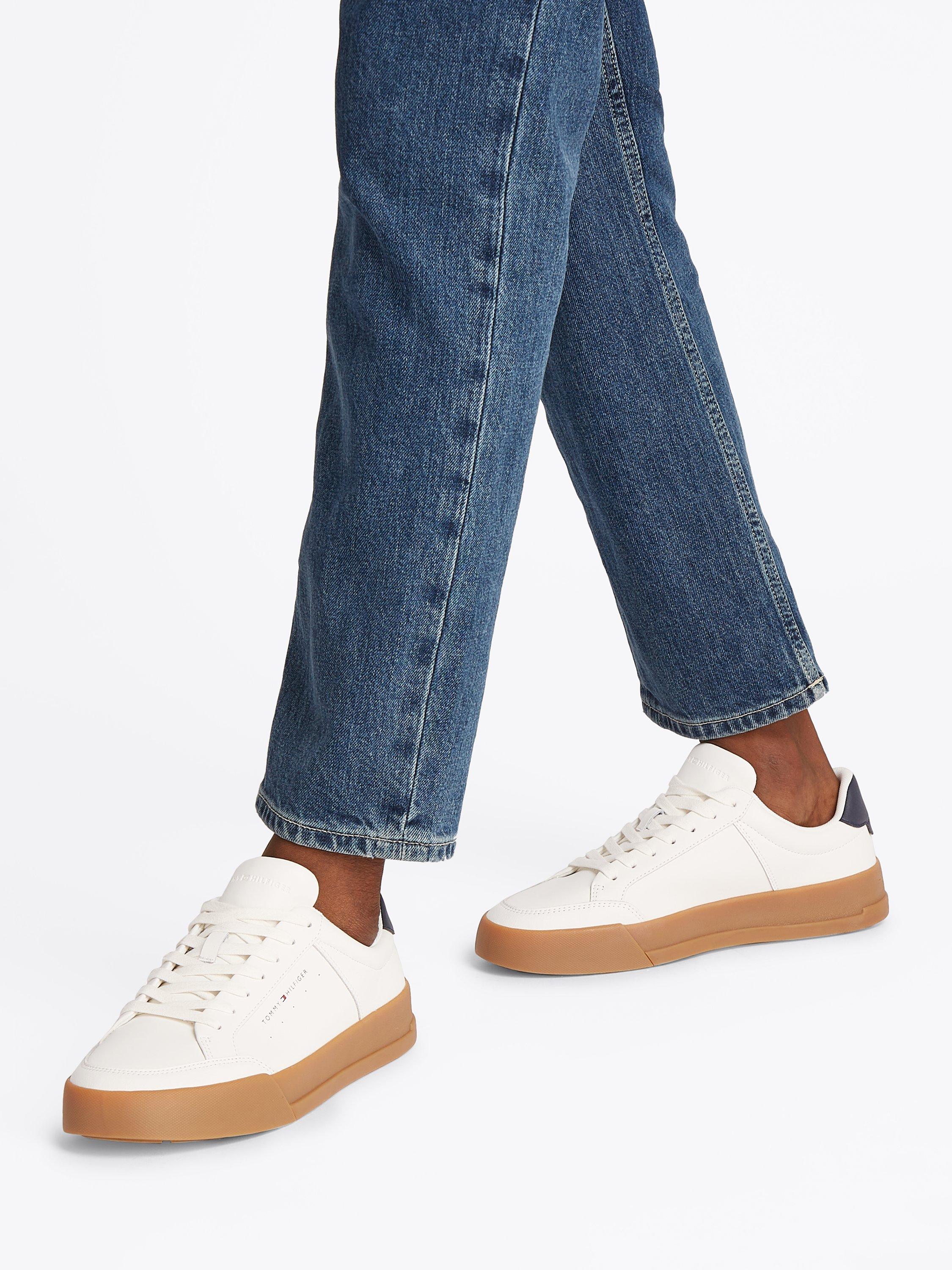 Update your laid-back looks with these low-top trainers from Tommy Hilfiger, crafted from a leather mix with an athletic round toe and contrast panel design.
