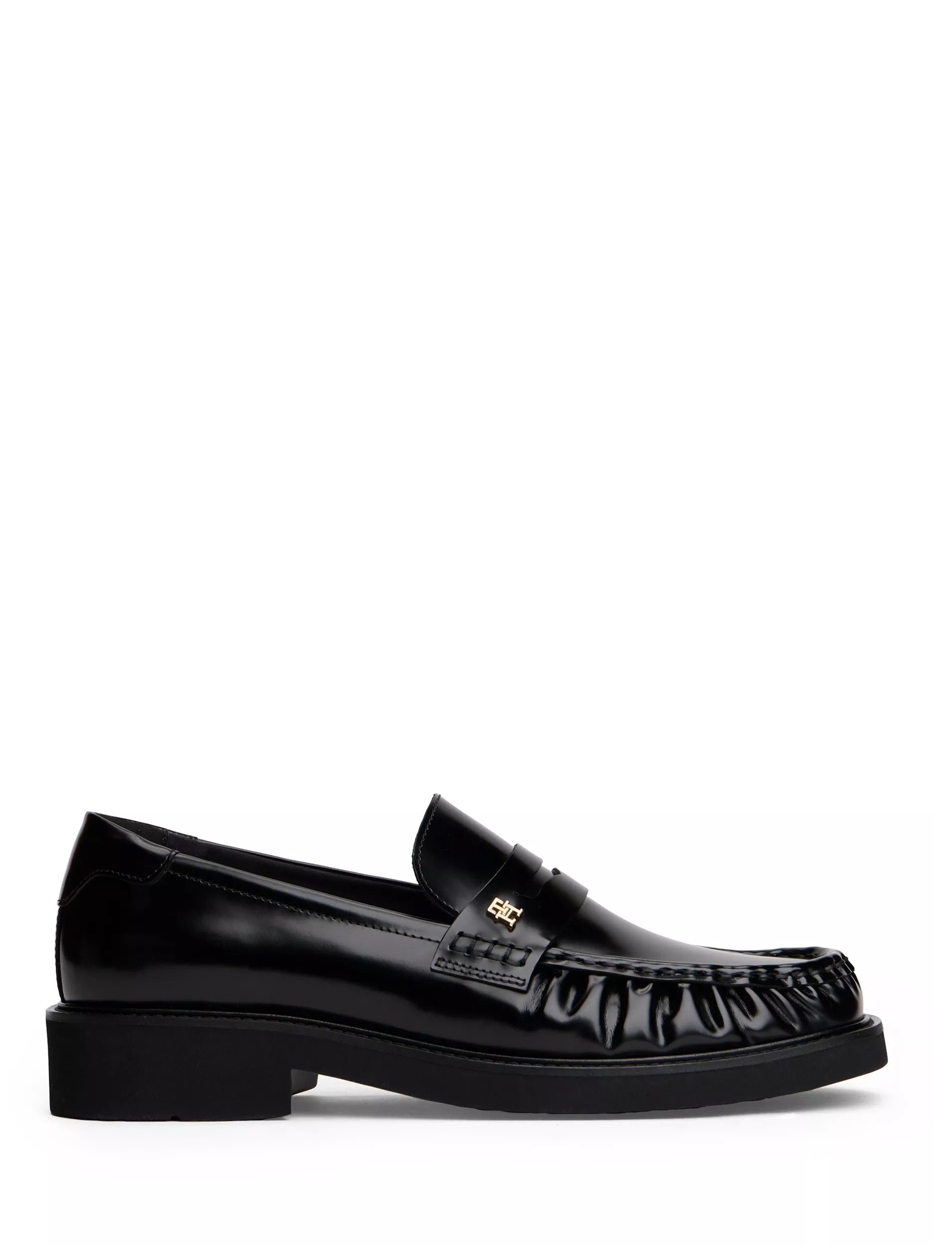 These loafers feature a modern square-toe silhouette, complemented by a luxe shiny finish and a statement TH monogram plaque.