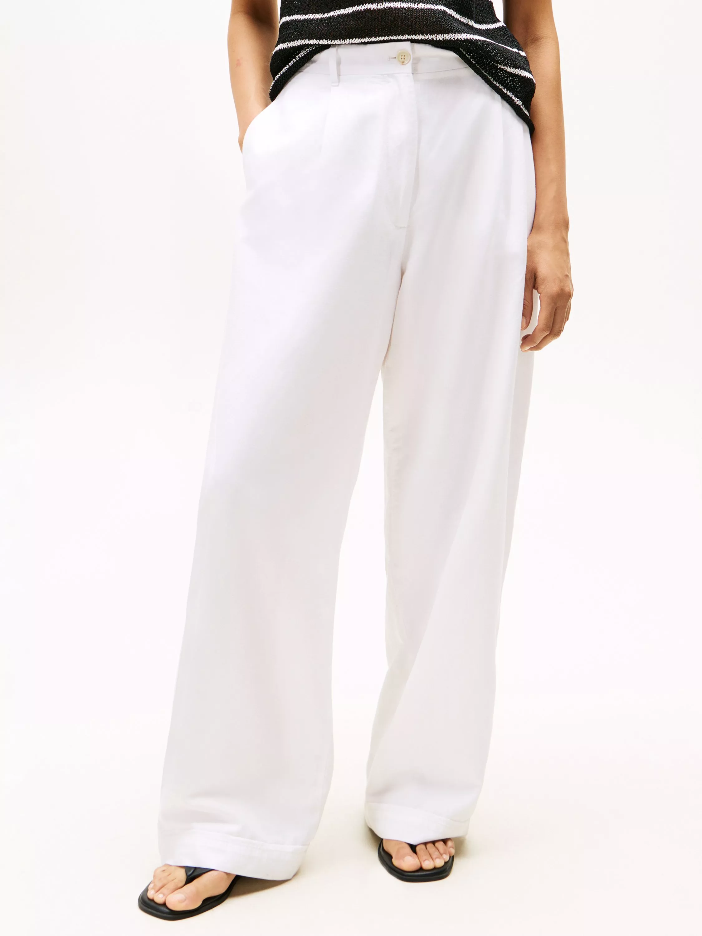 A pair of pleat detailed wide-leg trousers from Tommy Hilfiger made from a soft and lightweight blended linen fabric. They sit mid-rise with a button and zip fly and regular grazing hems.
