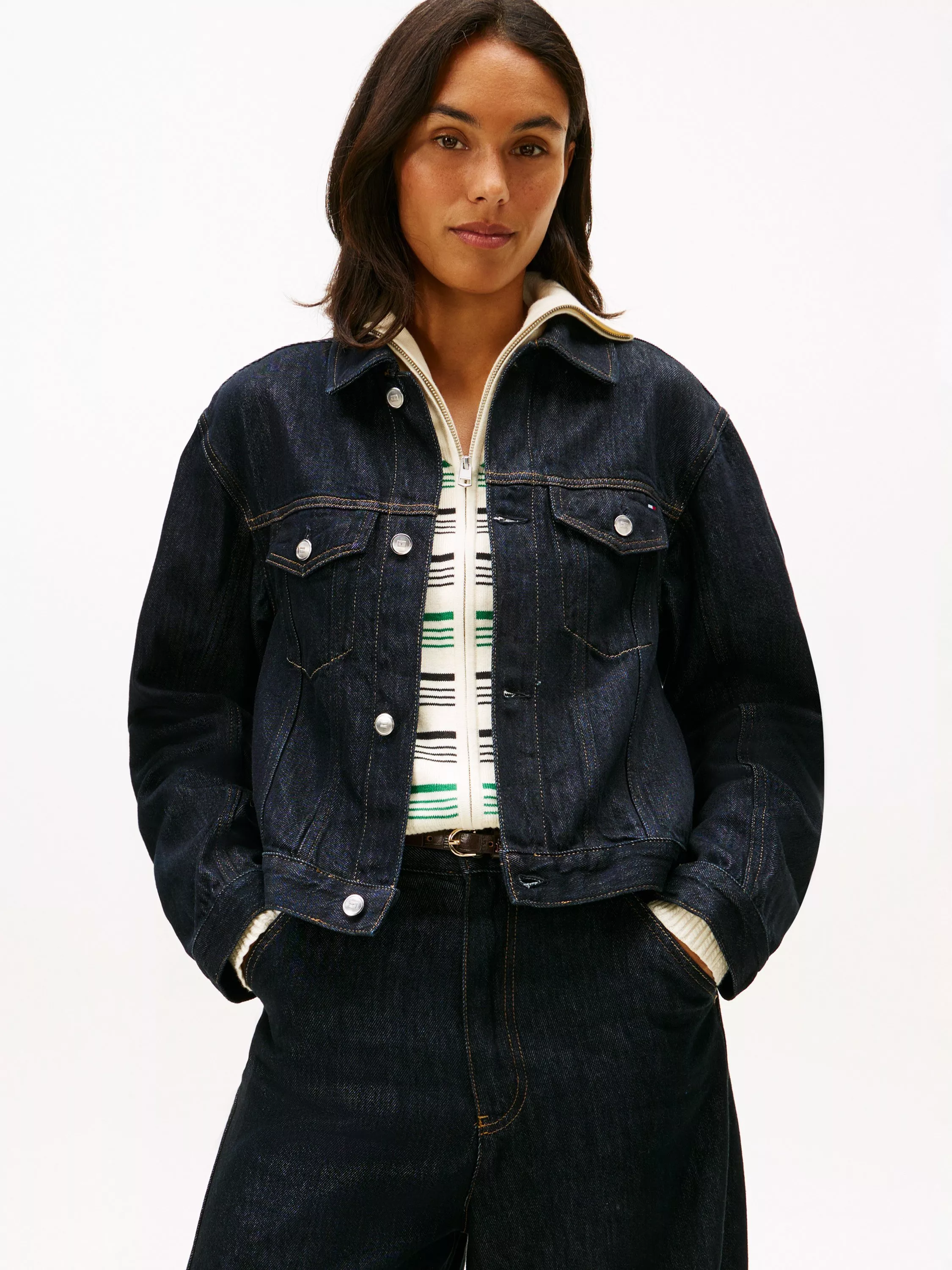 In a timeless style that goes with anything, this denim jacket by Tommy Hilfiger sits at the hip for versatile coverage.