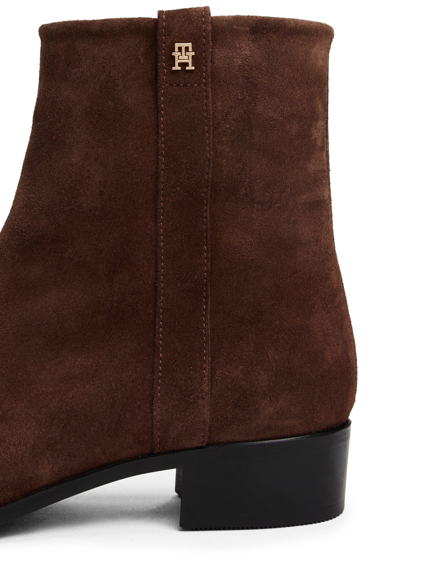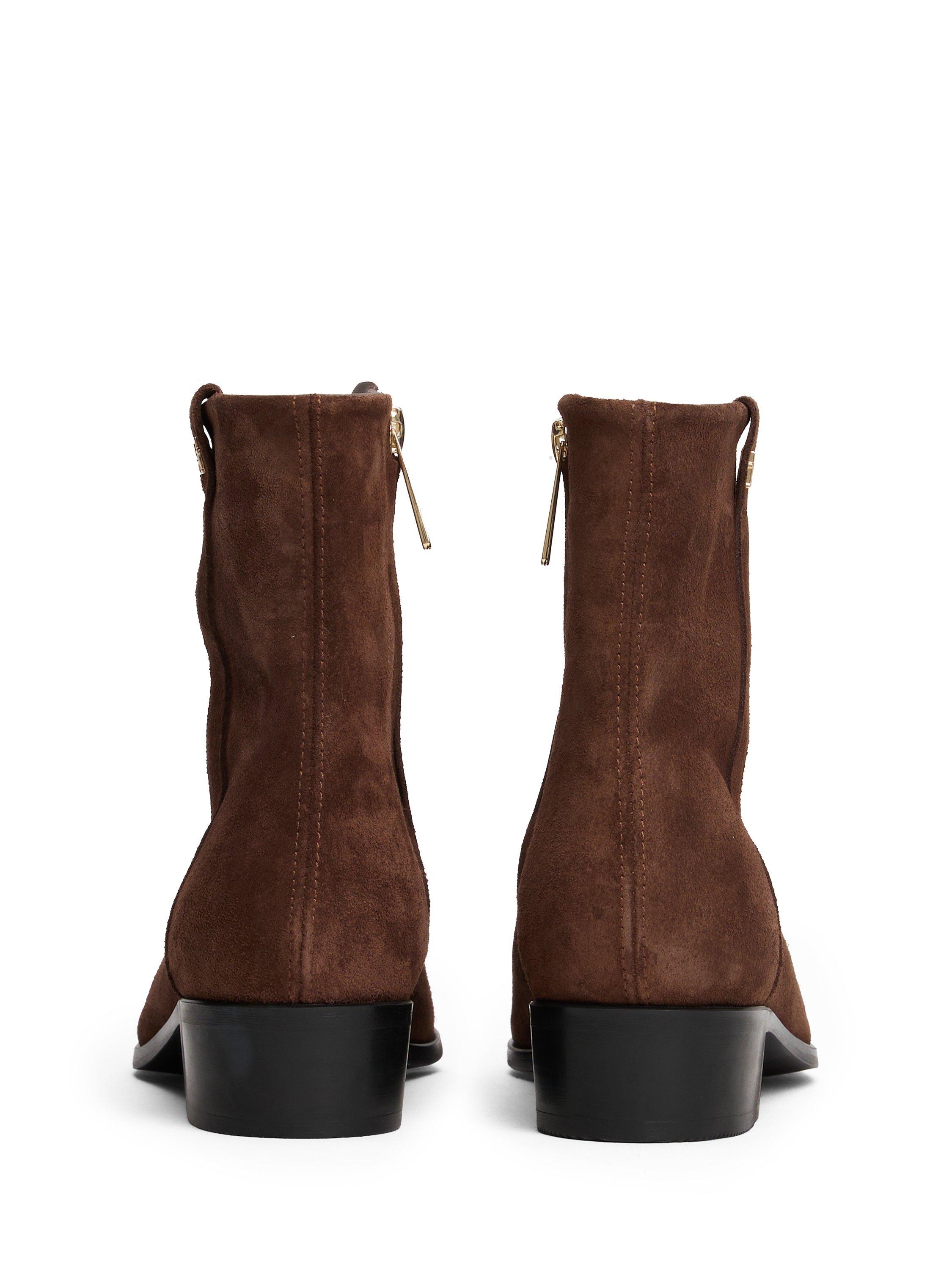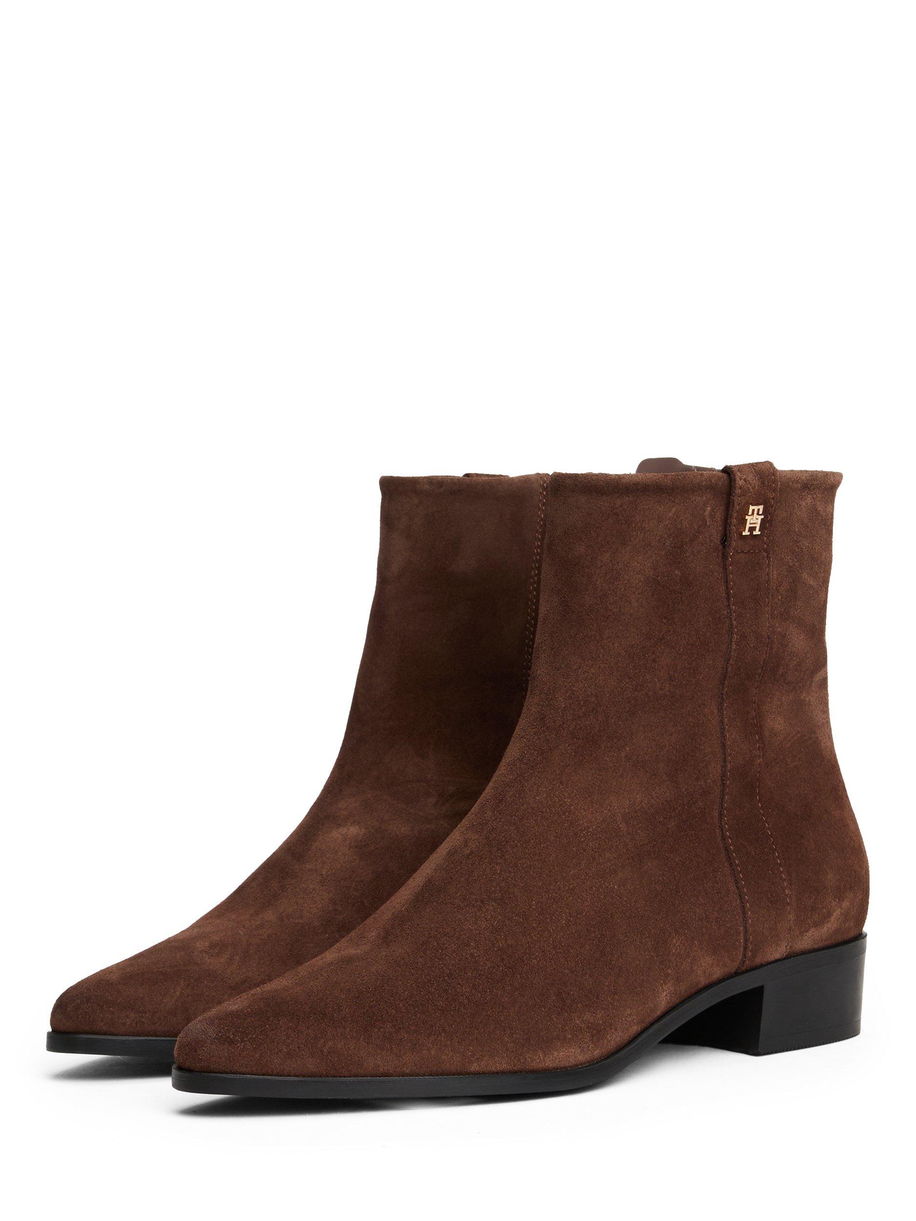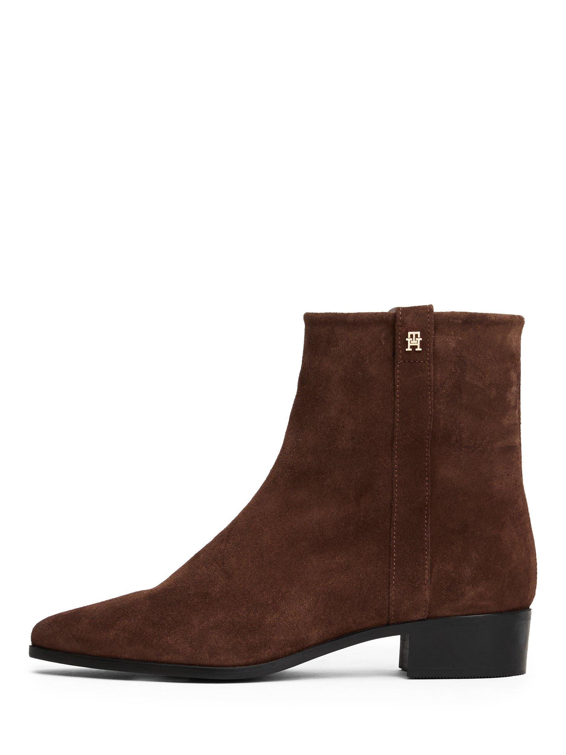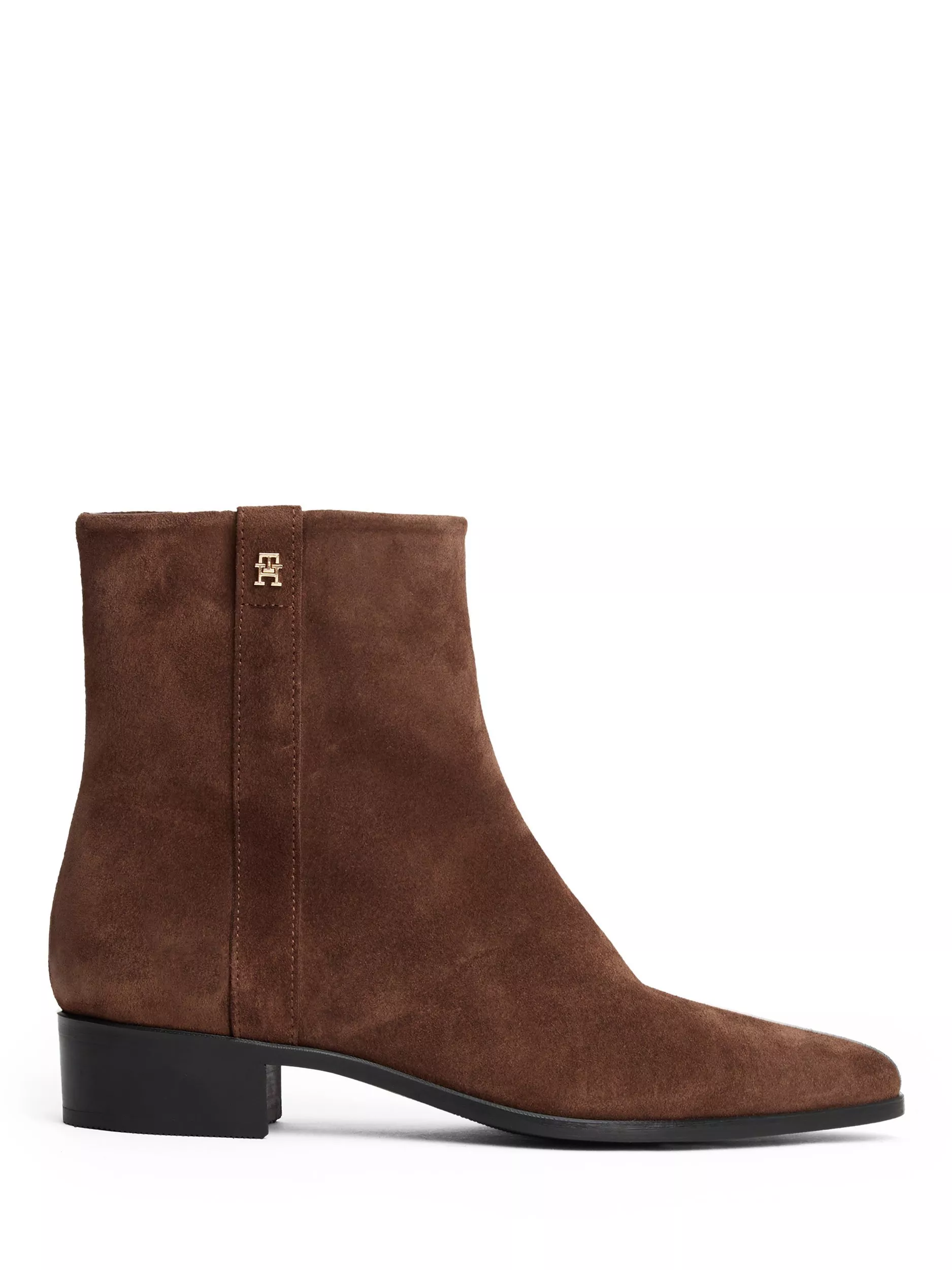 Tommy Hilfiger opts for sumptuous suede to create these pointed ankle boots and incorporates its polished monogram for a signature finish.