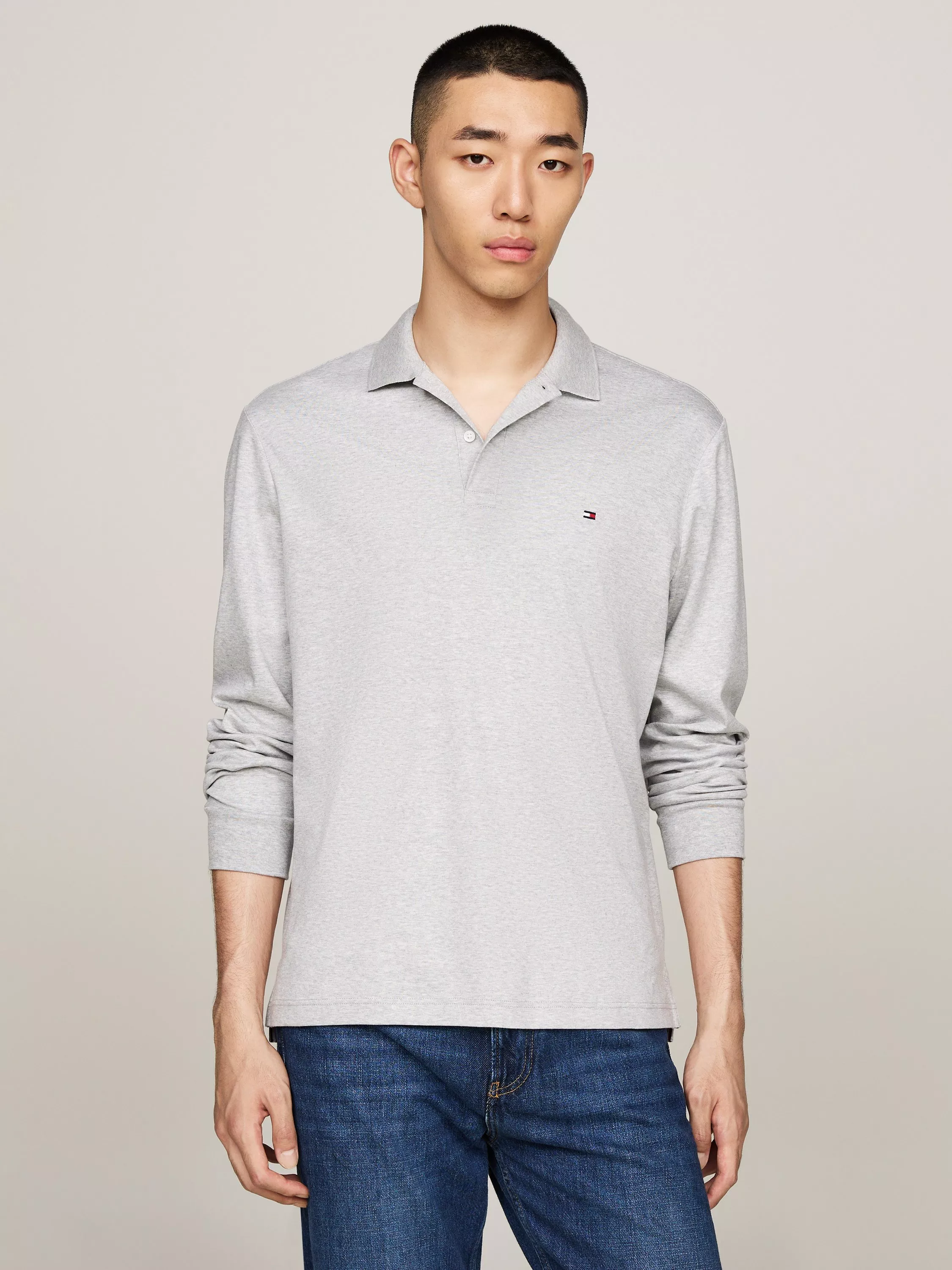 Tommy HilfigerRegular Fit Long Sleeve Polo Shirt, Light Grey
