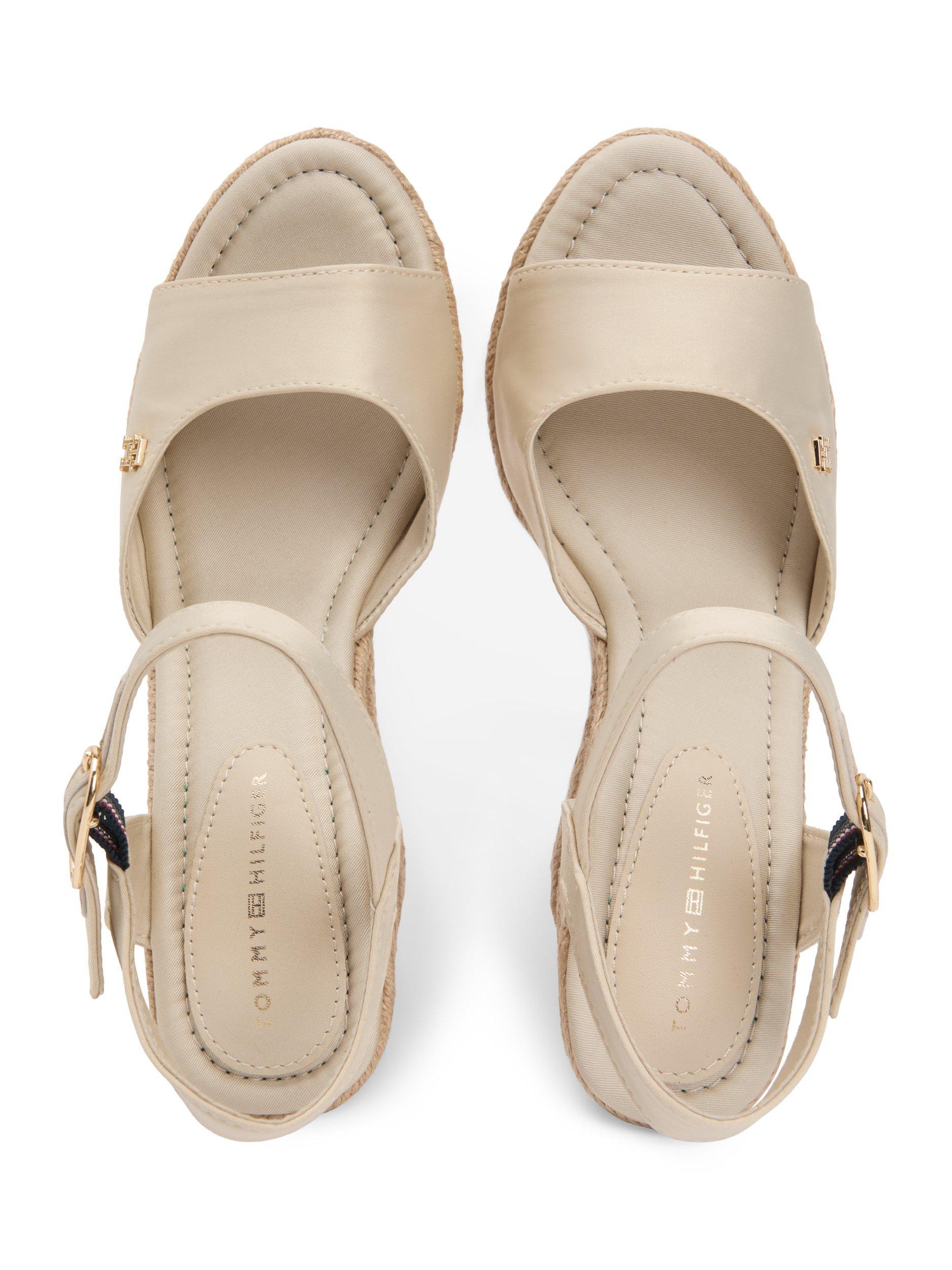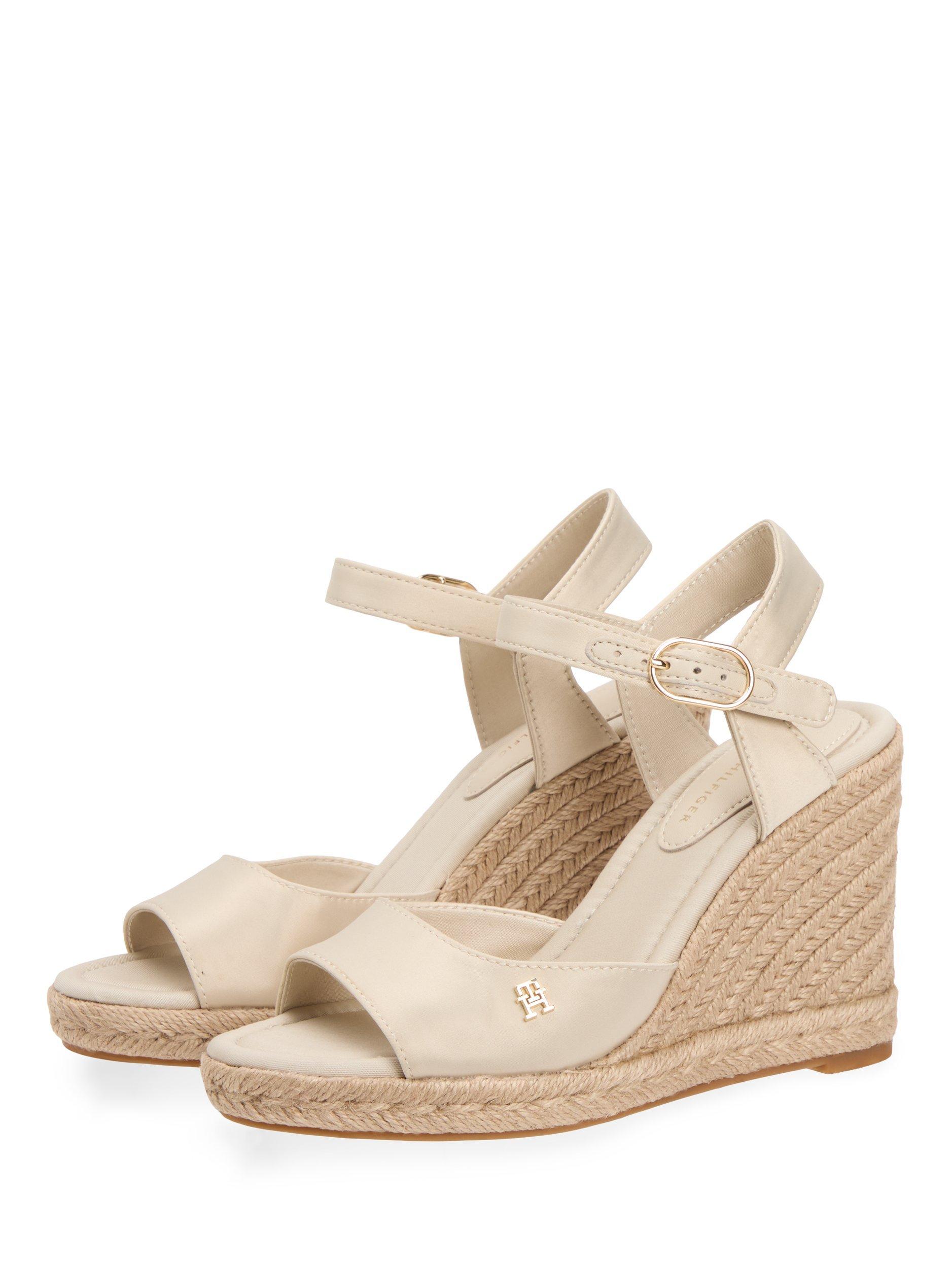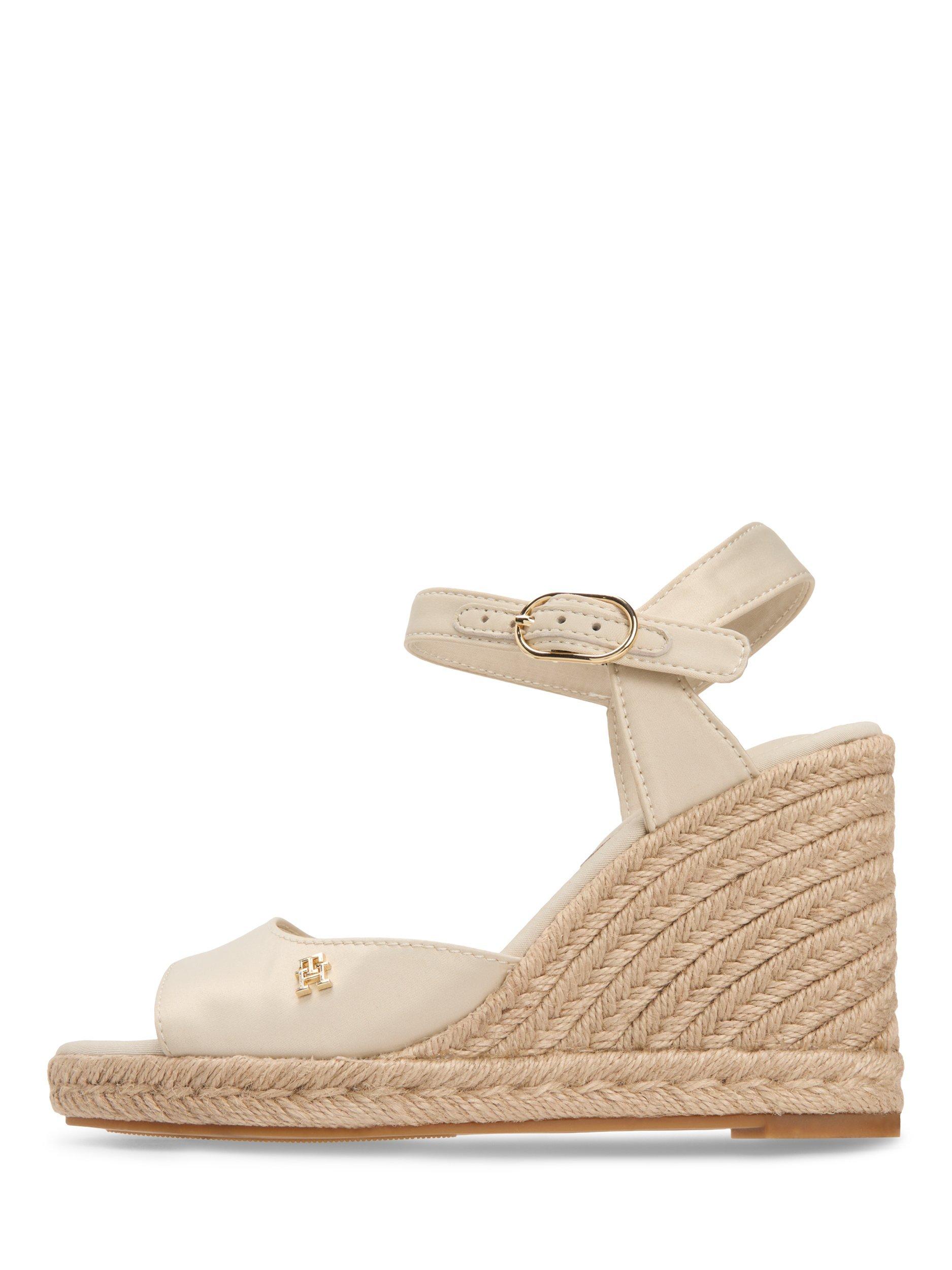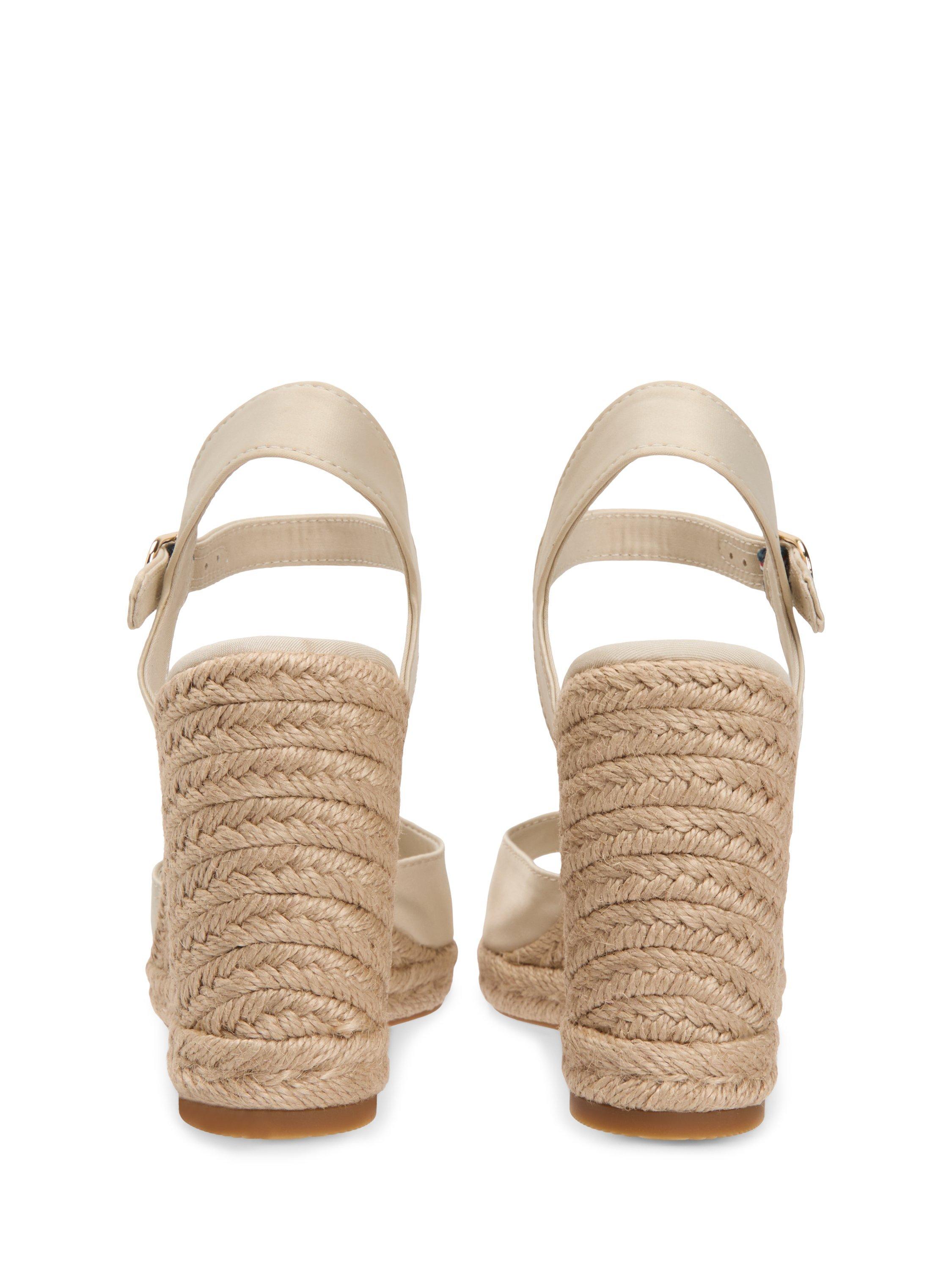 Let these wedge espadrilles transport you through the warmer seasons, combining satin and traditional jute textures with a secure ankle strap.