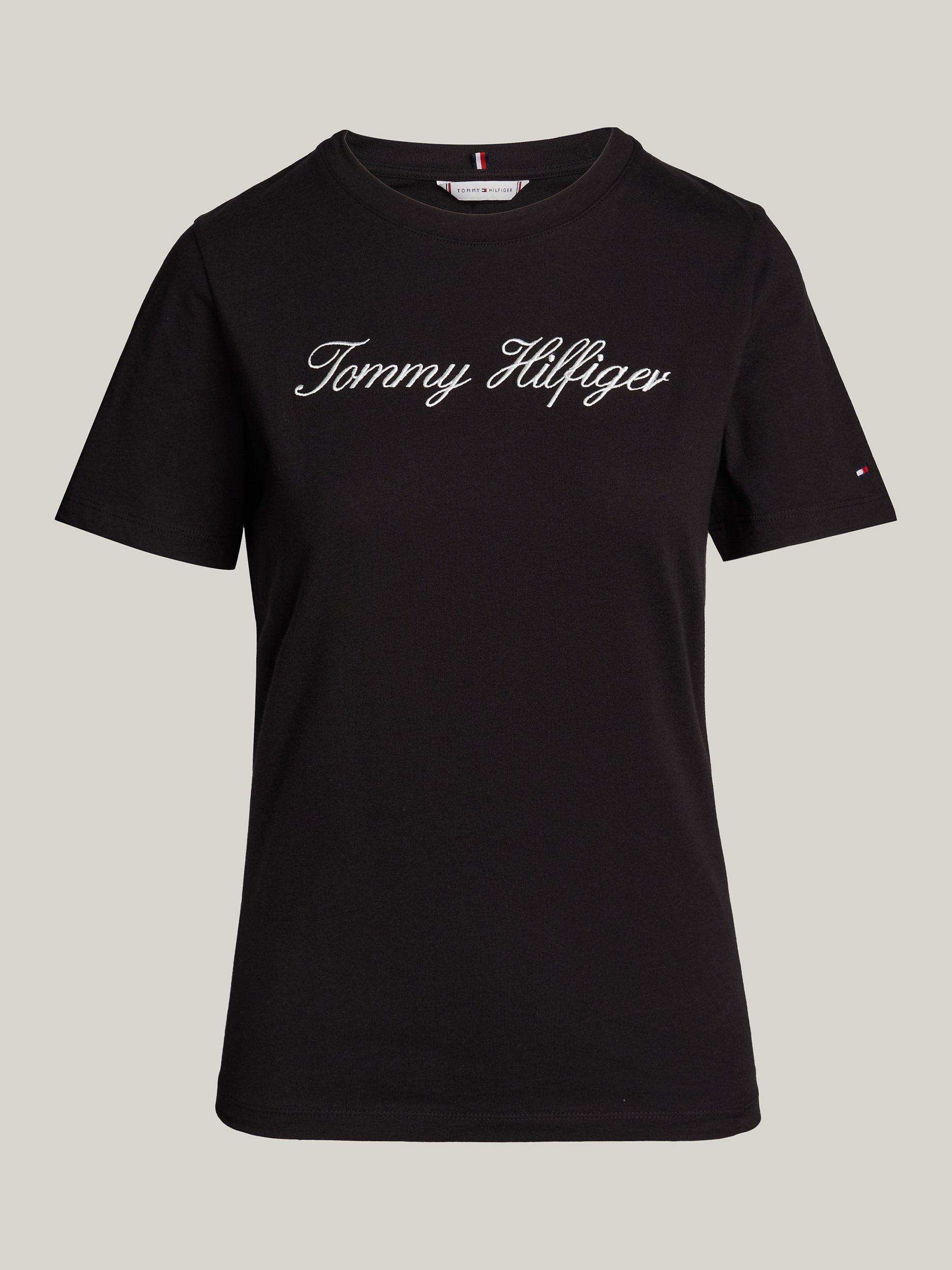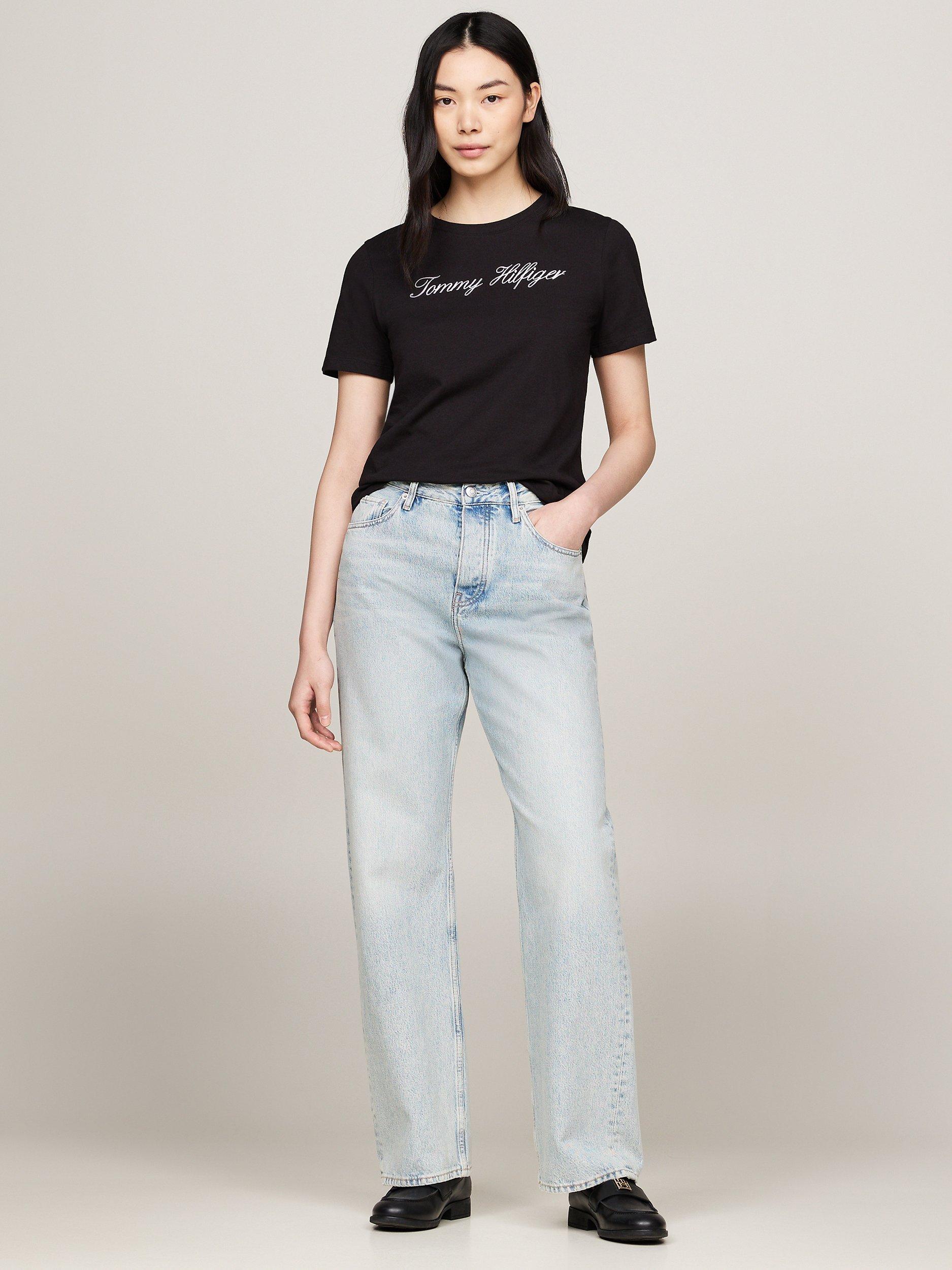 A solo piece or layering staple, this t-shirt by Tommy Hilfiger is printed with an eye-catching logo.
