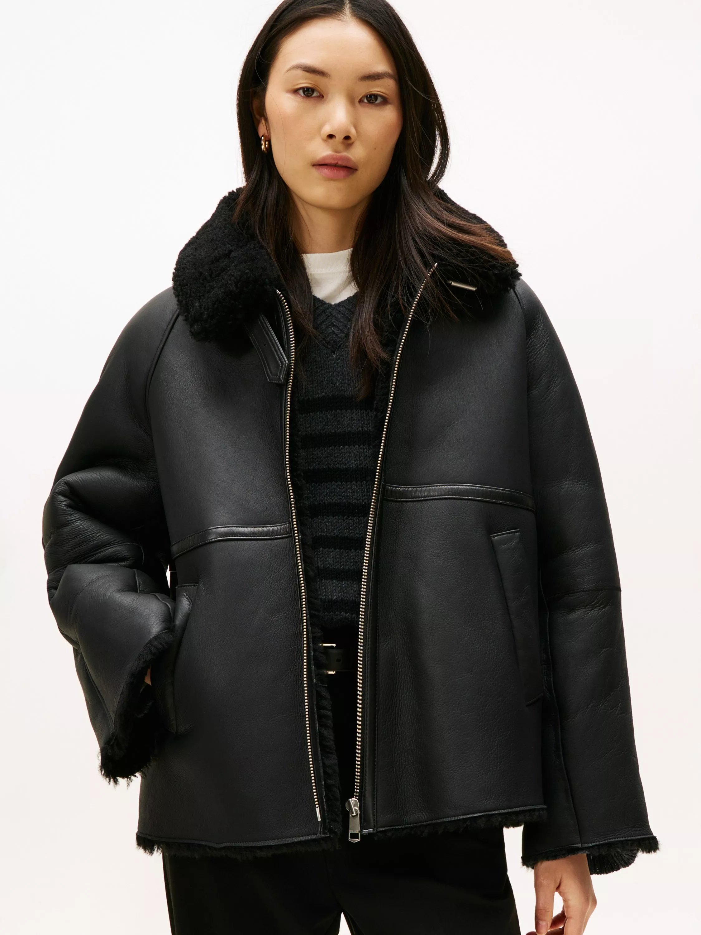 Smooth leather gives this oversized aviator jacket a luxe look, with its fleece lining making it a cosy cool-weather choice.