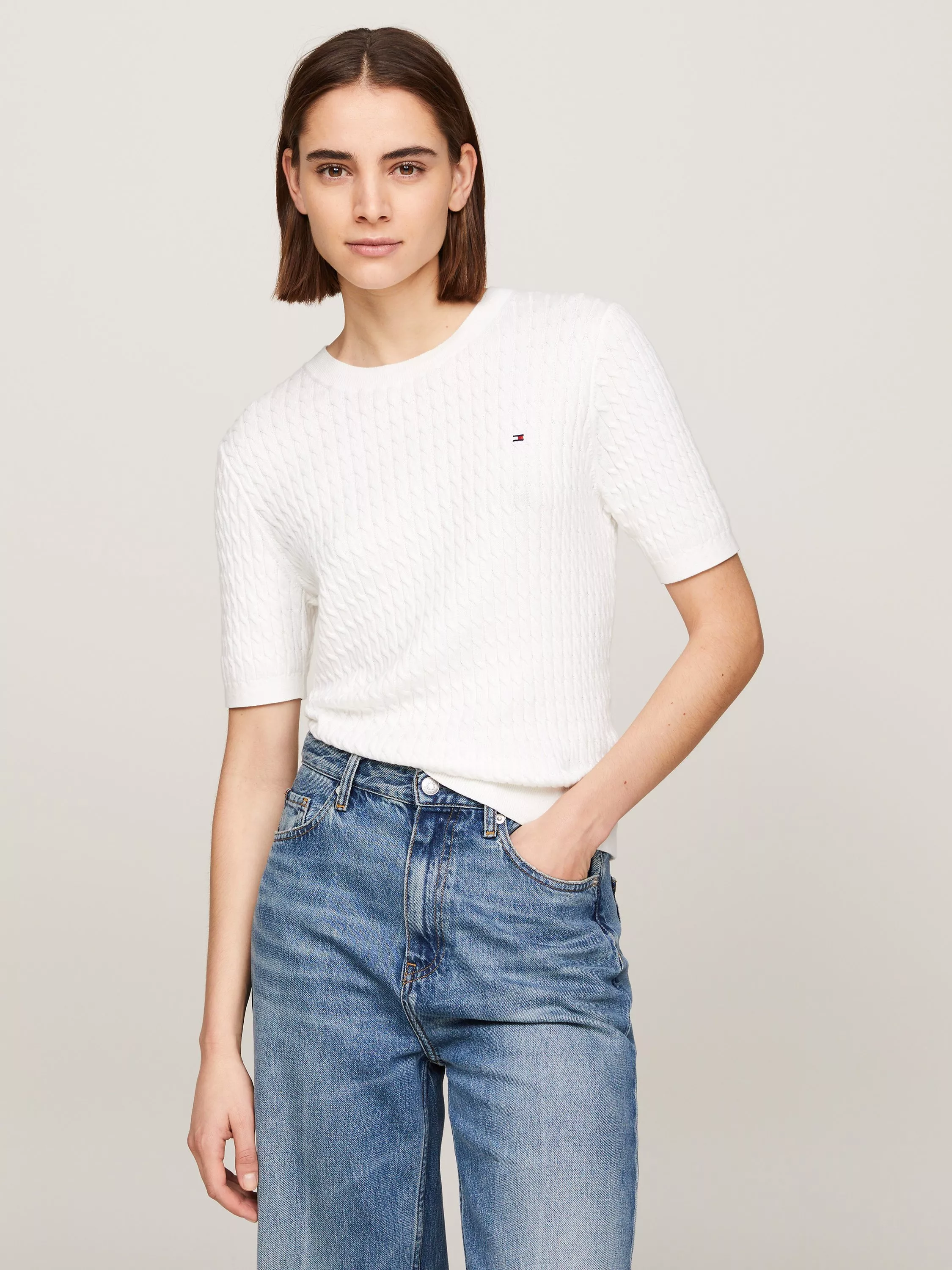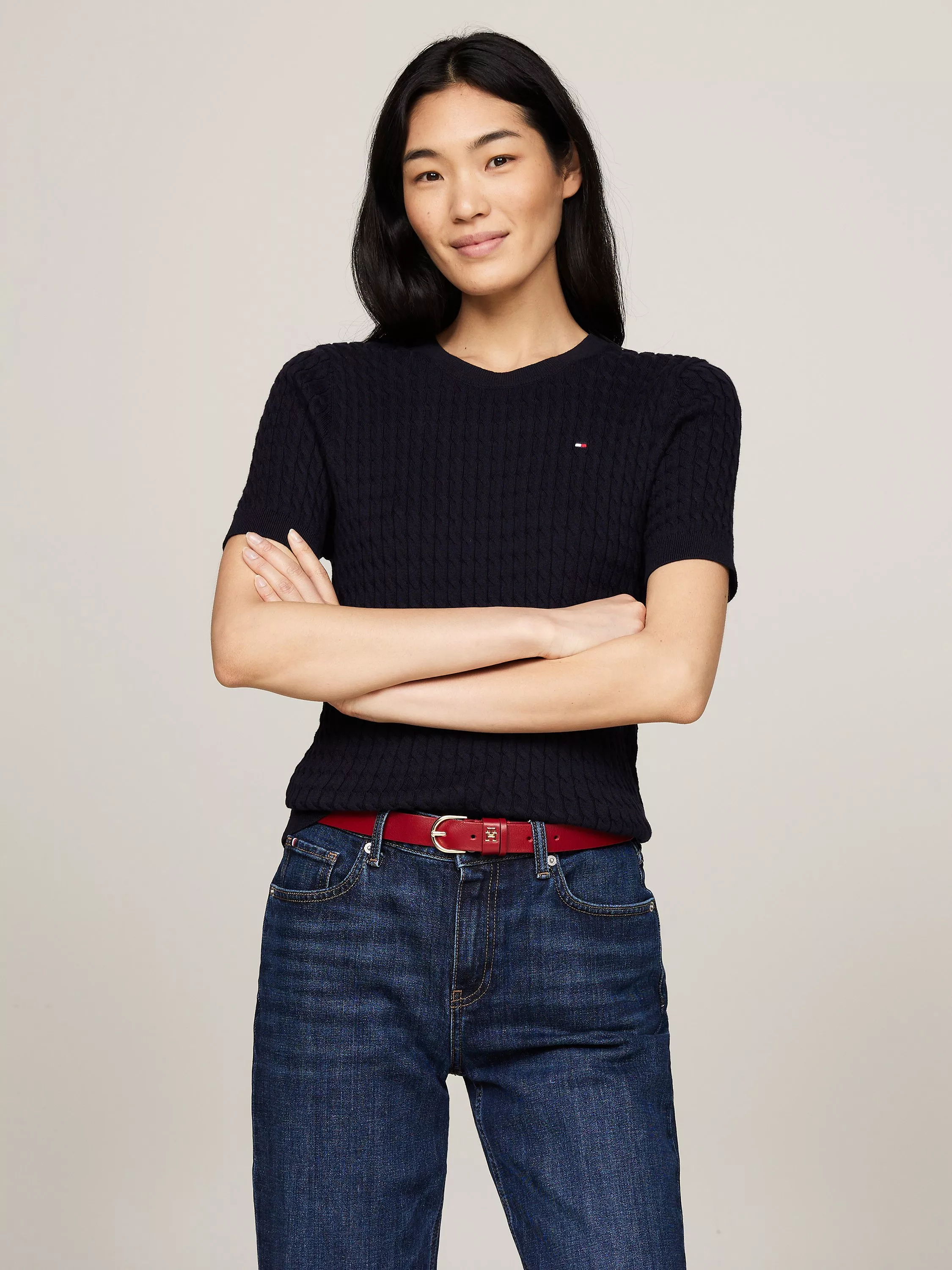 Offering a classic shape with its crew neckline, this jumper from Tommy Hilfiger is detailed with texture for added charm and is made from organic cotton for quality, comfortable wear.
