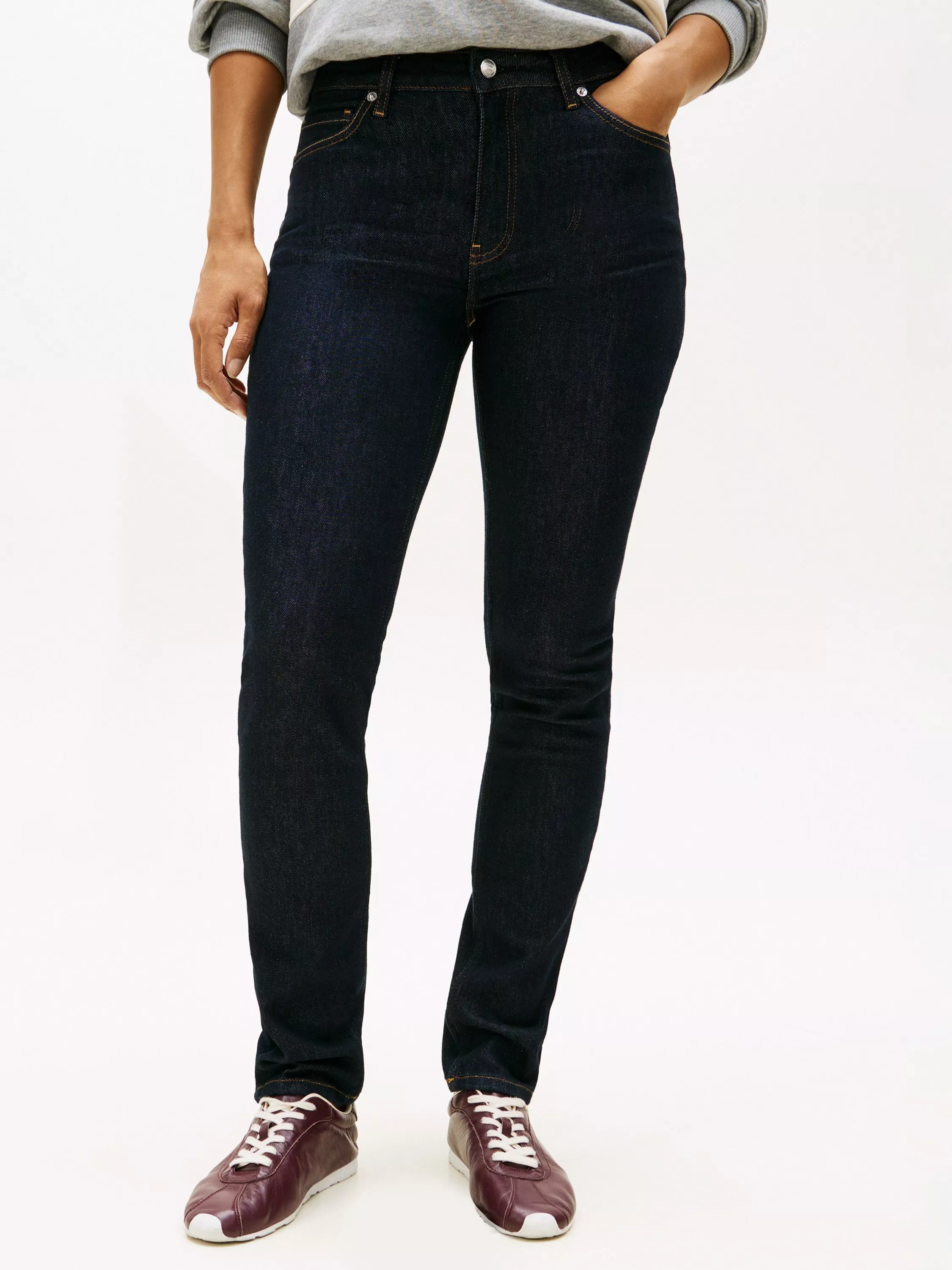 Cult classic for a reason. A pair of slim-cut jeans from Tommy Hilfiger. Sculpted from denim featuring a mid rise and a classic zip and button fly, they fall to a regular length.