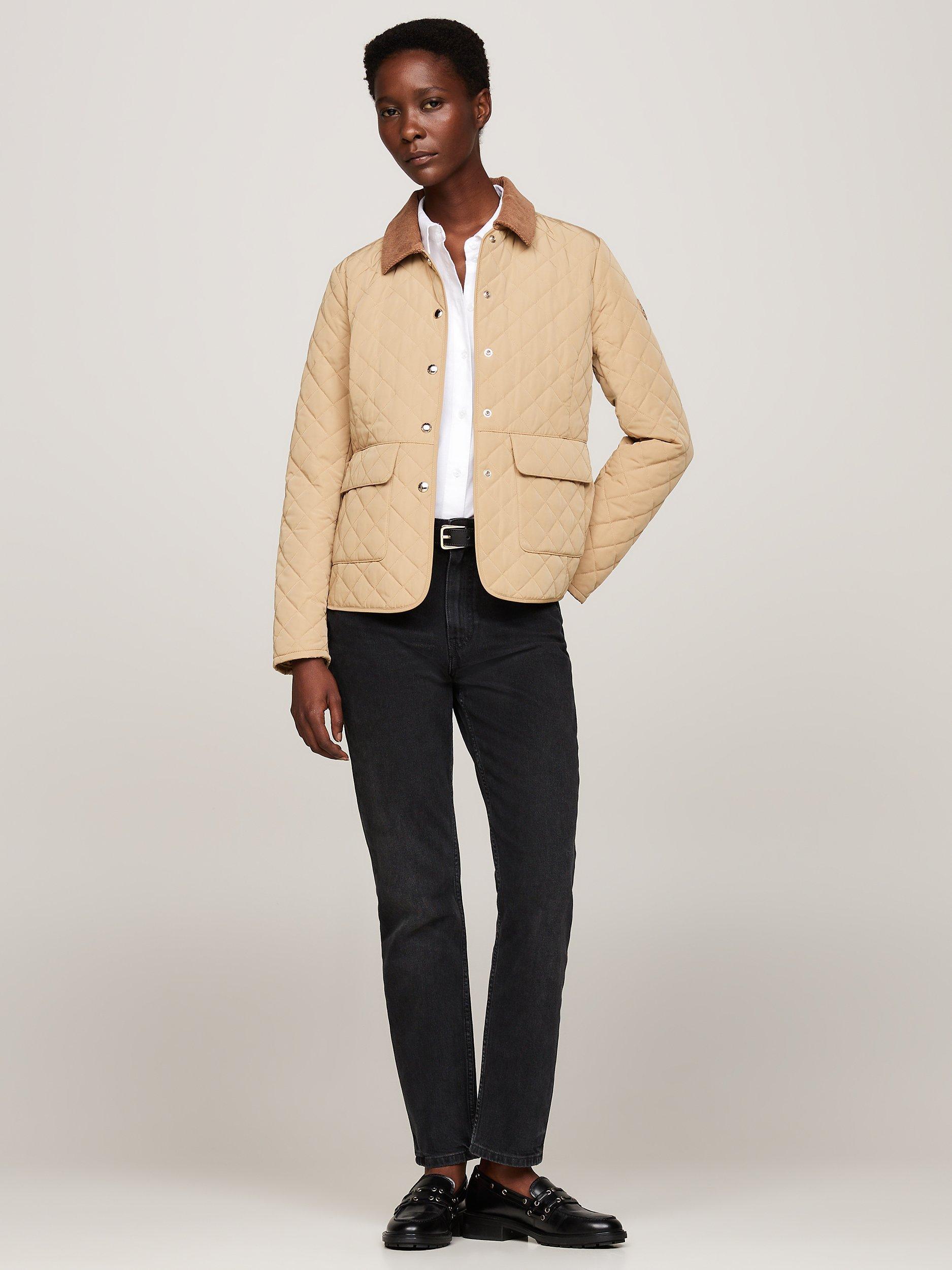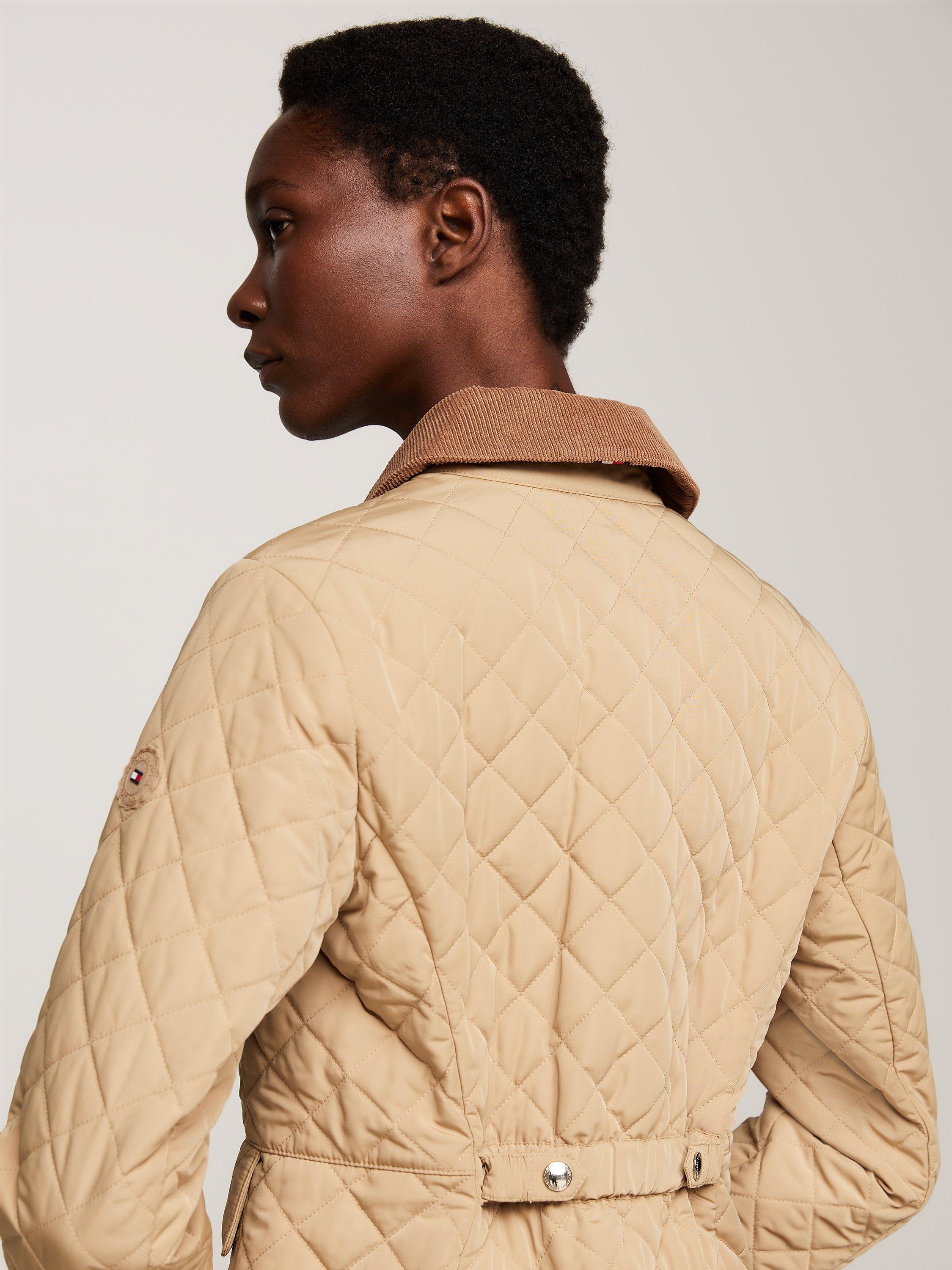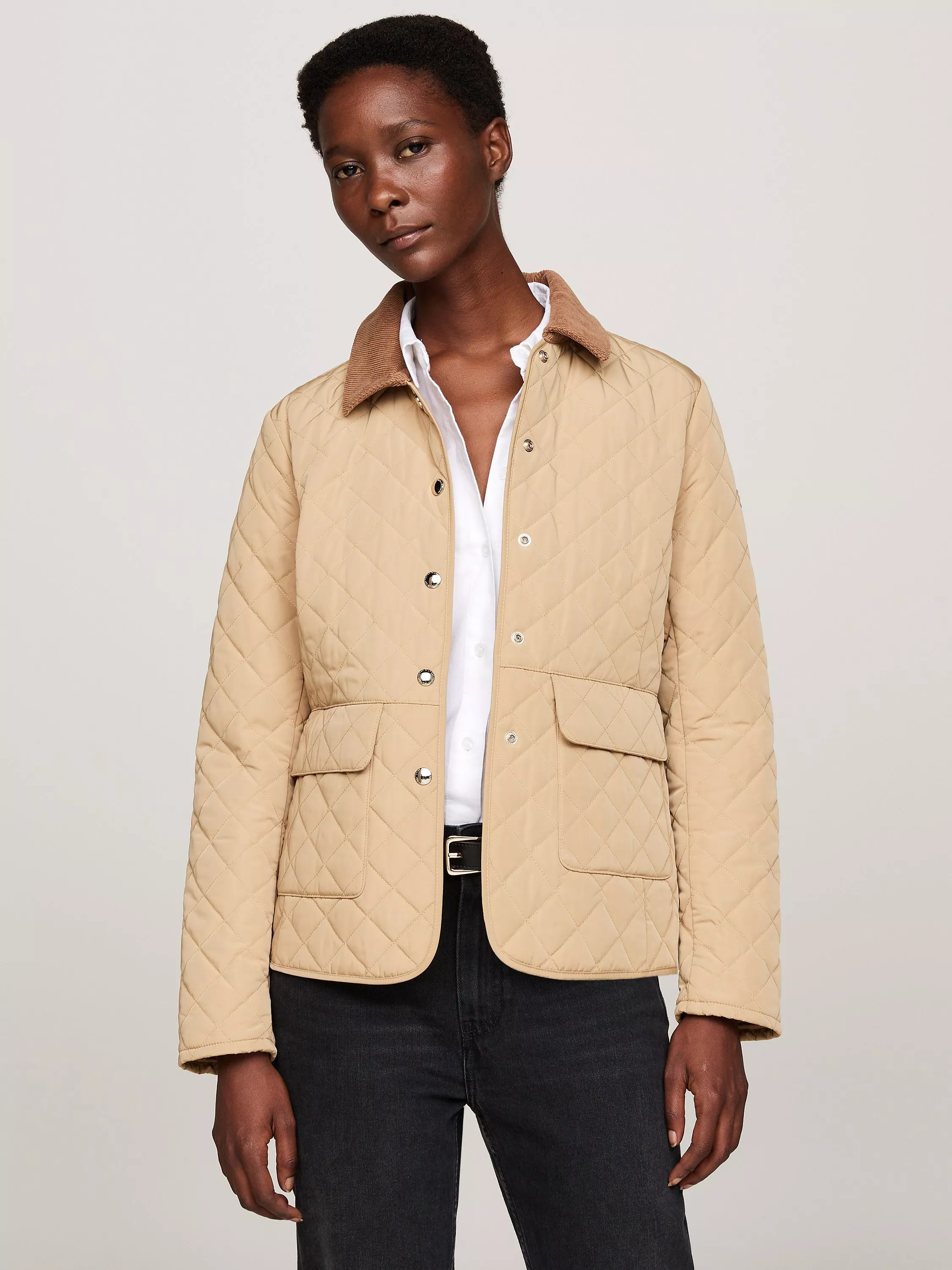Keeping out the chill in cooler weather, this slim quilted jacket from Tommy Hilfiger sits at the hips for practical coverage.