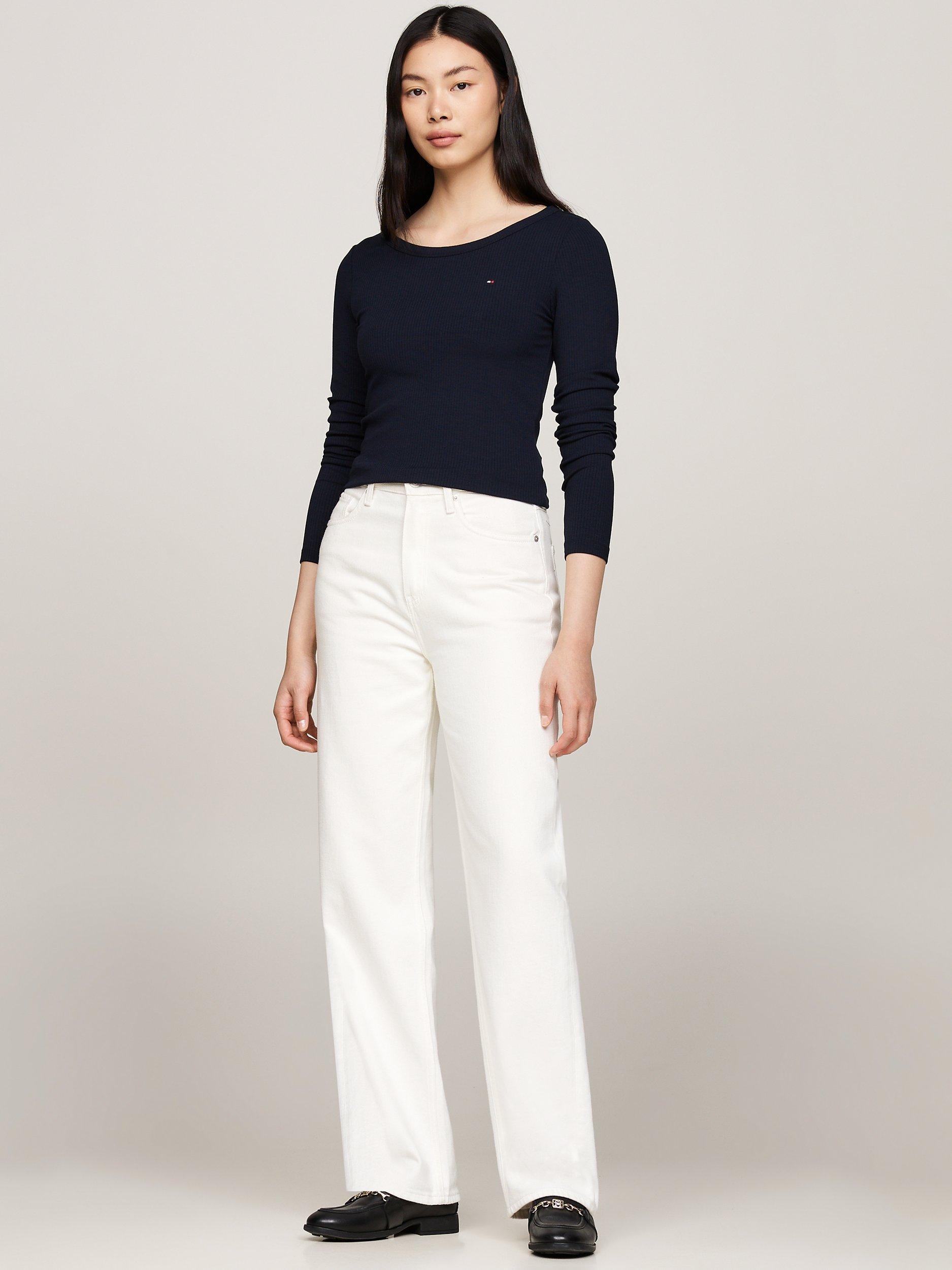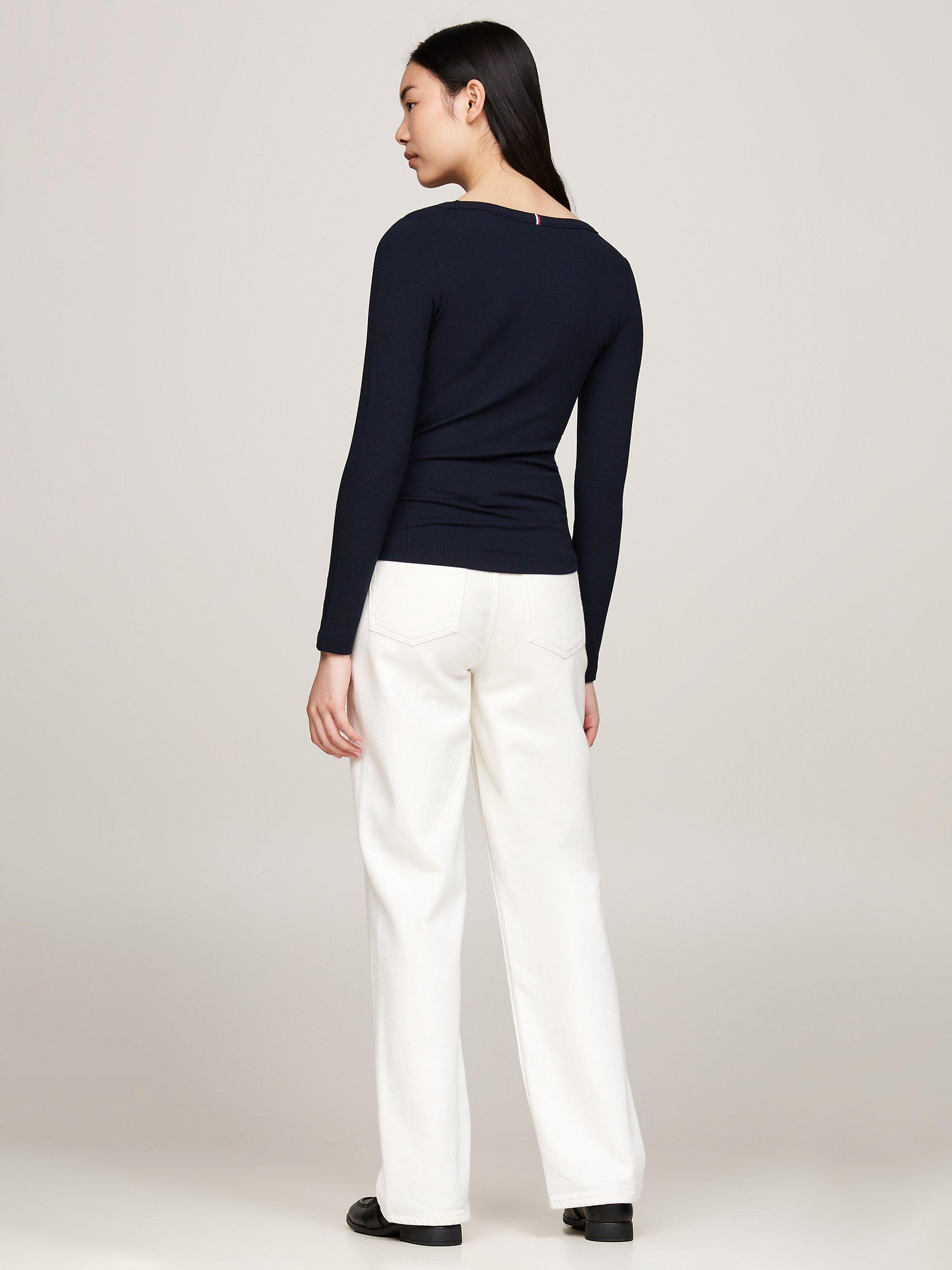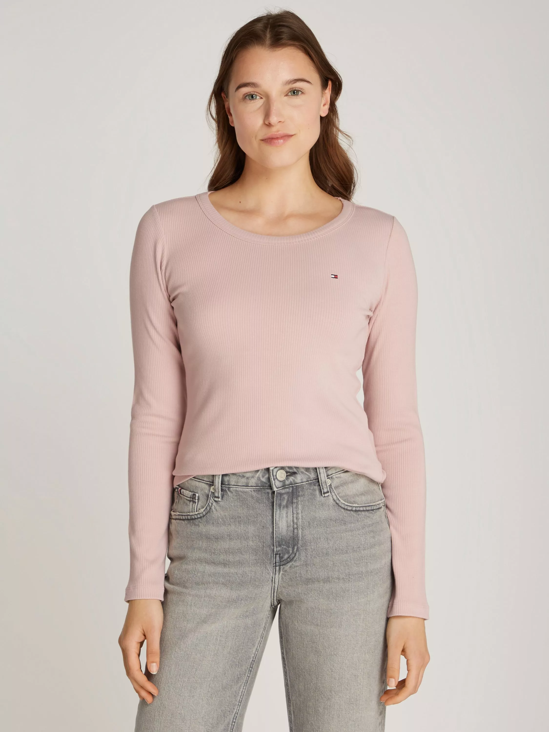 For the casual every day, this slim rib top from Tommy Hilfiger is cut with a softly rounded neckline, long sleeves and is made from a light yet durable blended fabric.